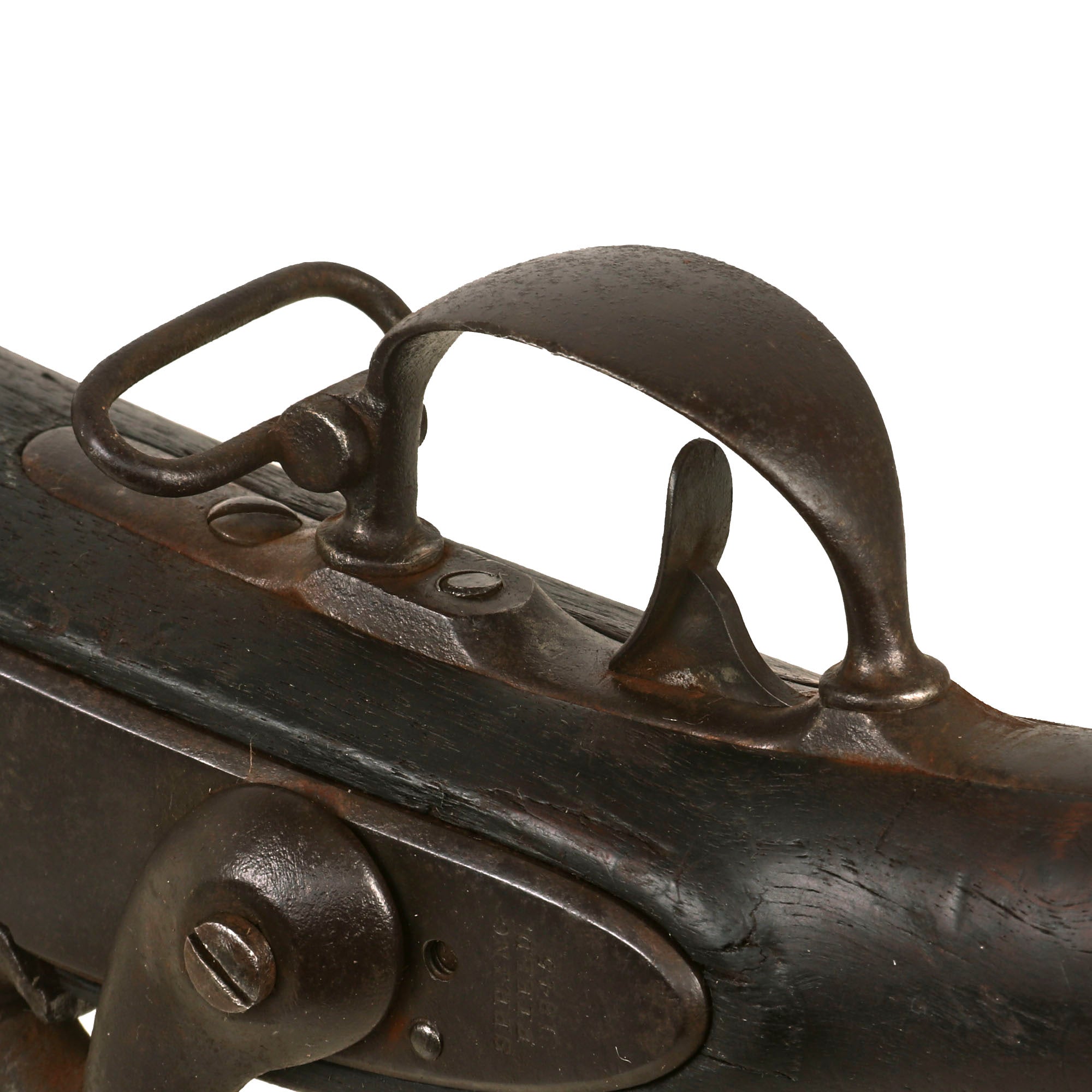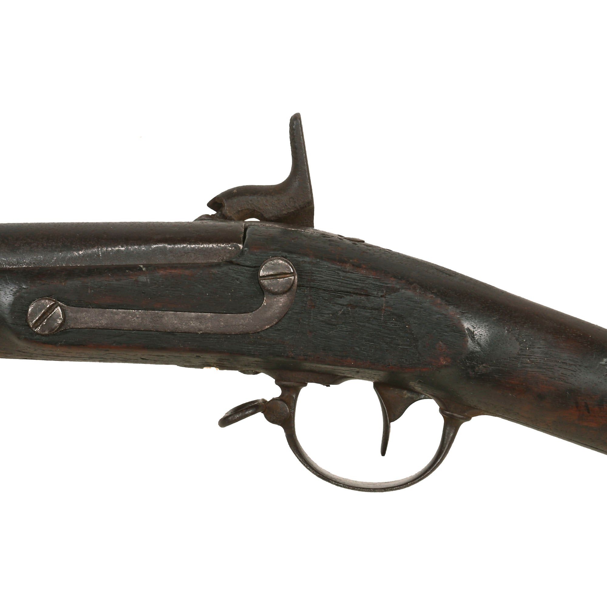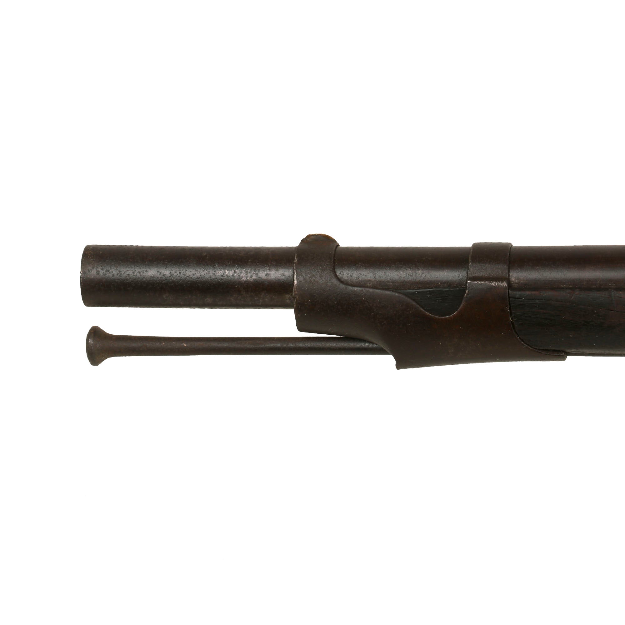 The Models 1840 & 1842 were made with thicker barrel walls, with the intention that they could be rifled later, however this example is still in the original smoothbore configuration. However, it was at some point shortened by about 16 inches, possibly to turn it into an "Artillery Short Musket" type of weapon. In close quarters, these could be much more useful than the full length, which was harder to bring to bear on people at close range. It definitely looks like this musket saw a lot of use in service, though we don't know if this as before or after it was cut down. We have heard that this was more commonly seen on the Confederate side than the Union side, who had much better access to supplies. If a musket suffered damage to the muzzle, it was relatively easy to shorten it and remove the damage.