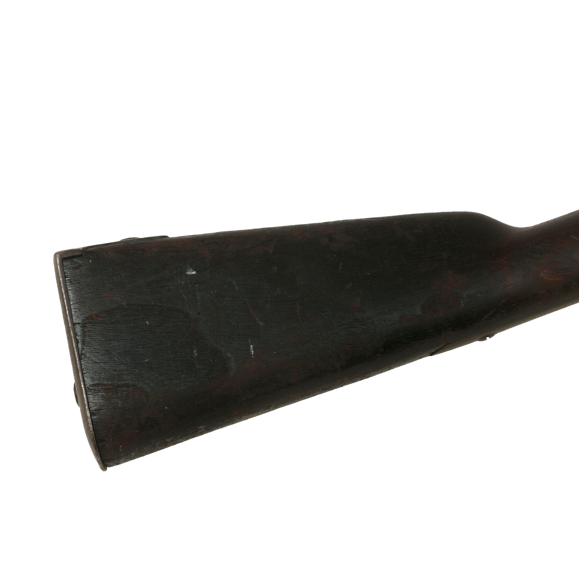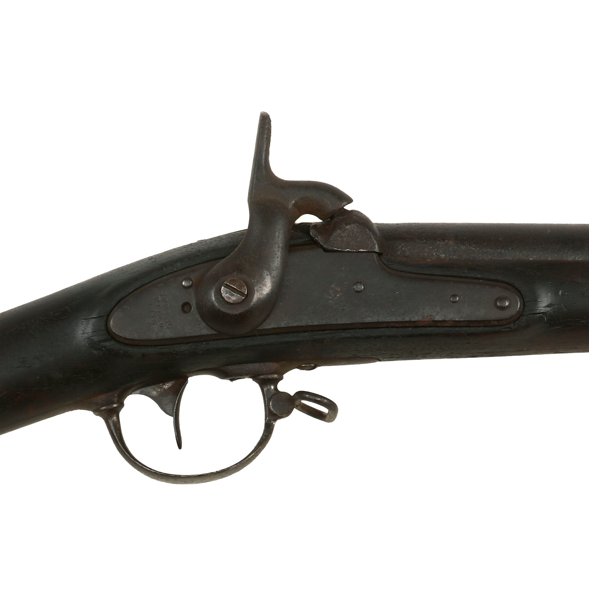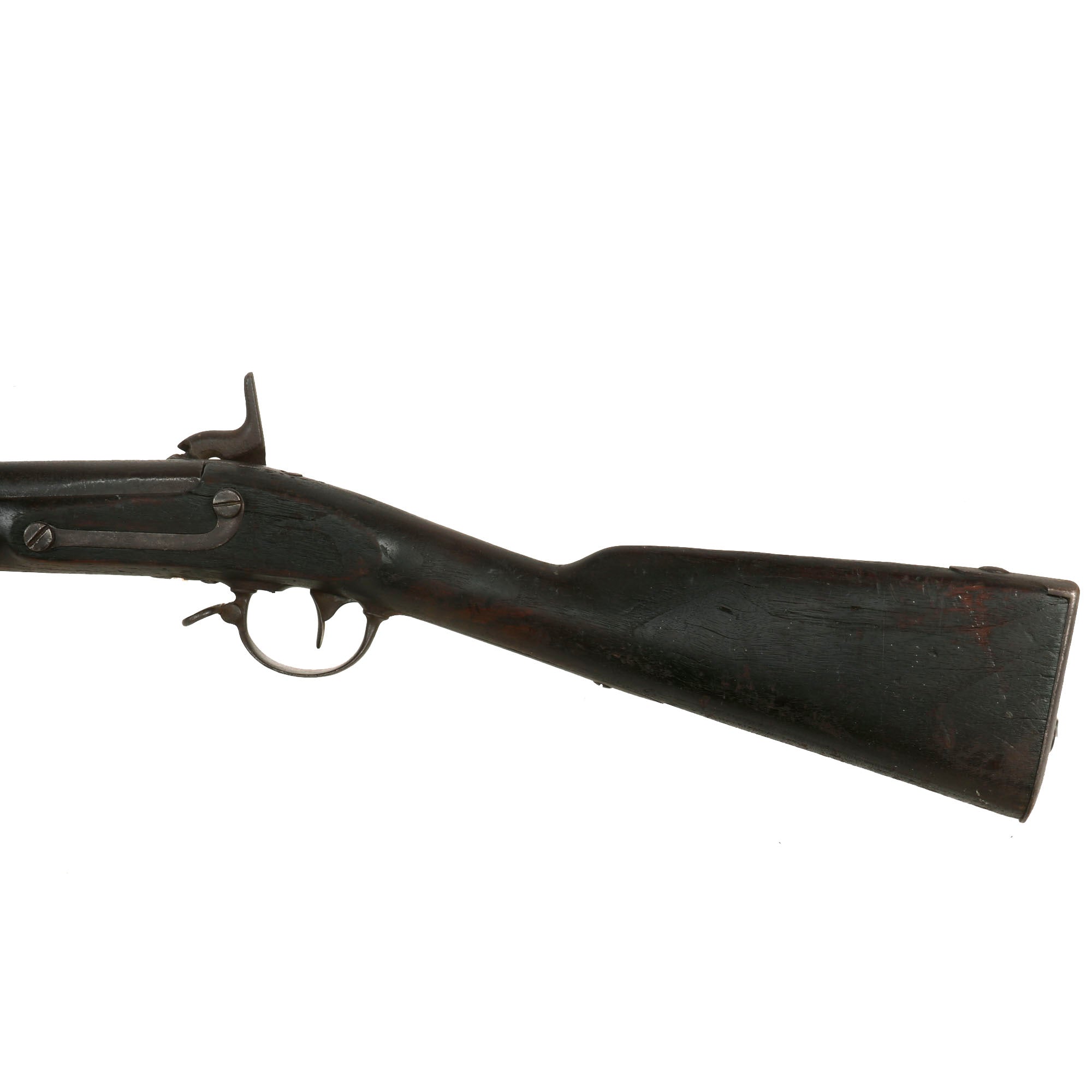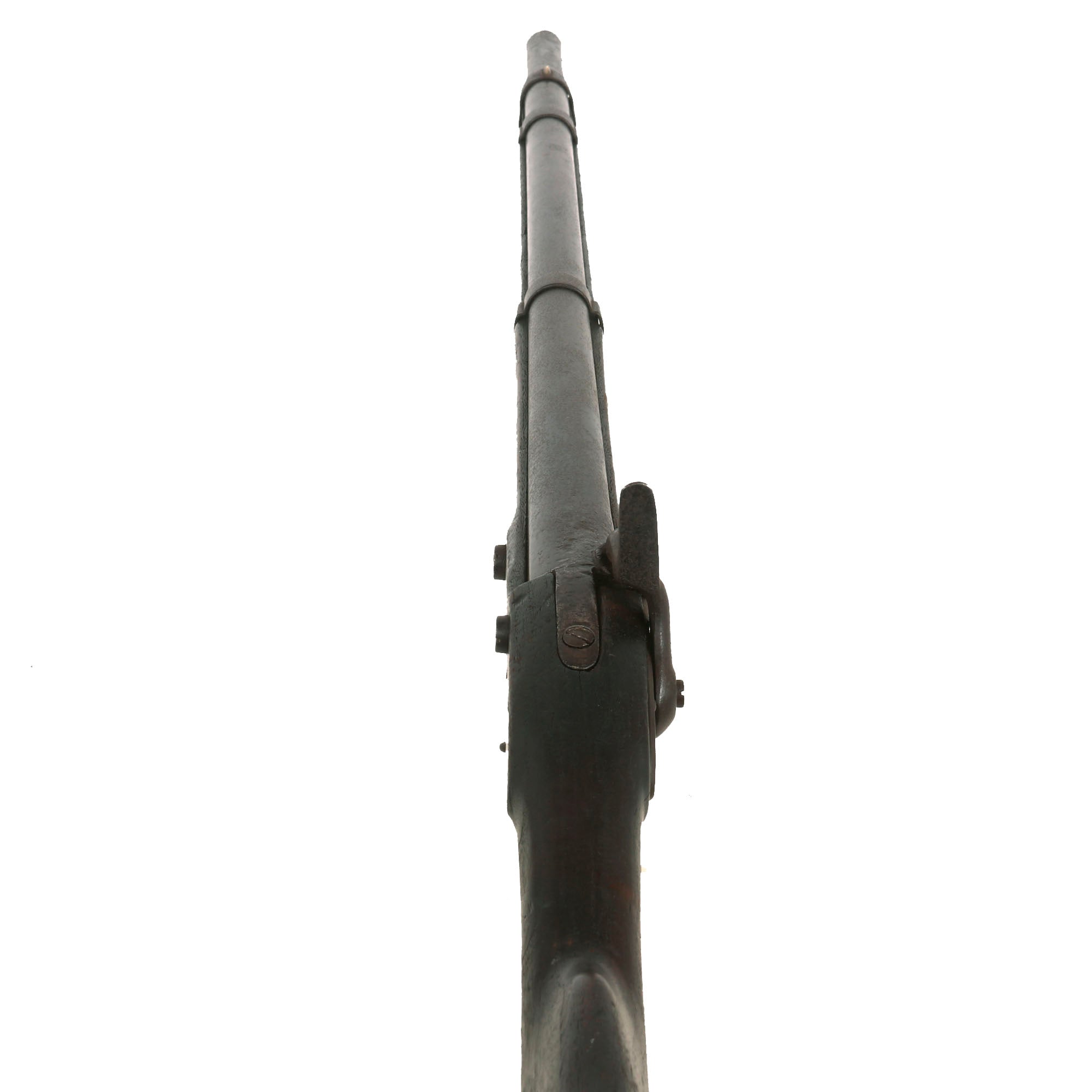 The Models 1840 & 1842 were made with thicker barrel walls, with the intention that they could be rifled later, however this example is still in the original smoothbore configuration. However, it was at some point shortened by about 16 inches, possibly to turn it into an "Artillery Short Musket" type of weapon. In close quarters, these could be much more useful than the full length, which was harder to bring to bear on people at close range. It definitely looks like this musket saw a lot of use in service, though we don't know if this as before or after it was cut down. We have heard that this was more commonly seen on the Confederate side than the Union side, who had much better access to supplies. If a musket suffered damage to the muzzle, it was relatively easy to shorten it and remove the damage.