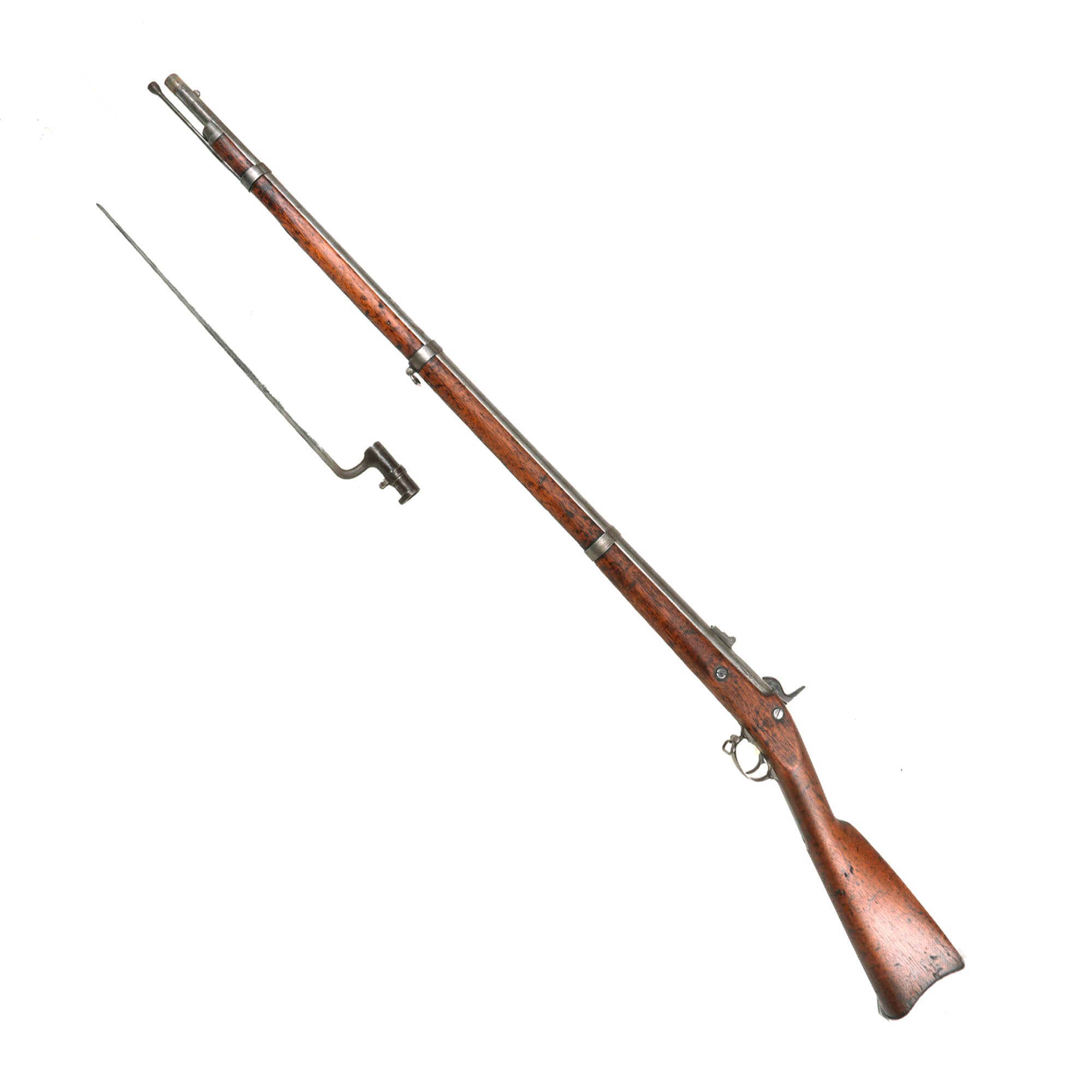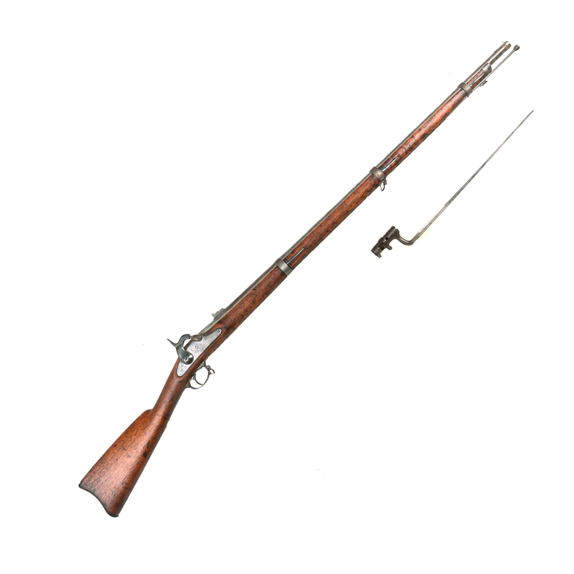 This is a great chance to pick up an lovely honestly used example of a Civil War Contract Rifled musket, complete with its original bayonet. Ready to research and display!