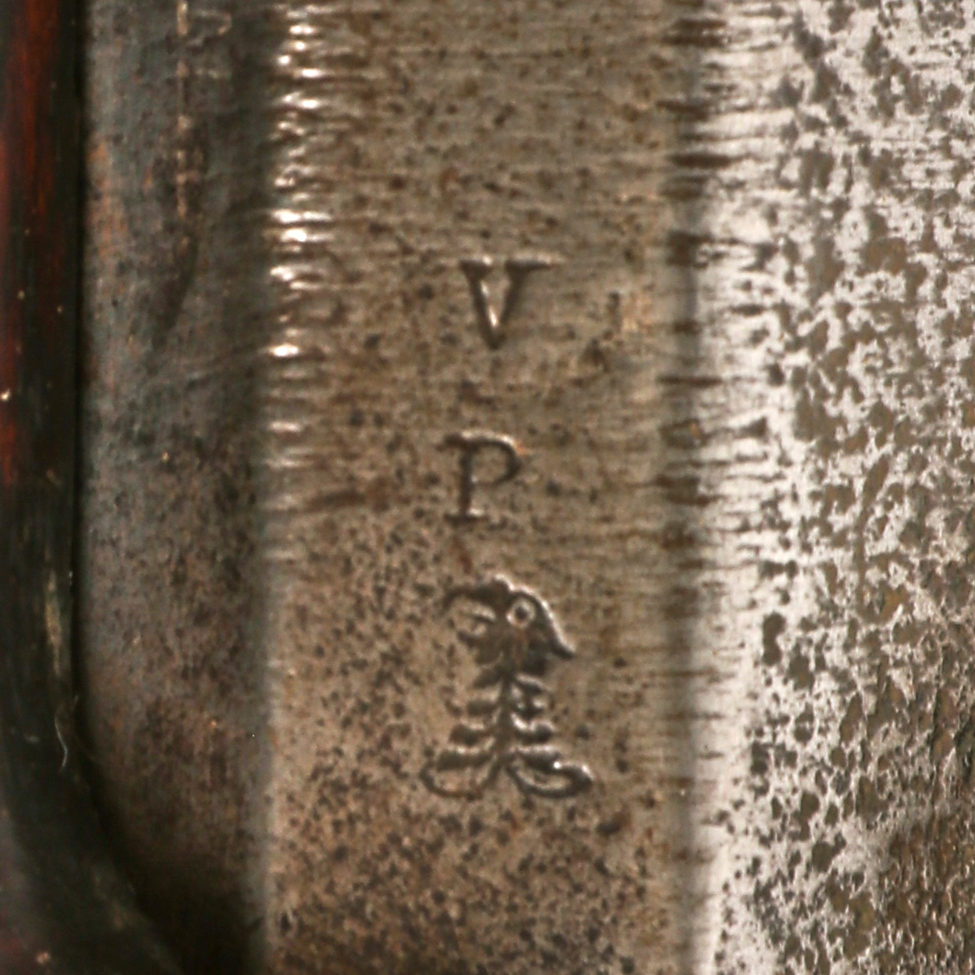 This lovely matured example however was not converted, and is still in the original configuration. It is dated 1864 on the lock plate tail, and also has the Federal Eagle stamped into the lock under the hammer over U.S.. To the right of this is the contractor's maker mark: E. ROBINSON / NEW YORK. The markings on the lock are clear and overall the lock plate is in very good condition, especially considering the age, with just some light peppering. The barrel nocks form still shows the correct V / P / Eeagle's Head proof marks, however the date on the barrel is worn away. There is also a faint H.M.B. marking on the left side of the barrel, a known marking on Robinson contract muskets that has not been identified.
