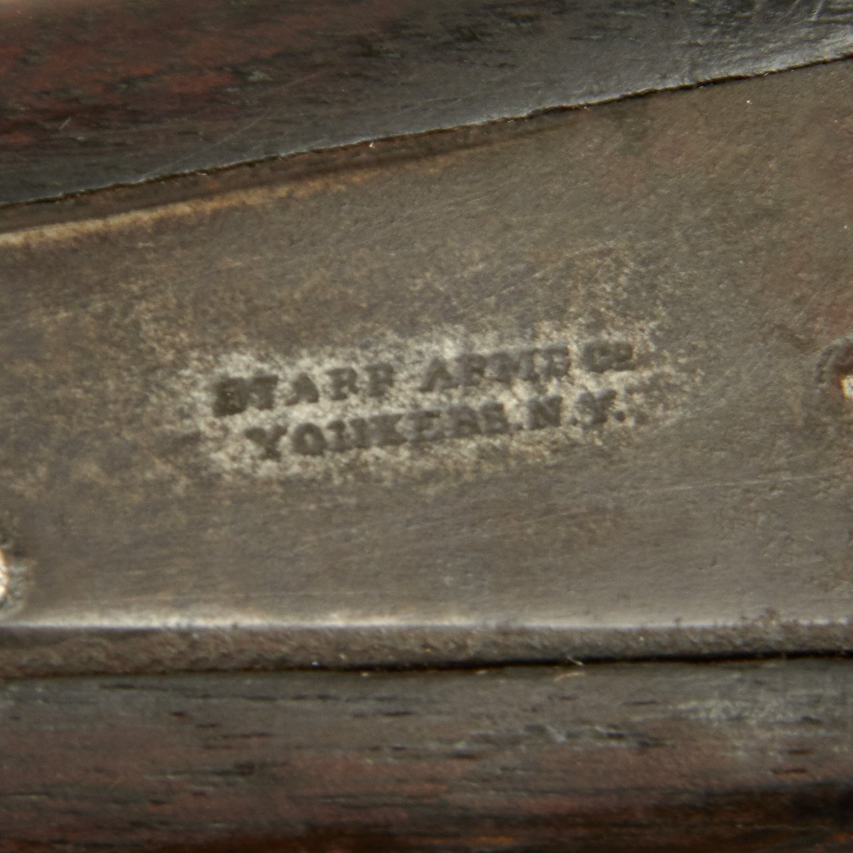 This example is offered in very nice condition. All aspects function perfectly bore in the 21" barrel shows has a bright bore with crisp lands and grooves. It will rate a nine on a one to ten scale. Action is smooth and tight. Wood to metal fit is very good. All markings are correct and complete. The barrel is marked with serial number 30580 Marked nicely on both lock and barrel: STARR ARMS CO. YONKERS, N.Y. It also bears the patent markings just behind the falling breech: STARR'S PATENT. / SEPT. 14TH 1858.