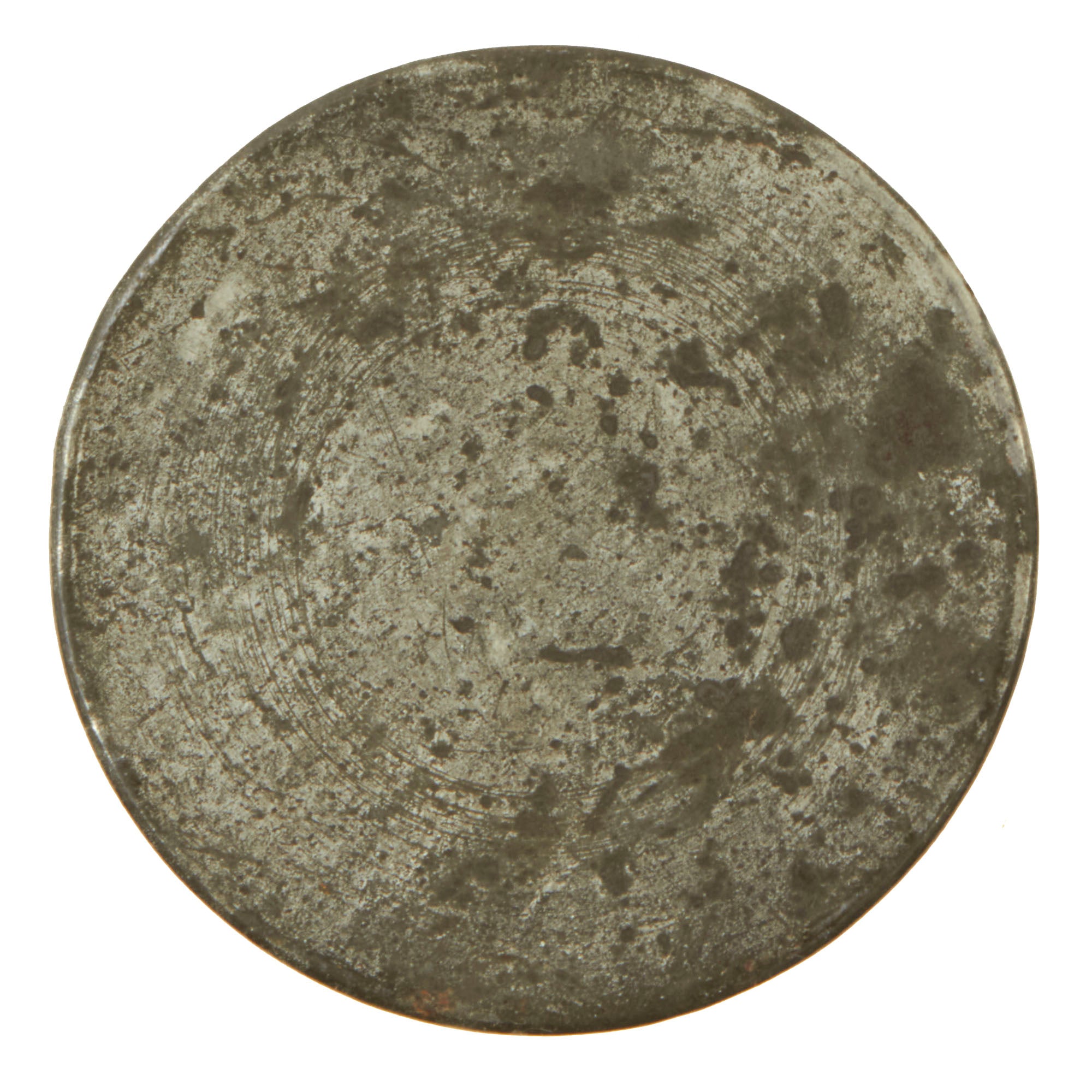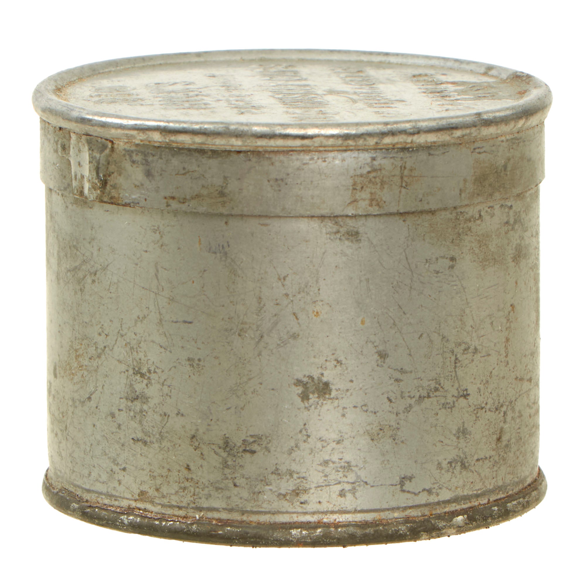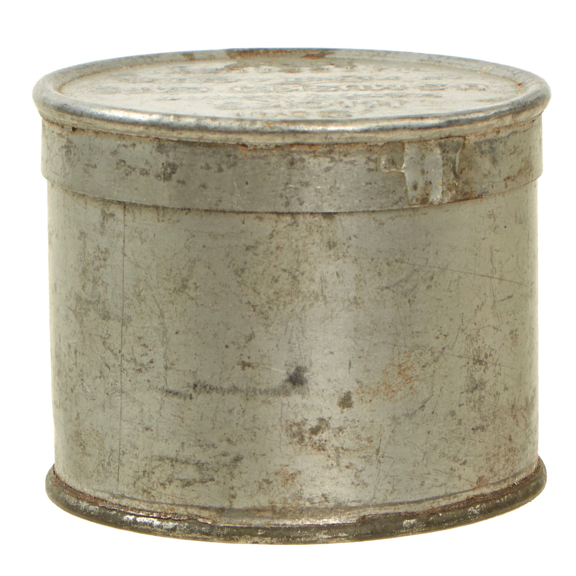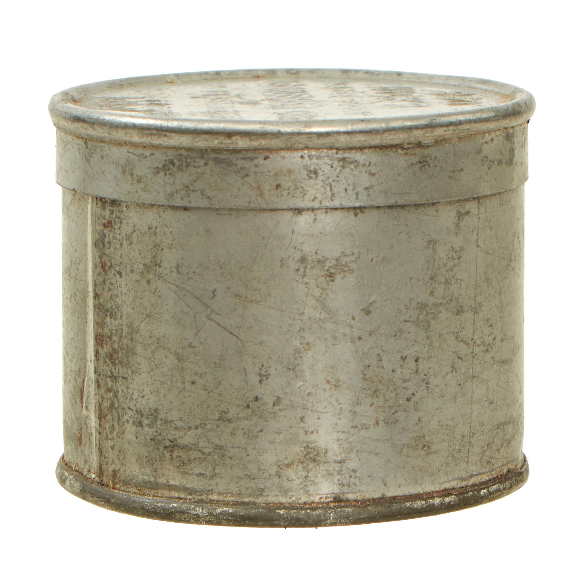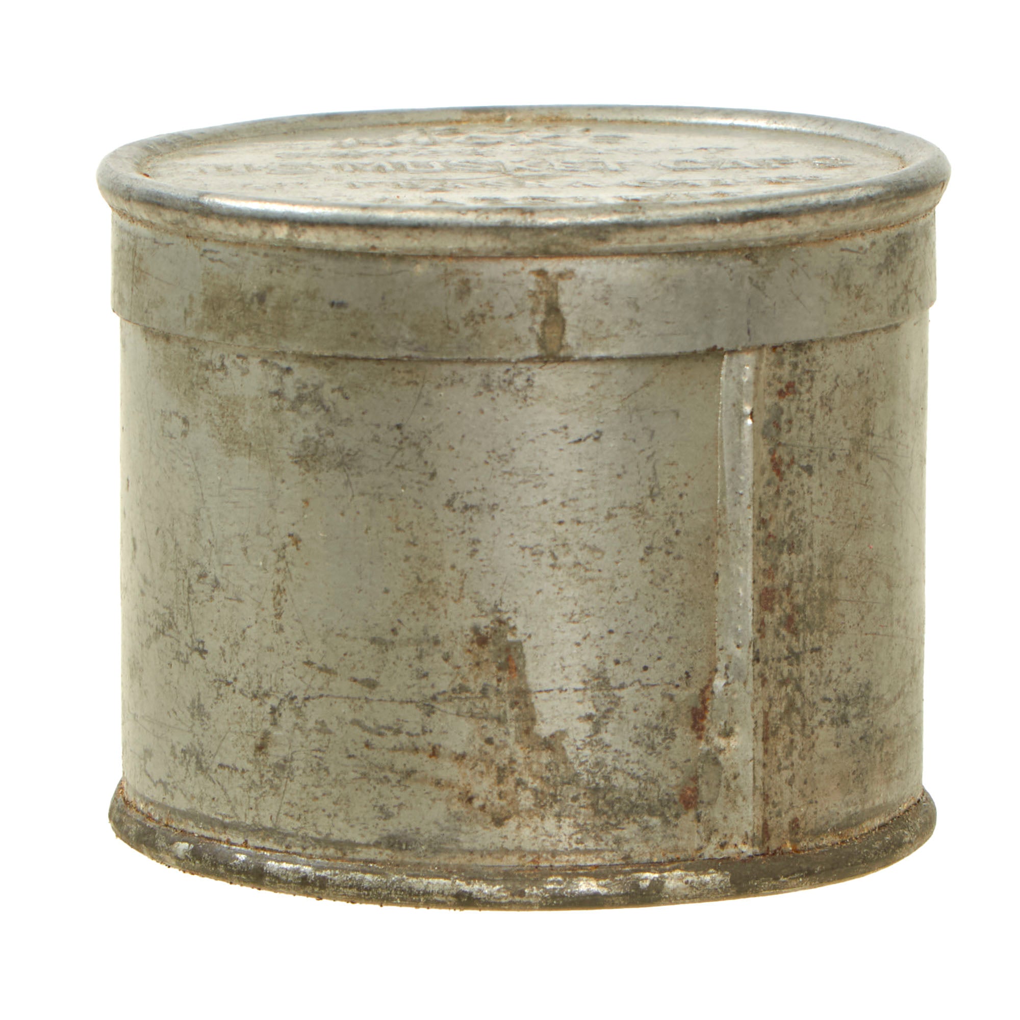 The tin measures 1¾” tall with a 2⅛” diameter. A great piece, ready for further research and display!