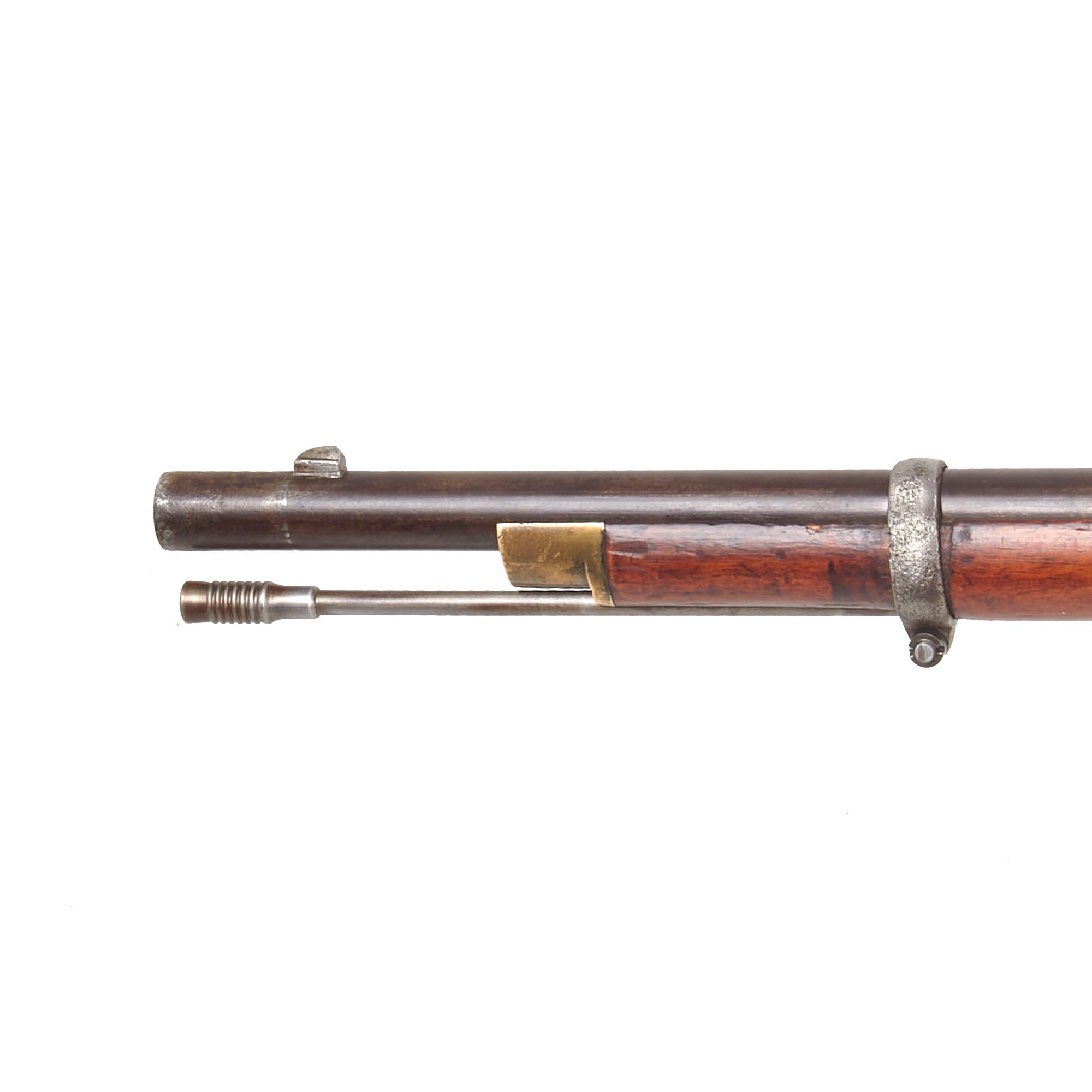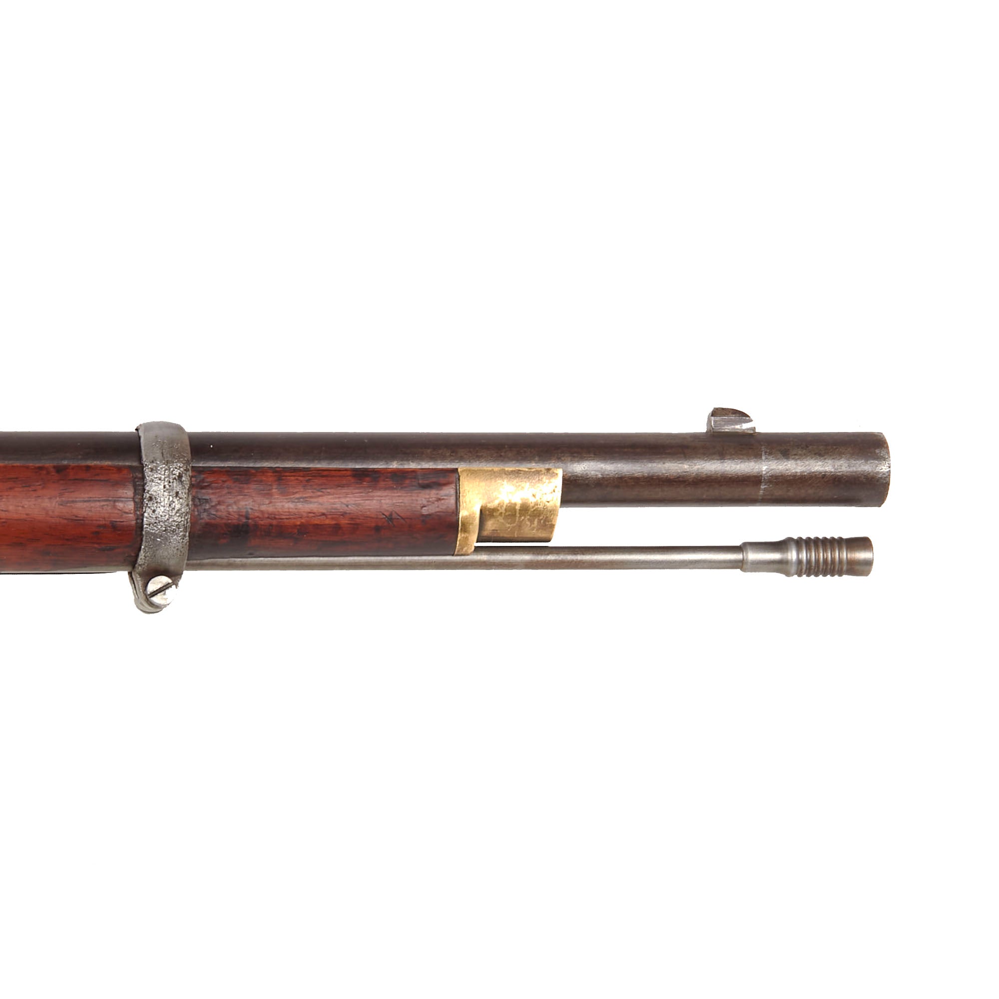 Original Item: Only One Available. Offered here is a nice service used example of the 3rd Model Pattern 1853 Enfield Rifle Musket, as produced in England with brass butt plate, trigger guard and nose cap. The three steel barrel bands are held on with screw pressure, as typical of the 3rd model. The screws are not recessed, as they would be on the "Baddeley" type bands used on the later 4th model.