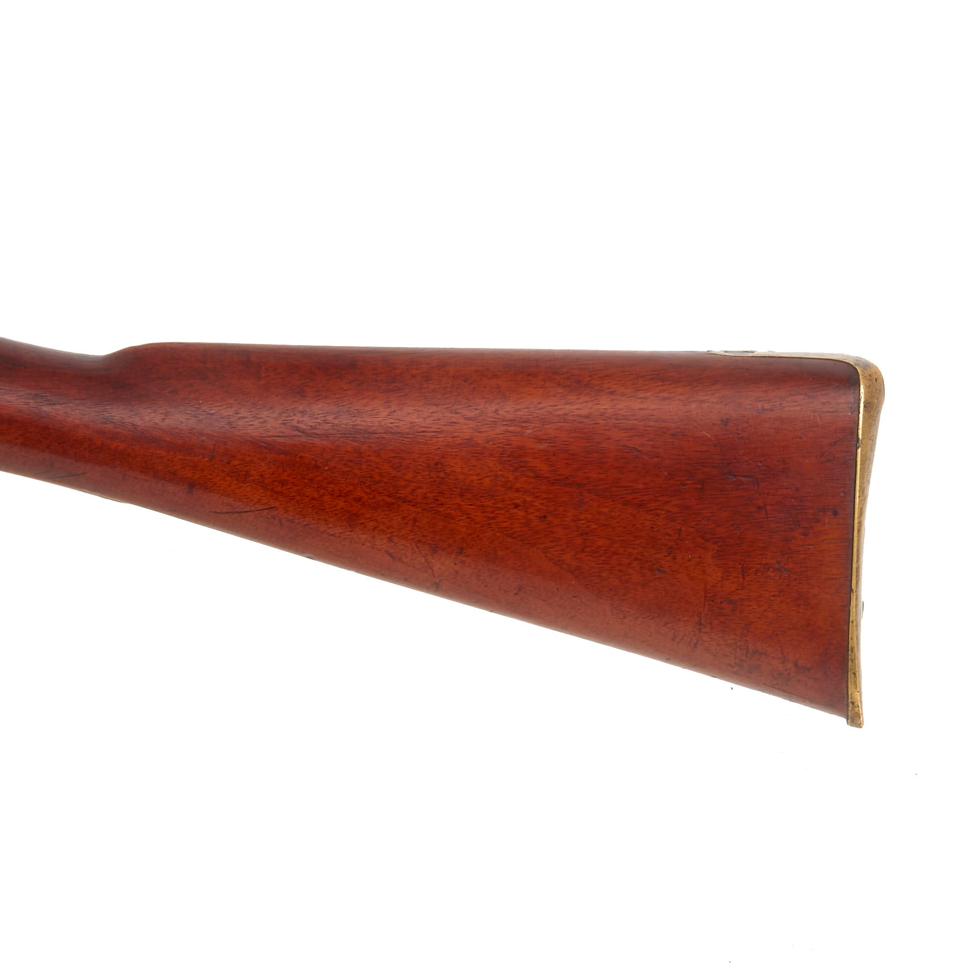 We checked the bore, and the three groove rifling is still easily visible, with scattered areas of oxidation and fouling throughout. It looks to have seen light service, but was probably not cleaned properly afterwards. The stock has a lovely red brown color, and shows only light signs of use, which could definitely be from post war storage. There are no cracks or other major damage, and only minimal wear, making it one of the best P-1853 stocks that we have seen in some time.