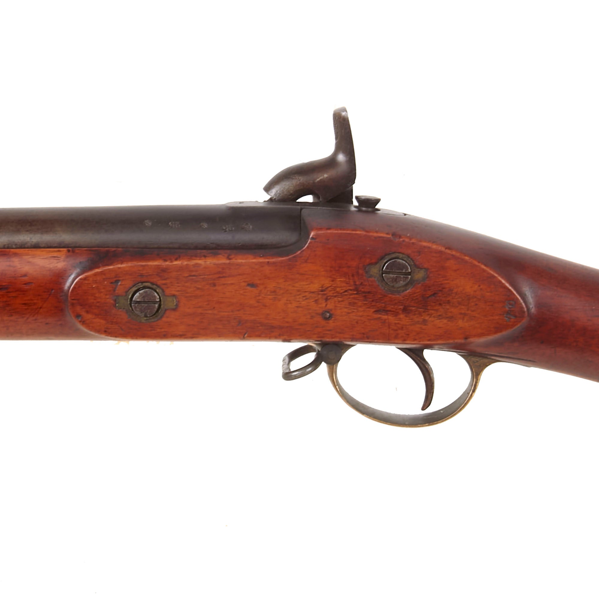 A similar Short Rifle edition of this same weapon, dated 1861, appears on the Cover of THE CONFEDERATE ENFIELD by Captain Steven W. Knott, U.S.N. (Ret). with a write up on pages 44 and 45. In addition there is a photograph of the proof marks of this known Confederate Soldier's Rifle on the Title page of the book which are completely identical to those on this weapon. This excellent book states that the Confederate Buying Agents, Josiah Gorgas and Caleb Huse purchased over 350,000 European Rifles between 1861 and 1865, over 250,000 of these were the Percussion Enfield Rifled Muskets and 100,000 were Austrian Percussion arms.