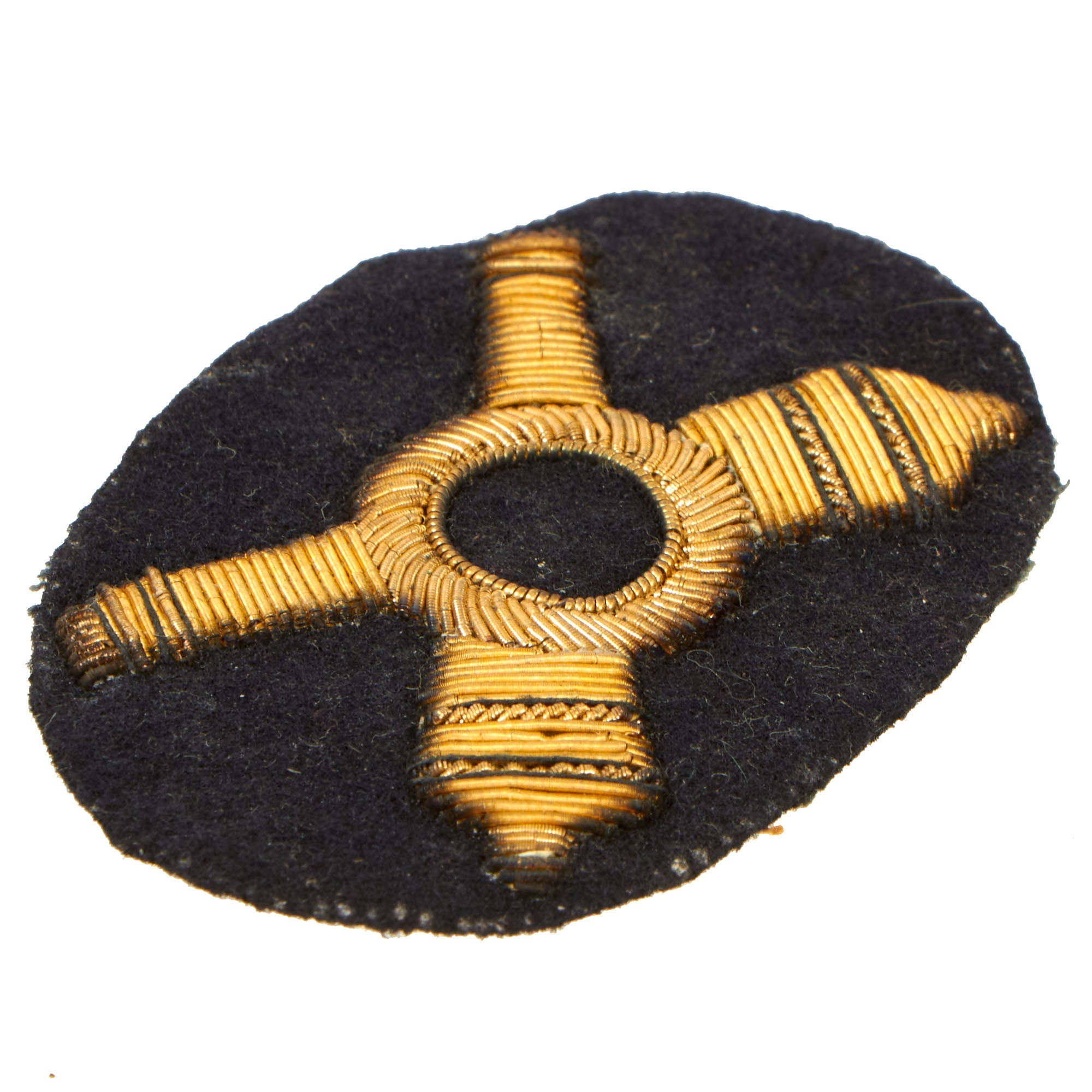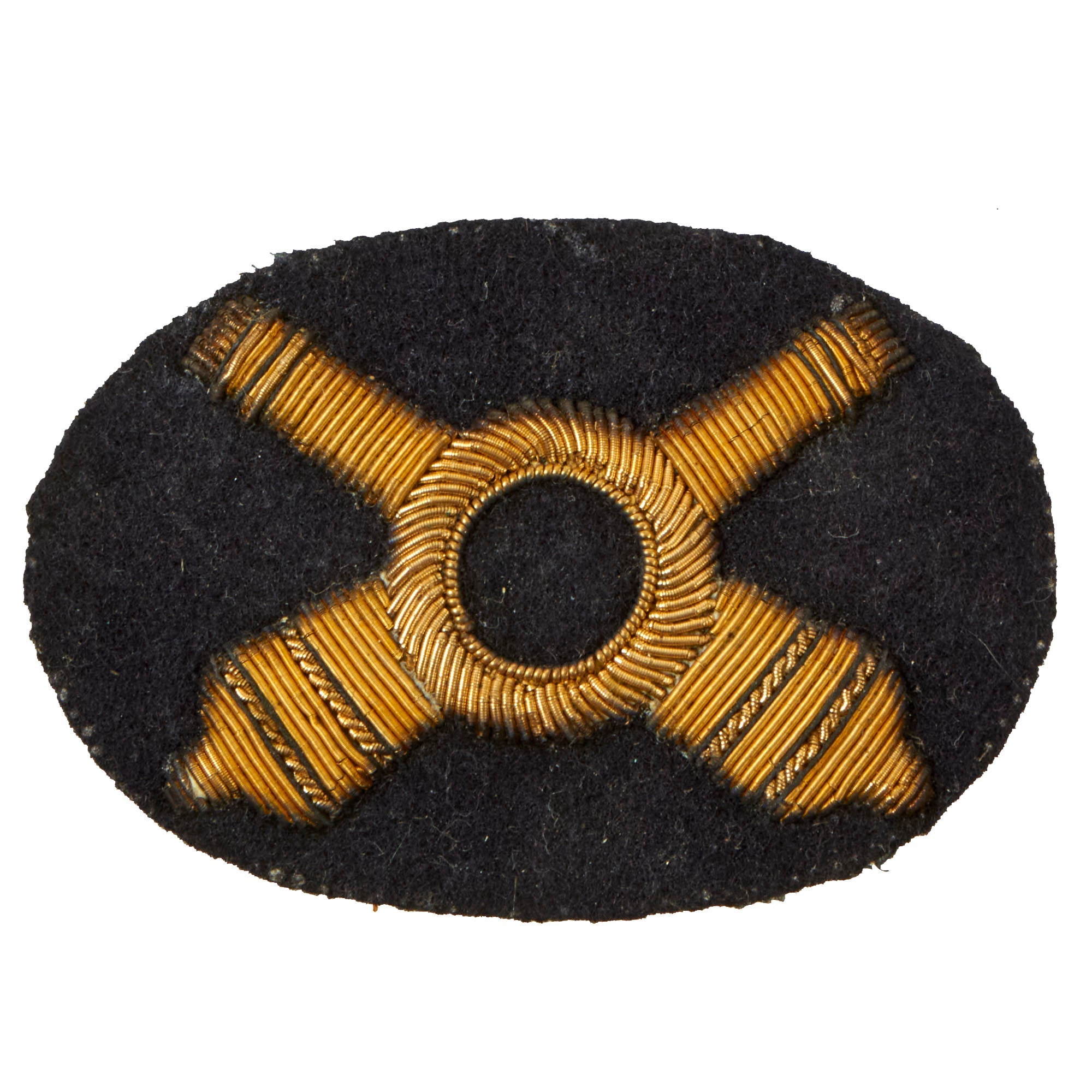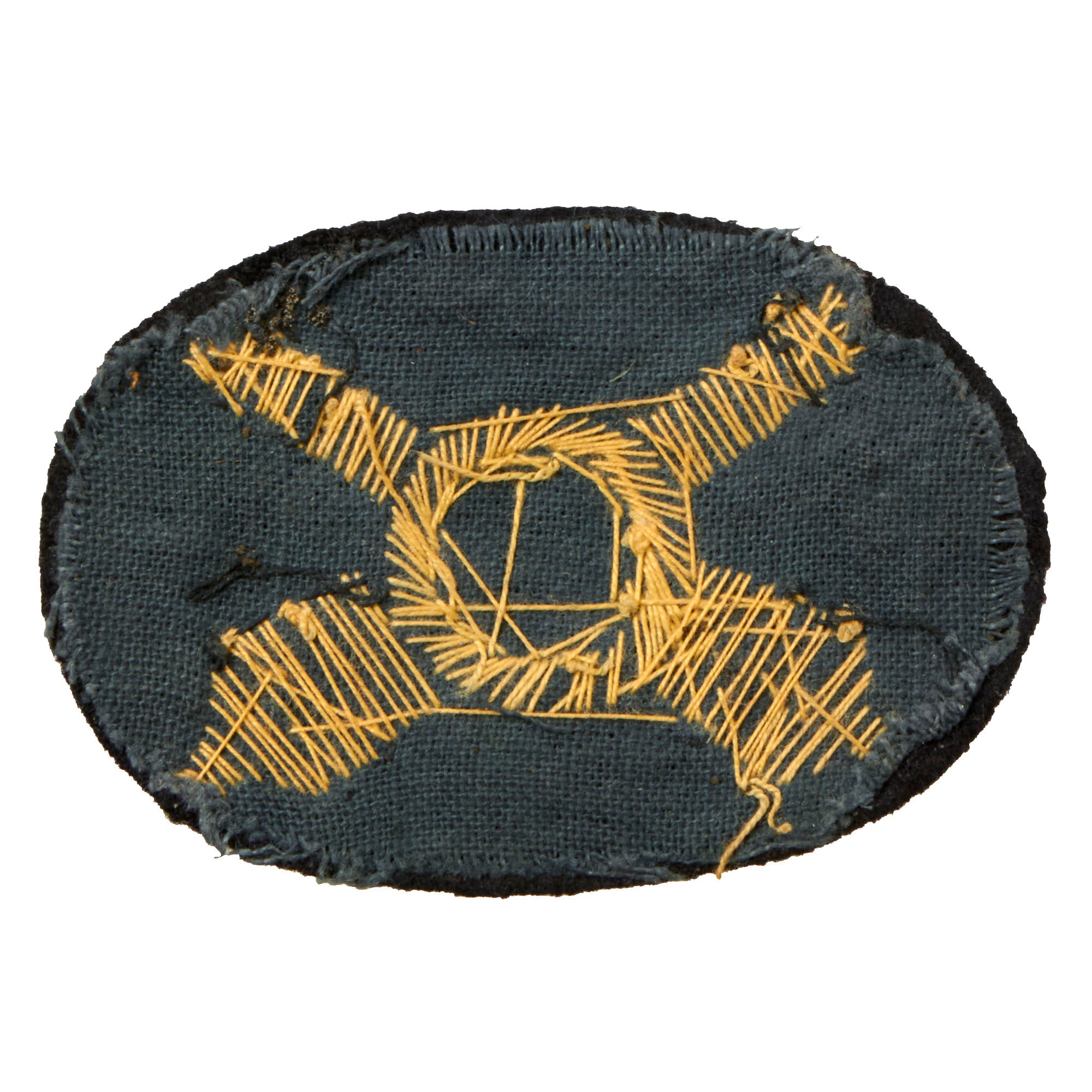 The device is the typical style as used during the Civil War, and worn on all versions of headgear worn by Artillery Officers during the war. The insignia is embroidered on a dark blue wool with fine bullion embroidery in gold and silver. The workmanship is second to none, and the condition rates as excellent, only showing signs of mellowed patina from being in storage over the last 150 years.