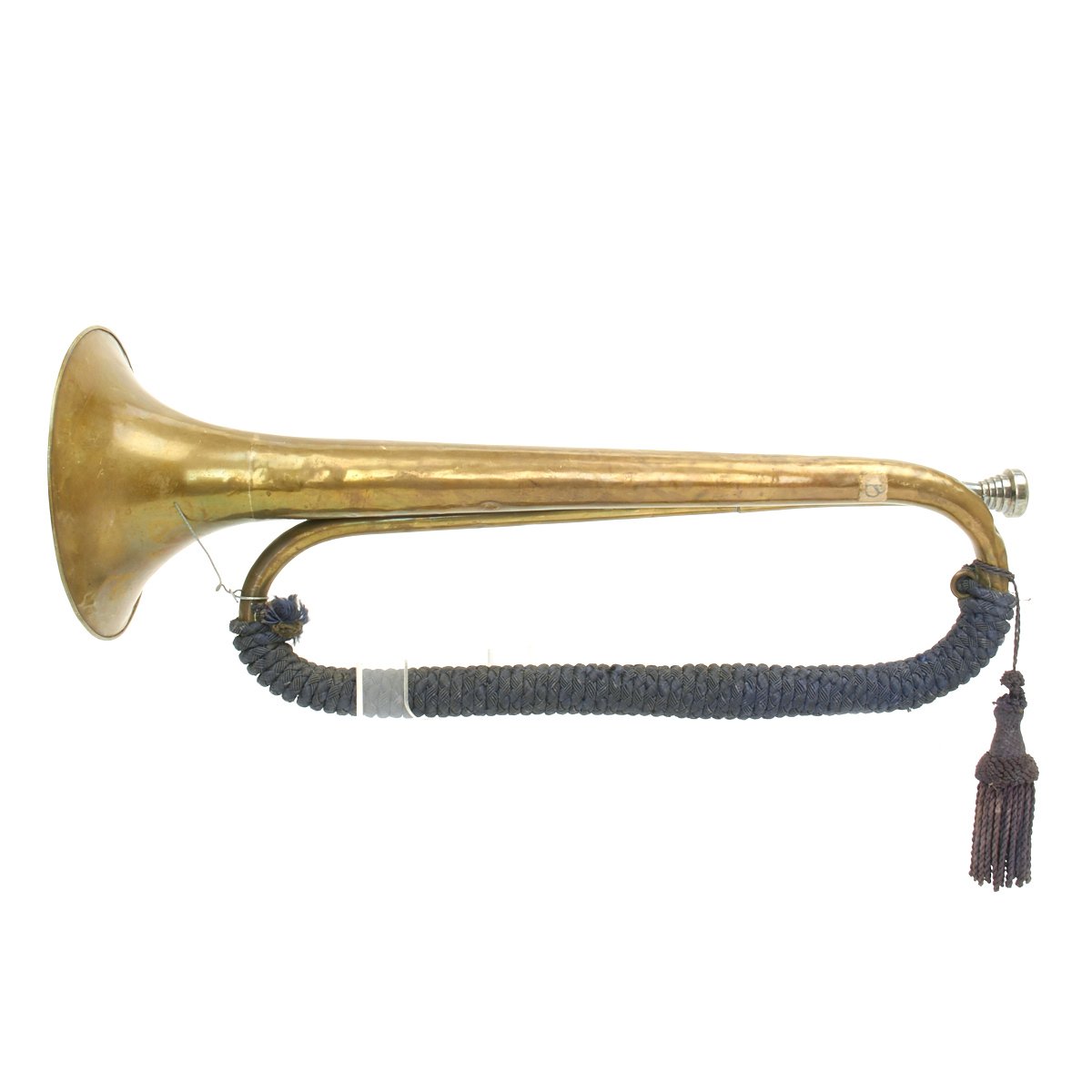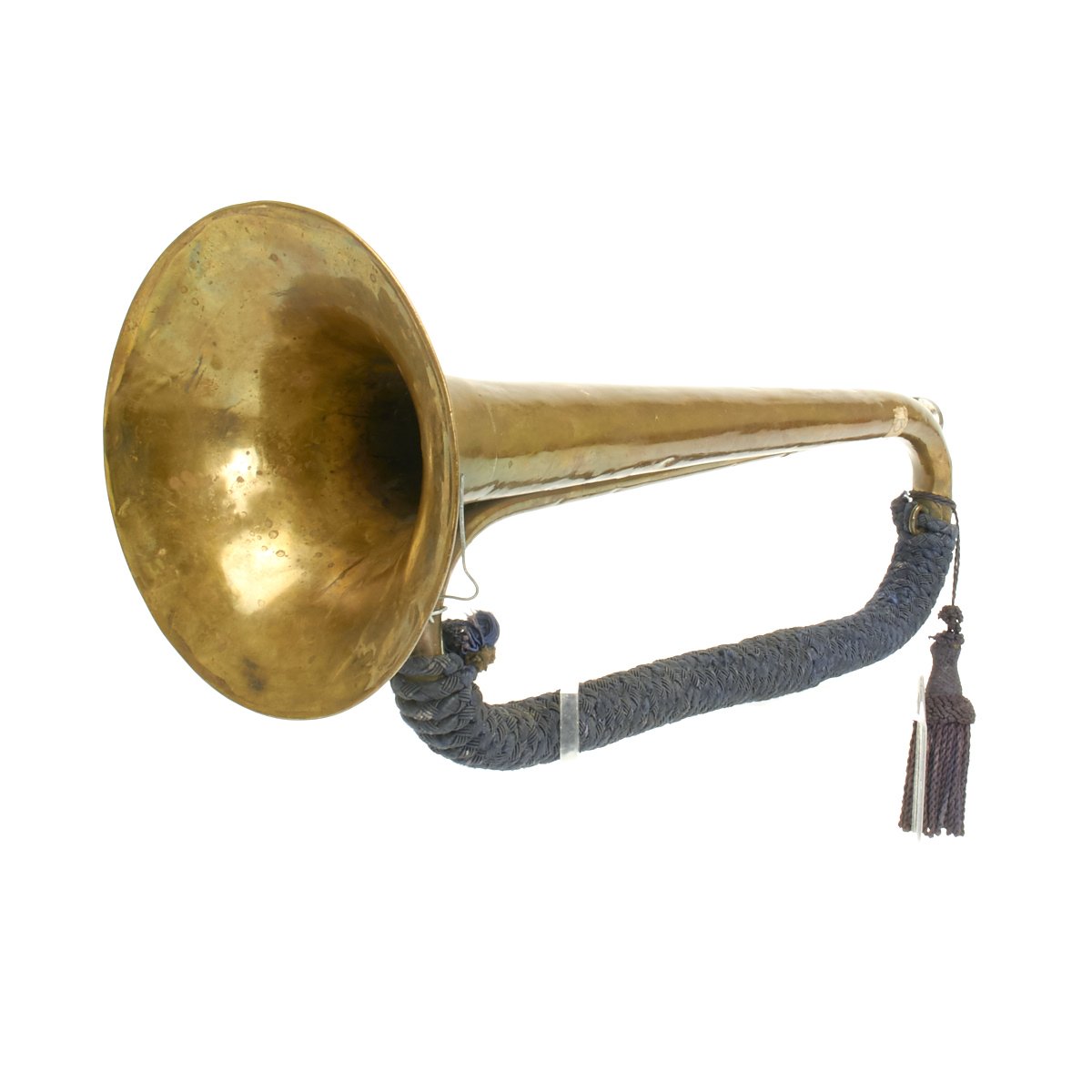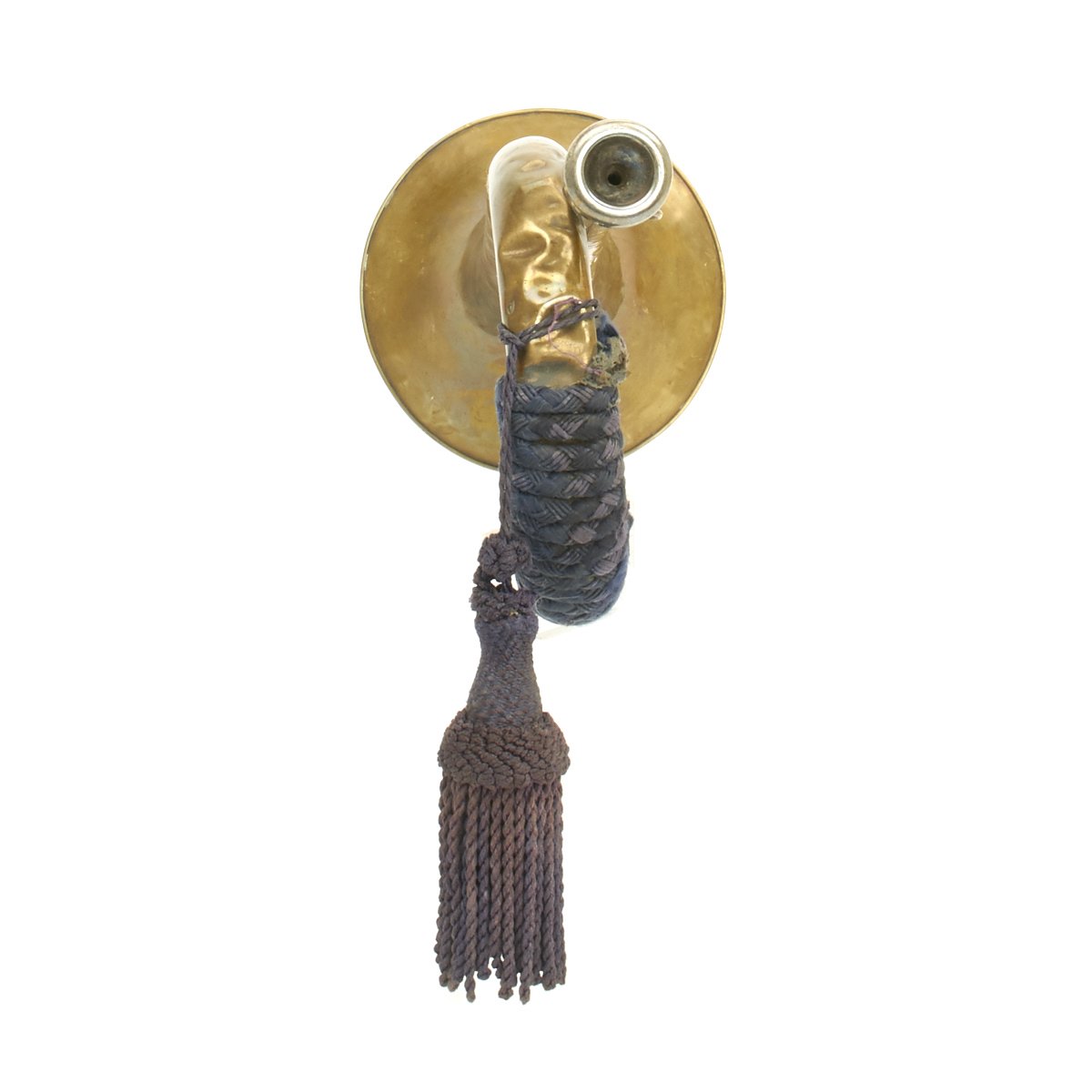 This example clearly has the brazed seam and is tightly bound in the correct BLUE Cord used by Union Infantry Regiments. In really fine but matured condition this has no doubt hung on someone's wall on display for over 150 years. Markings on mouth piece including U.S. It does have some dents on the rear bow before the bell, and is not free-blowing. Ready to display in your collection.