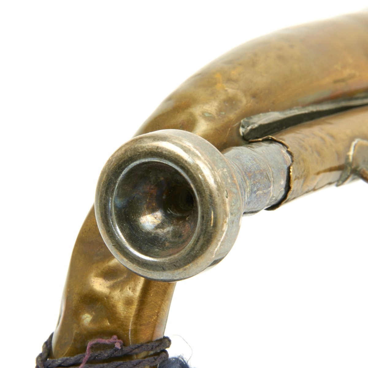 Original Item: Only One Available. This is an early production model in that the horn is made of two parts and the brazed seam in the bell is quite evident. With ever increasing manufacturing achievements, by the close of the war it was possible to spin the bell using one piece of brass at a lower cost.