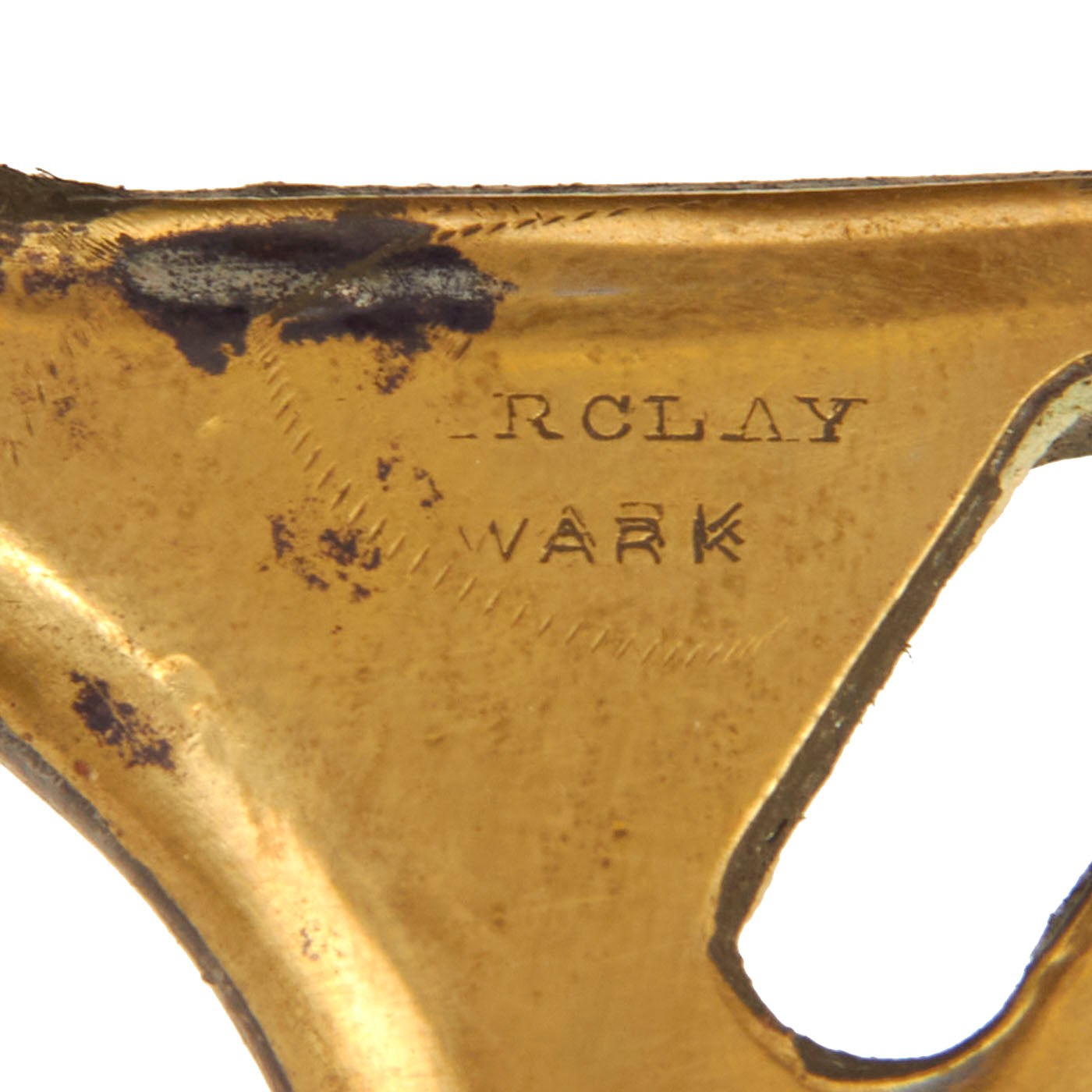 This example is in its original early war configuration with the intertwine domed “USA” rosettes on the sides. There is no damage or cracks that we can find and there is a partial makers mark on the left side above the USA for “A. Barclay / Newark”.