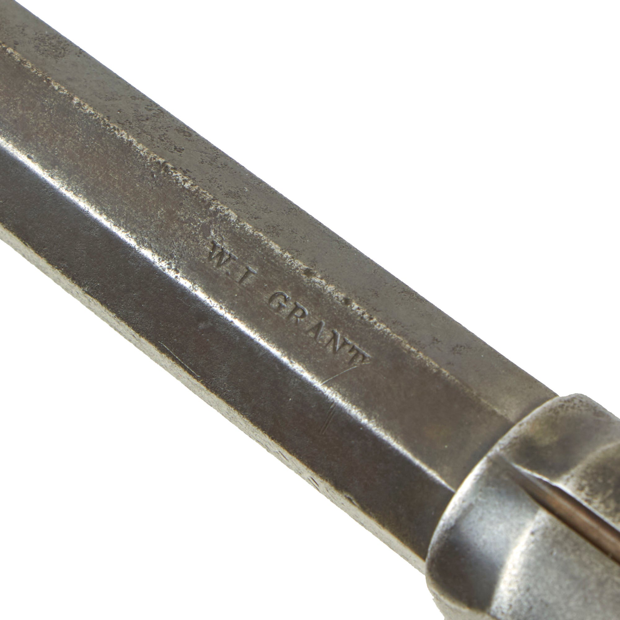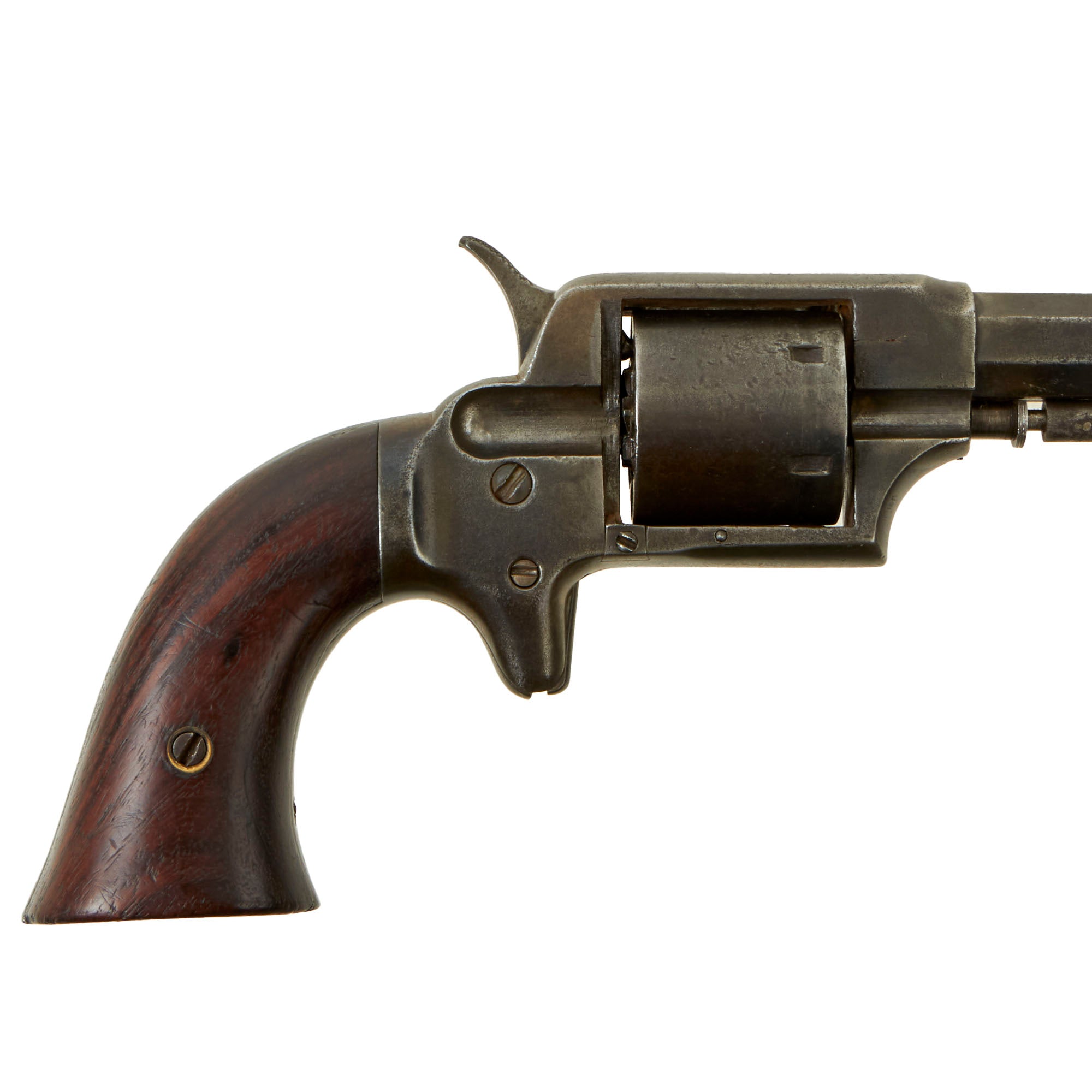 Our example is in very nice service used condition, and is Marked W. L. GRANT on the top of the barrel, with no markings on the left side of the frame. The revolver has serial number 203 on the bottom of the grip frame, the underside of the cylinder, on the arbor pin, and on the side of the cylinder. It is even marked on the inside of the left grip scale! The only marking missing is what would usually be on the loading gate, however that has broken off on this example.