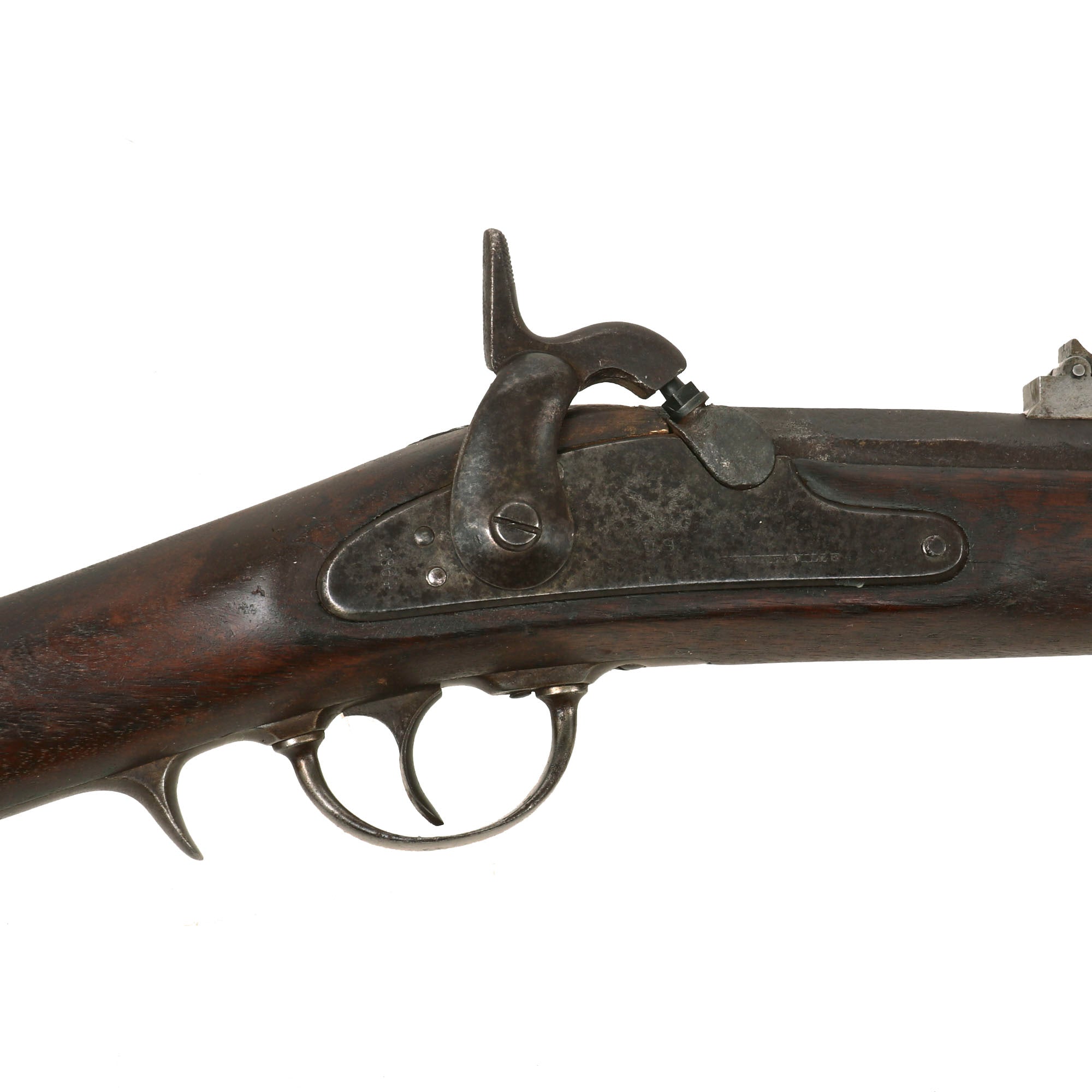 Original Item: Only One Available. This is a wonderful offering, only the third example of this scarce rifle we have offered! Here we have an Excellent condition rare U.S. Civil War "Plymouth" Navy Percussion Rifle, one of 10,000 made by Eli Whitney’s manufactory, Whitney-ville, based on an 1861 contract to the U.S. Navy. Five sample rifles were delivered in October 1862 and regular deliveries started in February 1863, with 5,300 delivered that year and the remaining 4,695 in 1864. This is one of the final year of production, 1864, with a serial number of 9703.