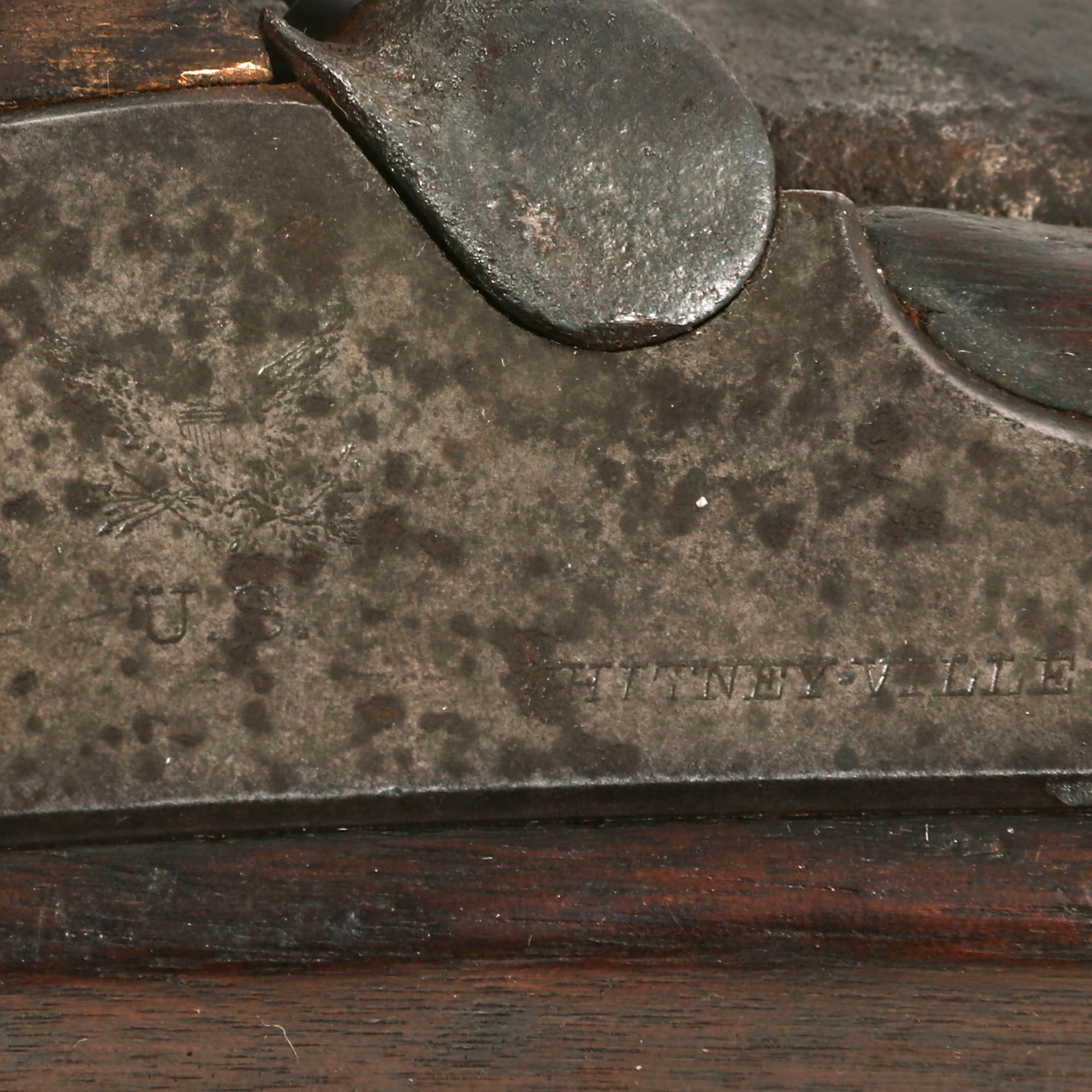 The musket was a product of Eli Whitney’s firm which he called the “Whitneyville-Armory”. A production facility founded in Connecticut circa 1850-70. From a modest factory complex straddling the Mill River just North of New Haven, Connecticut, the Whitney Armory produced more long-arms prior to and during the Civil War than any other private domestic manufacturer. From available records, it appears that the Whitney Armory turned out approximately 141,620 shoulder arms between 1826 and 1865. Furthermore, the variety of arms made was unsurpassed, even when compared to the National Armories. Most if not all of the Whitney long arms of this period found their way into the hands of Union and Confederate soldiers.