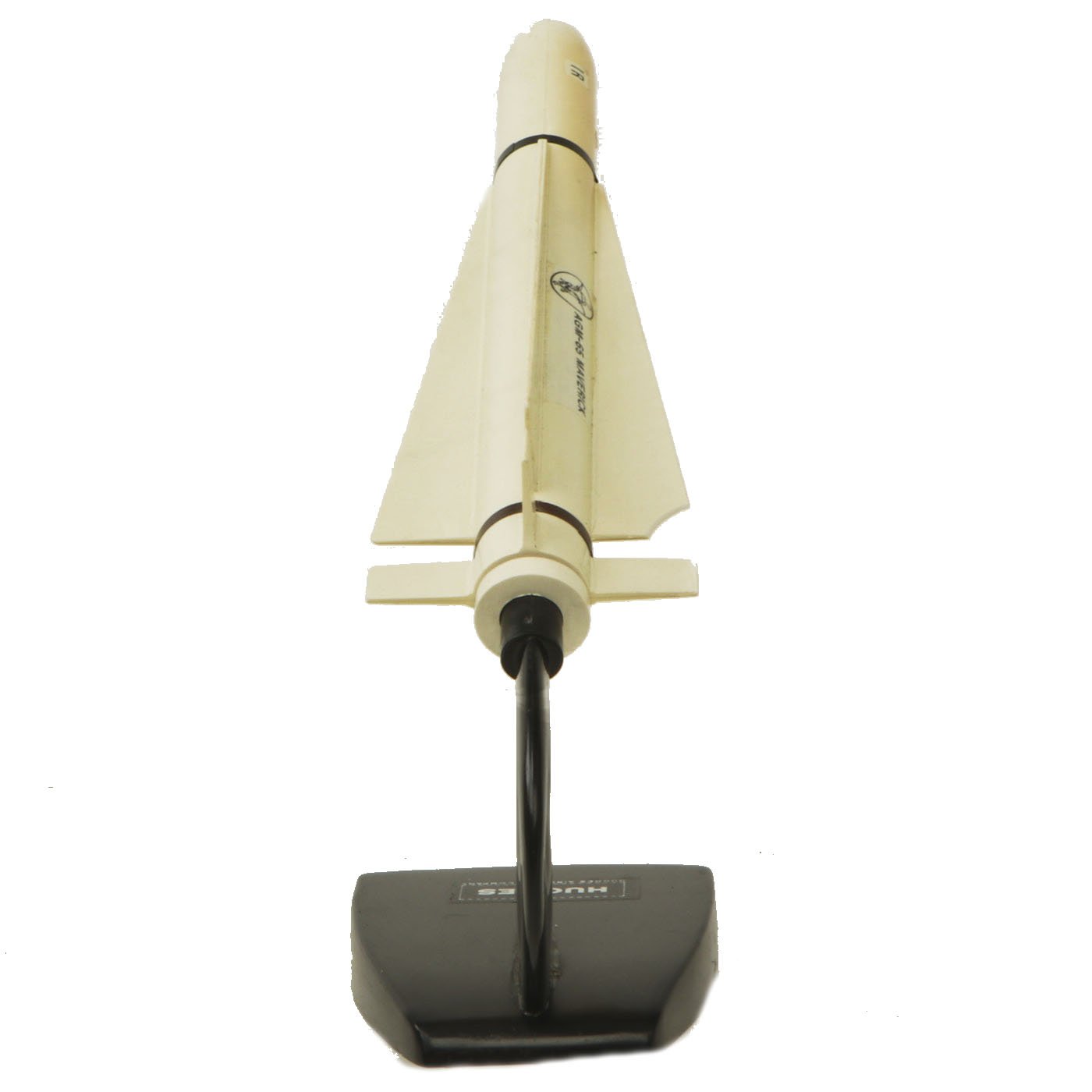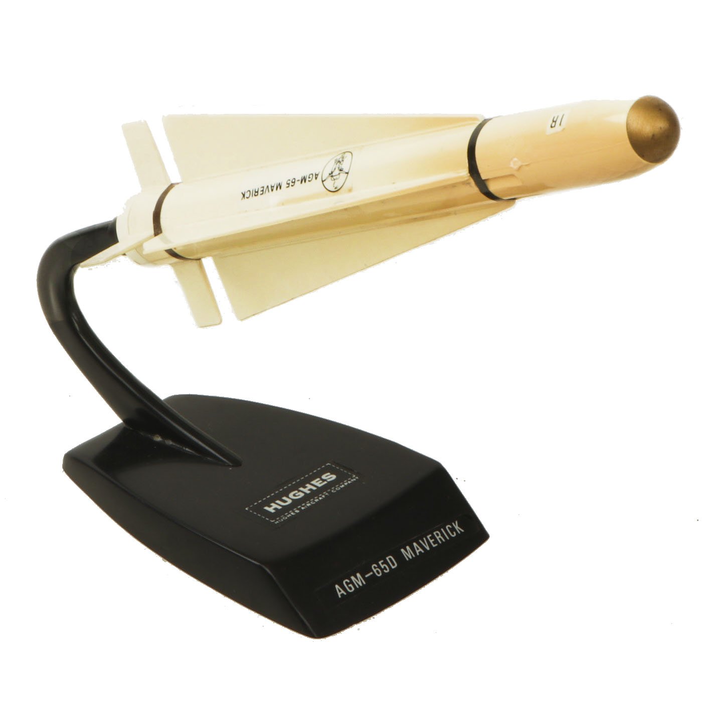 Original Item: Only One Available. This is a 1960's vintage desk top Model of the Hughes Aircraft AGM-65 A/B Maverick Missile. This model is in very good condition. One side of the model is slightly whiter from exposure to sunlight. The missile itself measures approximately 8" in length and the tip stands 7" above the base. Overall a very interesting Col War example of American ballistic strength in desktop form.
