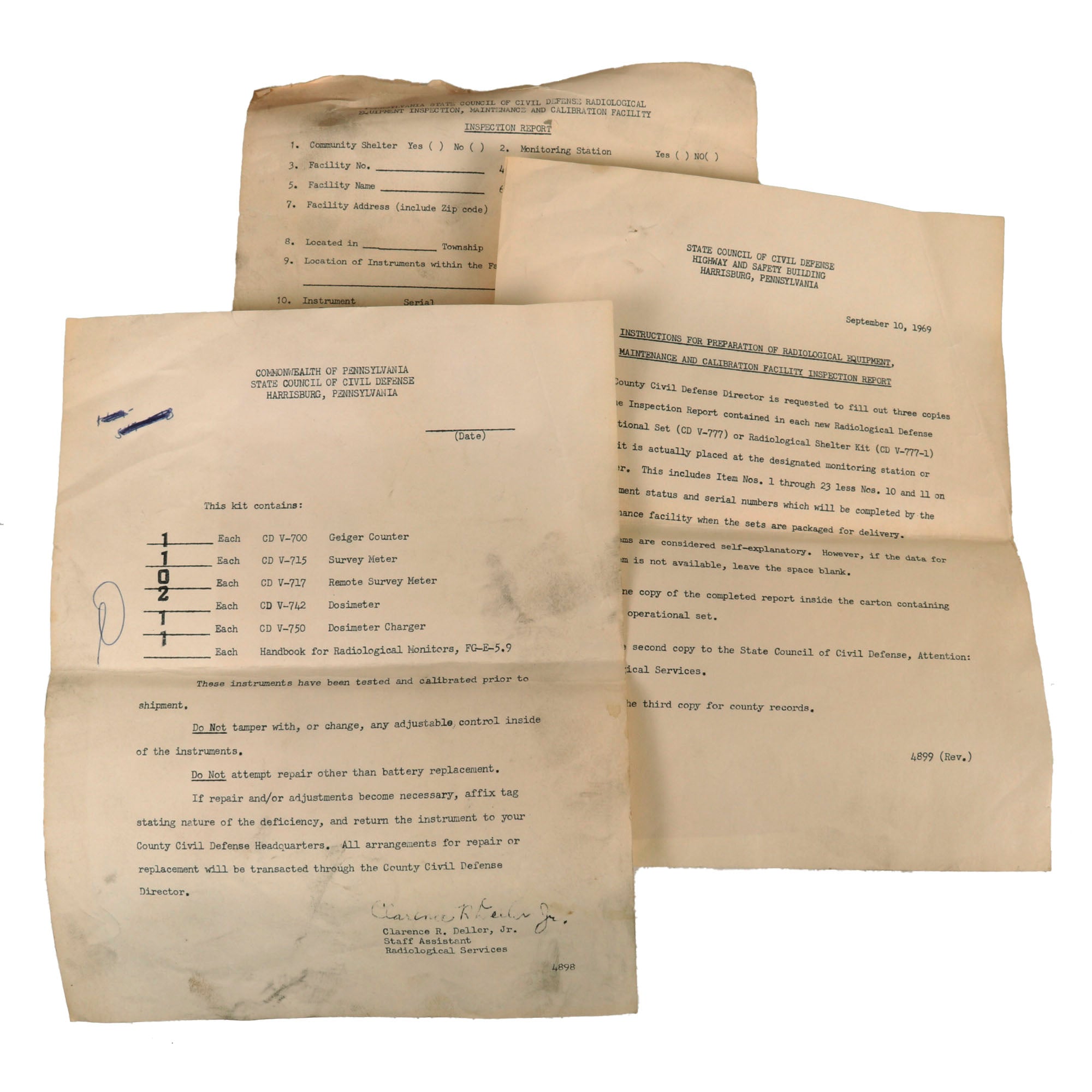 The original makeup of the set as described in the 1963 annual report of the OCD was exactly the same except that it had two dosimeters, not six. The Defense Civil Preparedness Agency's Radiological Defense Preparedness pointed out that instrument sets issued after 1978 included six dosimeters.