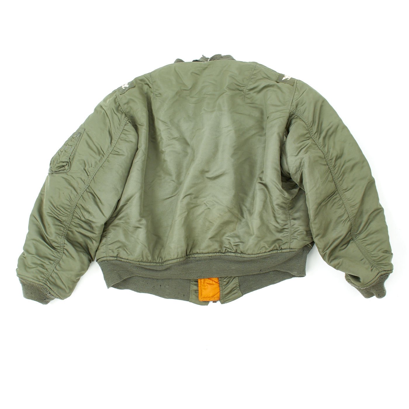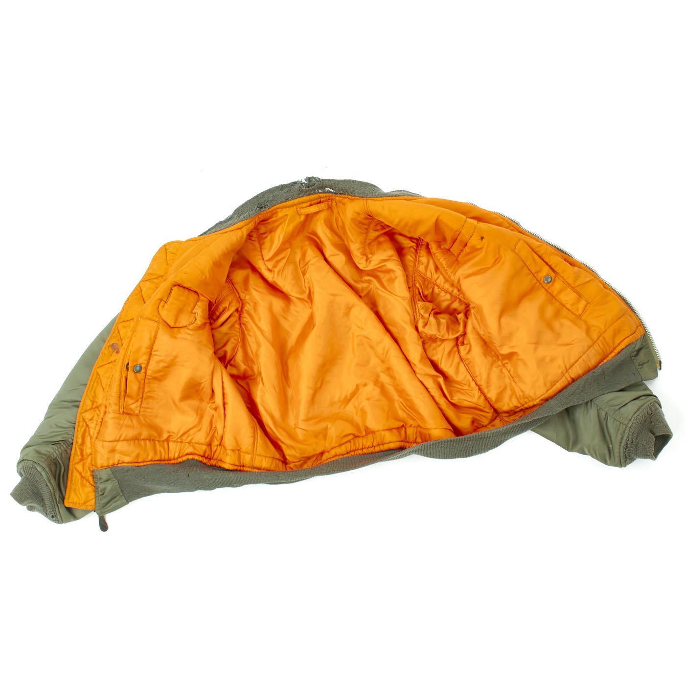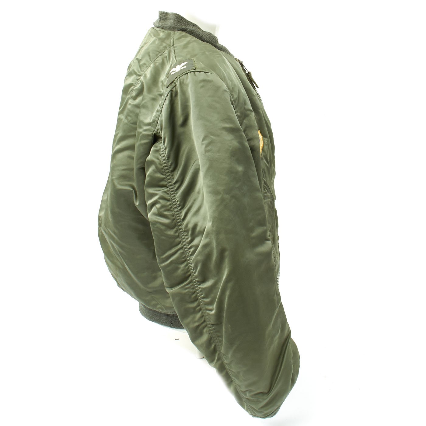 Original Item: Only One Available. This is an excellent condition MA-1 flight jacket that features and embroidered MCAS NEW RIVER insignia patch to the right chest and Lieutenant bars. Jacket is offered in good condition with functional zippers and snaps. Size is approximately a US 40.