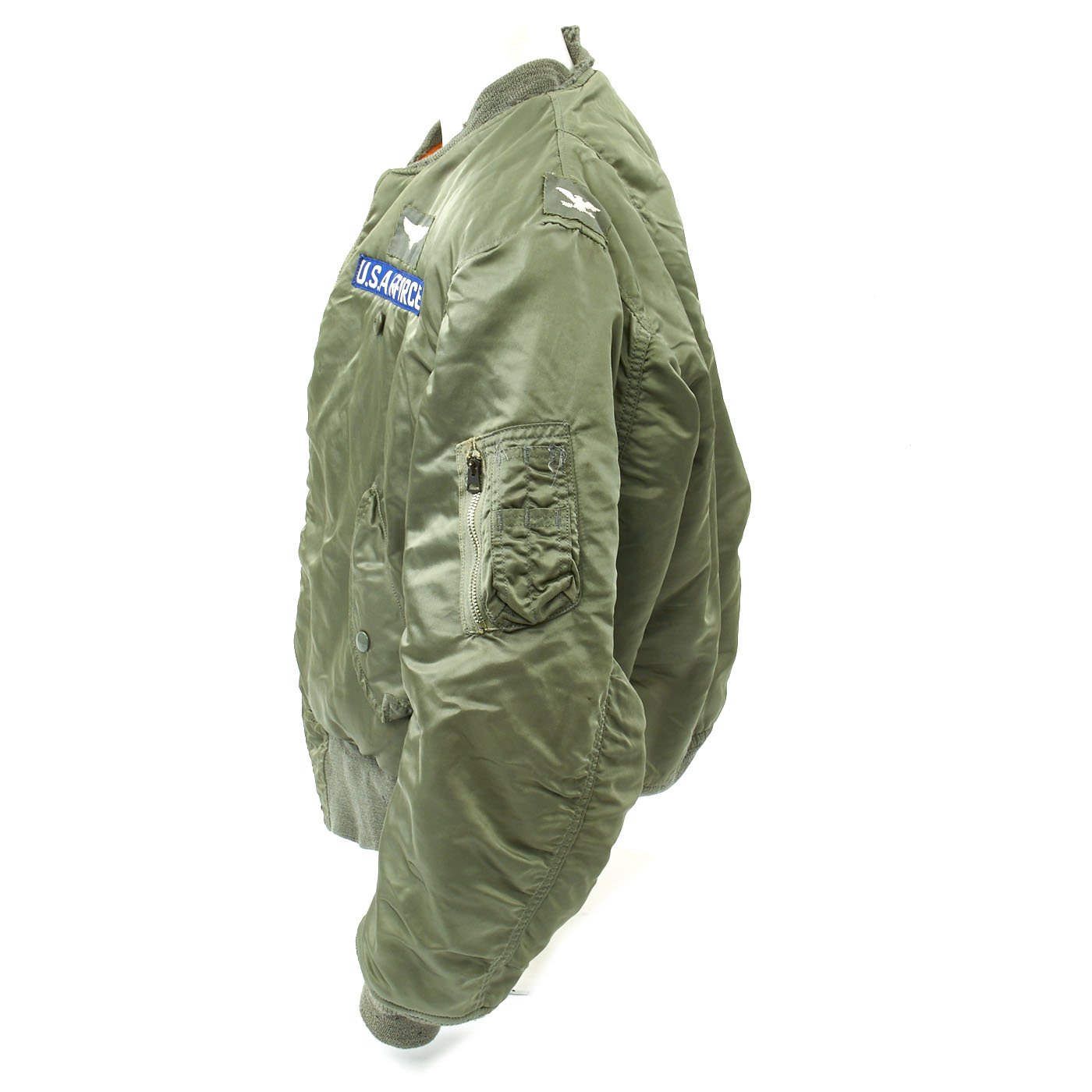 Original Item: Only One Available. This is an excellent condition MA-1 flight jacket that features and embroidered Colonel's insignia, Flight Medic Wings and Military Airlift Command insignia patch to the right chest. Jacket is offered in excellent condition with functional zippers and snaps. Size is approximately a US 42".