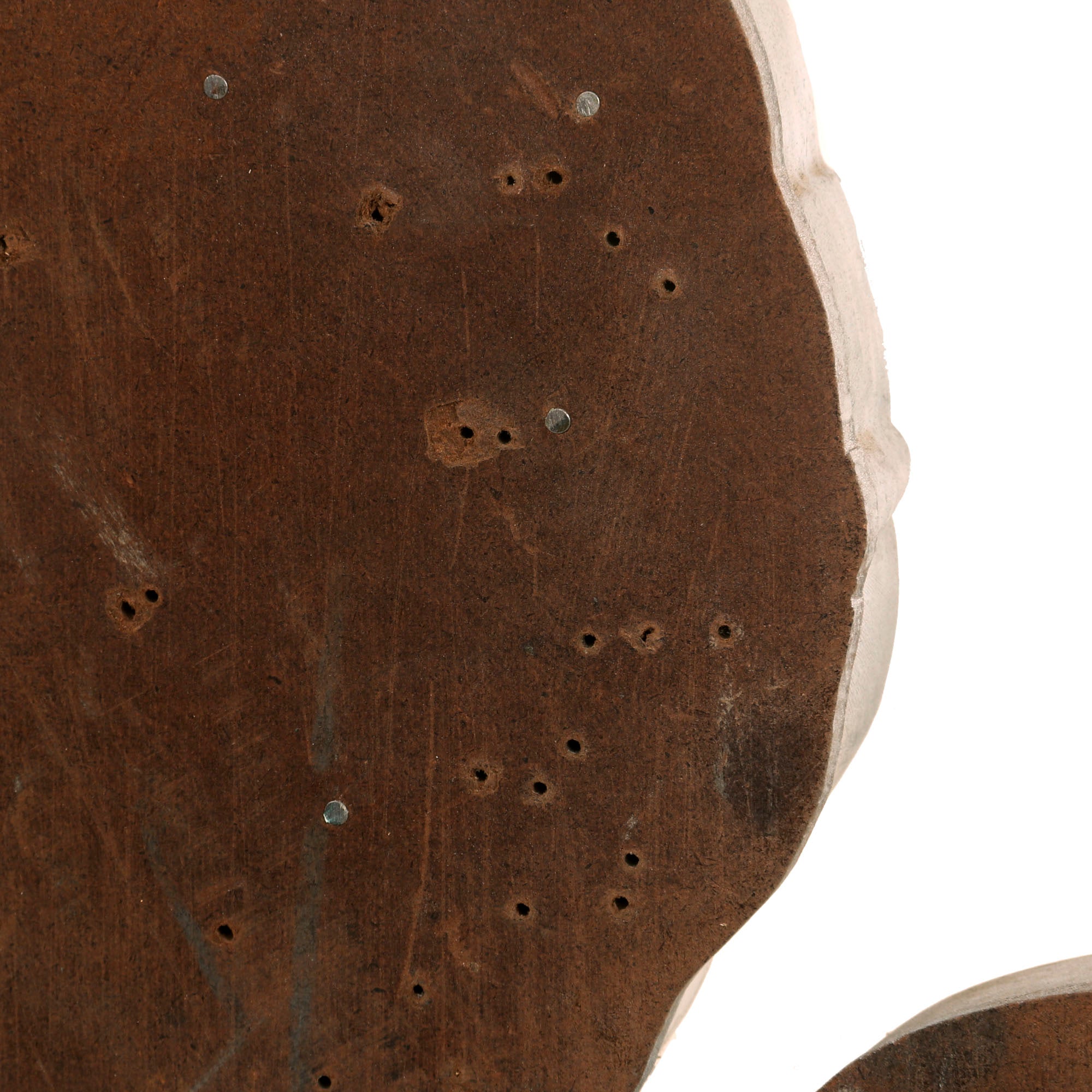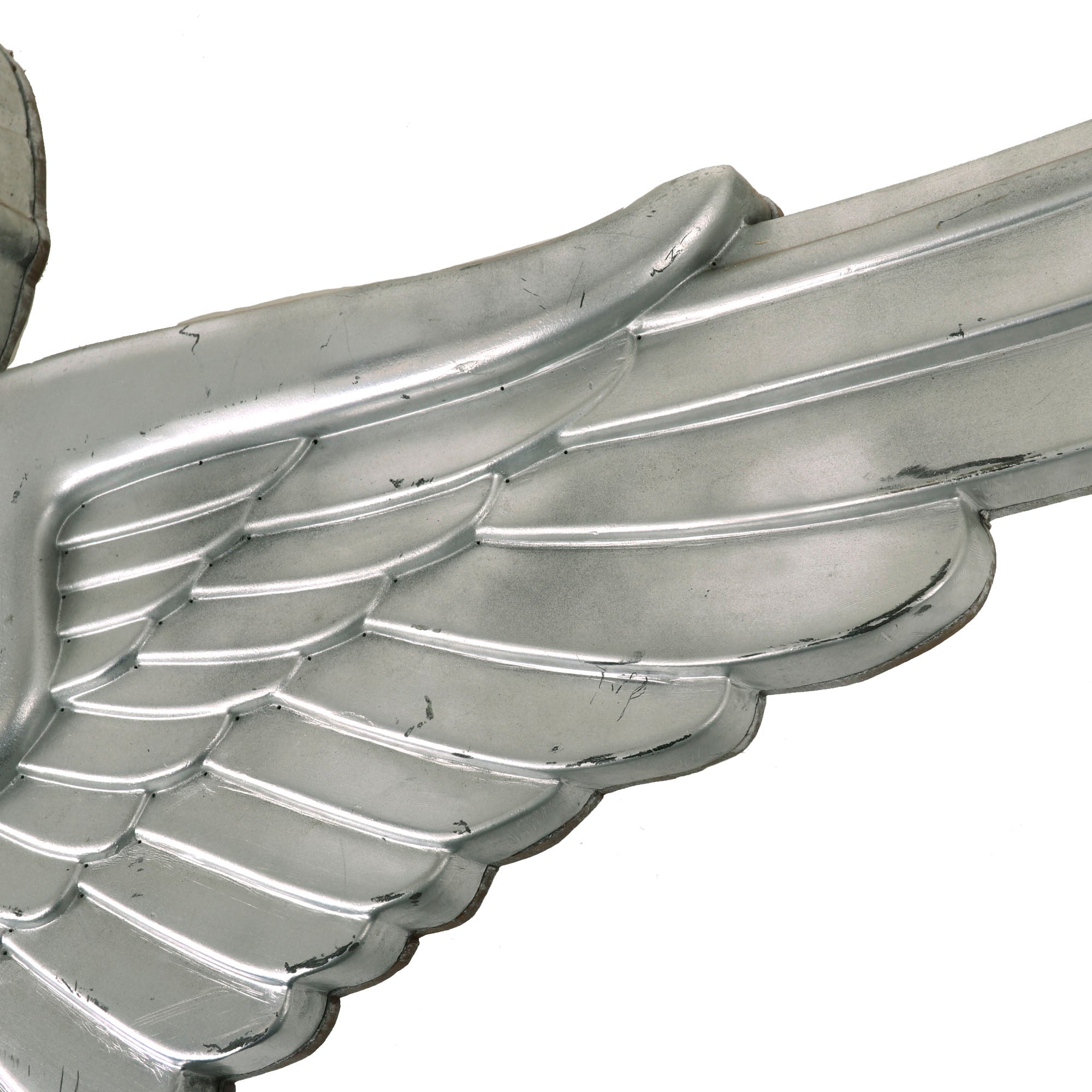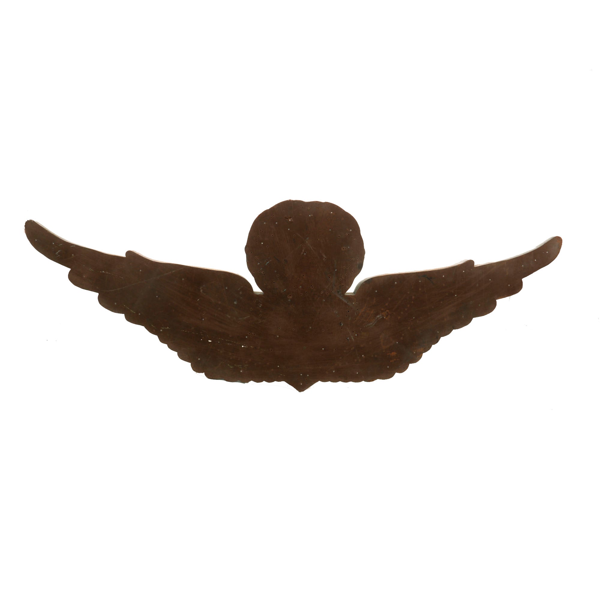 Original Item: Only One Available. This set of aviator wings is truly magnificent in size, made from high-quality aluminum exterior with a wood core. It appears to be a unique display piece that was most likely intended to be showcased in an Officer's Club exclusively allocated to Army Aviators. The wing is hollow cast, with a solid wood backing which adds to its durability and grandeur. Upon close inspection, one can notice multiple pinholes that are present all over the face and back of this display piece. The reason for their existence remains a mystery. Despite some minor blemishes and cosmetic issues, this is an extraordinary set of wings that is perfect for display. Its sheer size and attention to detail make it a one-of-a-kind addition to any collection.