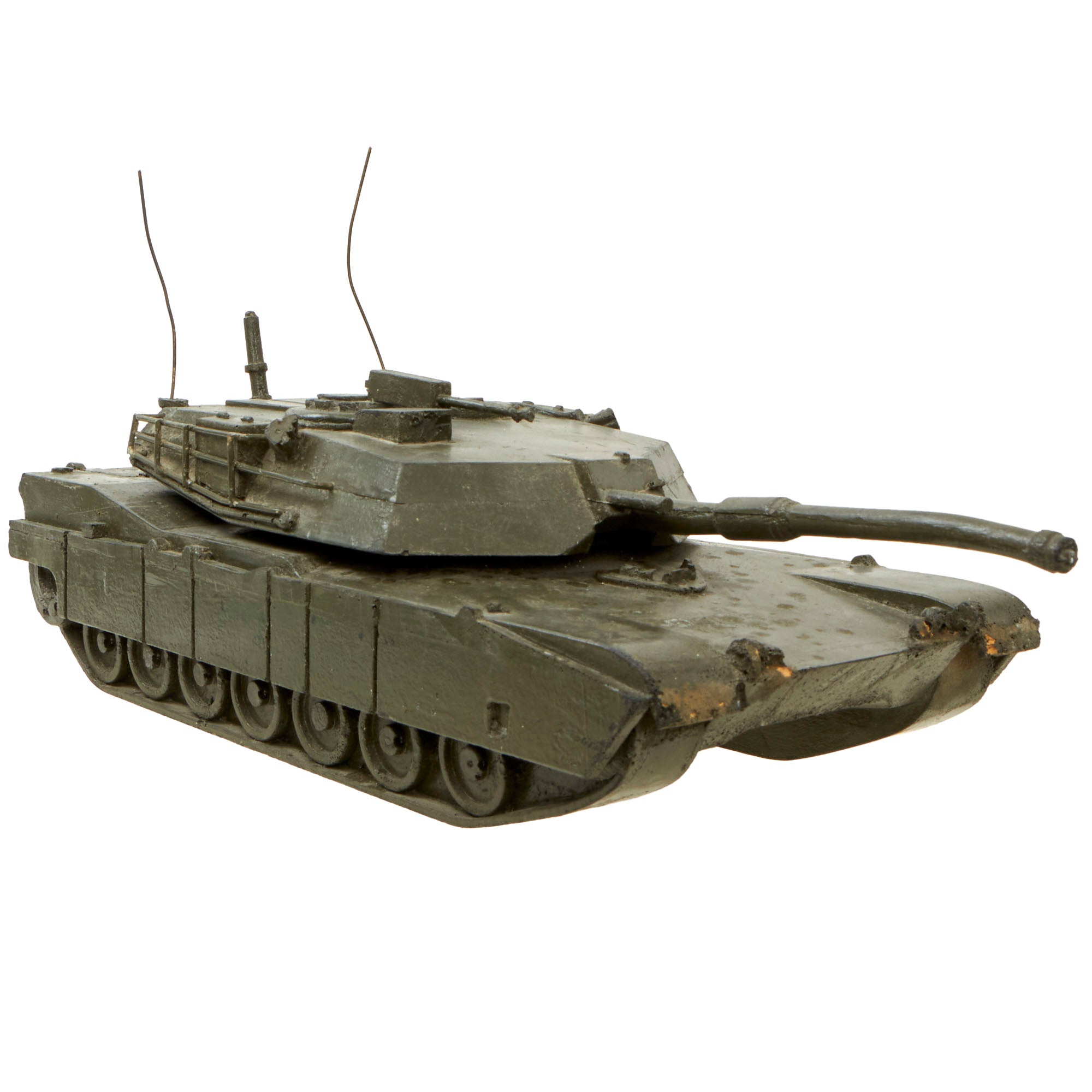 Original Item: Only One Available/ This is a nice, service used example of a resin model of the M1 Abrams Main Battle Tank. While we are uncertain as to the origins of the model, we do believe that this could very well have been used for training emplacement on Sand Tables as well as Terrain Models. A sand table uses constrained sand for modelling or educational purposes. The original version of a sand table may be the abax used by early Greek students. In the modern era, one common use for a sand table is to make terrain models for military planning and wargaming.