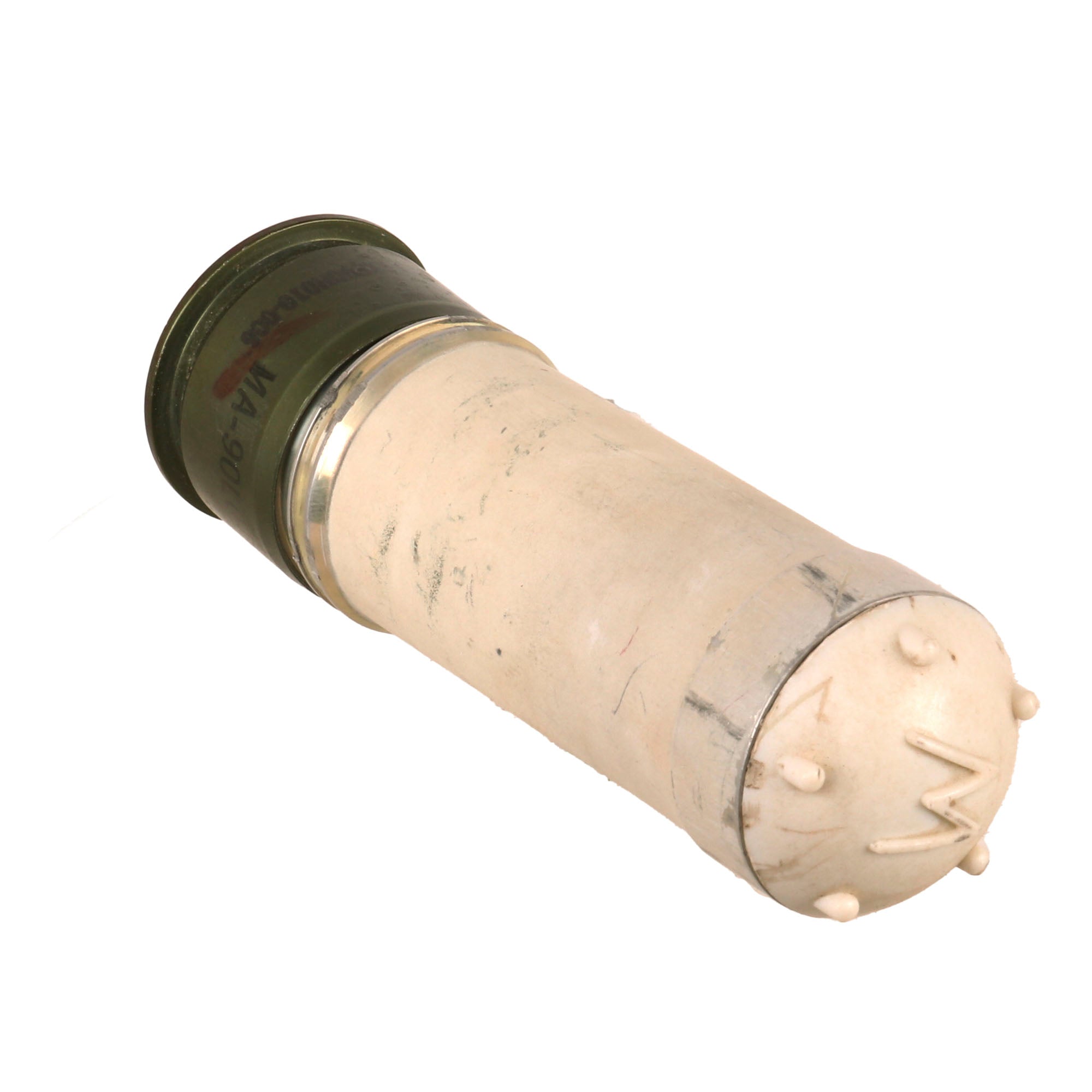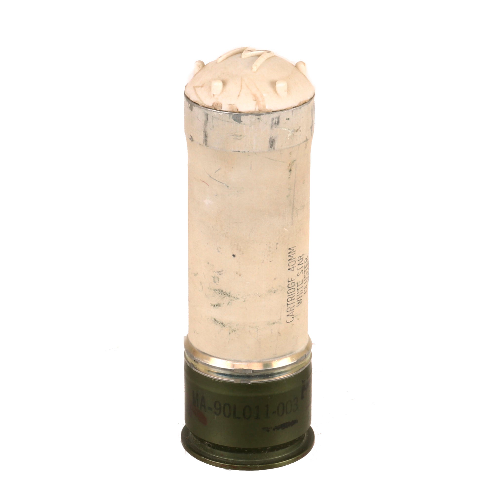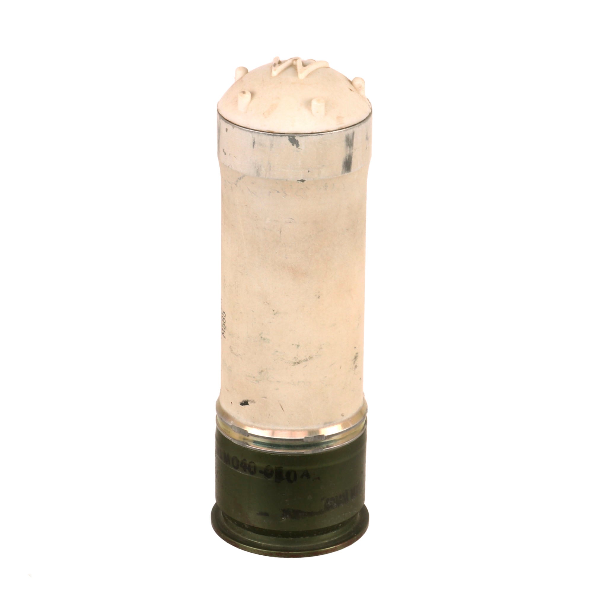 Original Item. Only One Available. These cartridges are designed for illumination and signaling with less weight and bulk and greater accuracy than comparable handheld signals. They are fired from 40mm Grenade Launchers M79 and M203 (attached to the M16 series rifle). Like all deactivated ordnance, this flare is Not Available for Export.