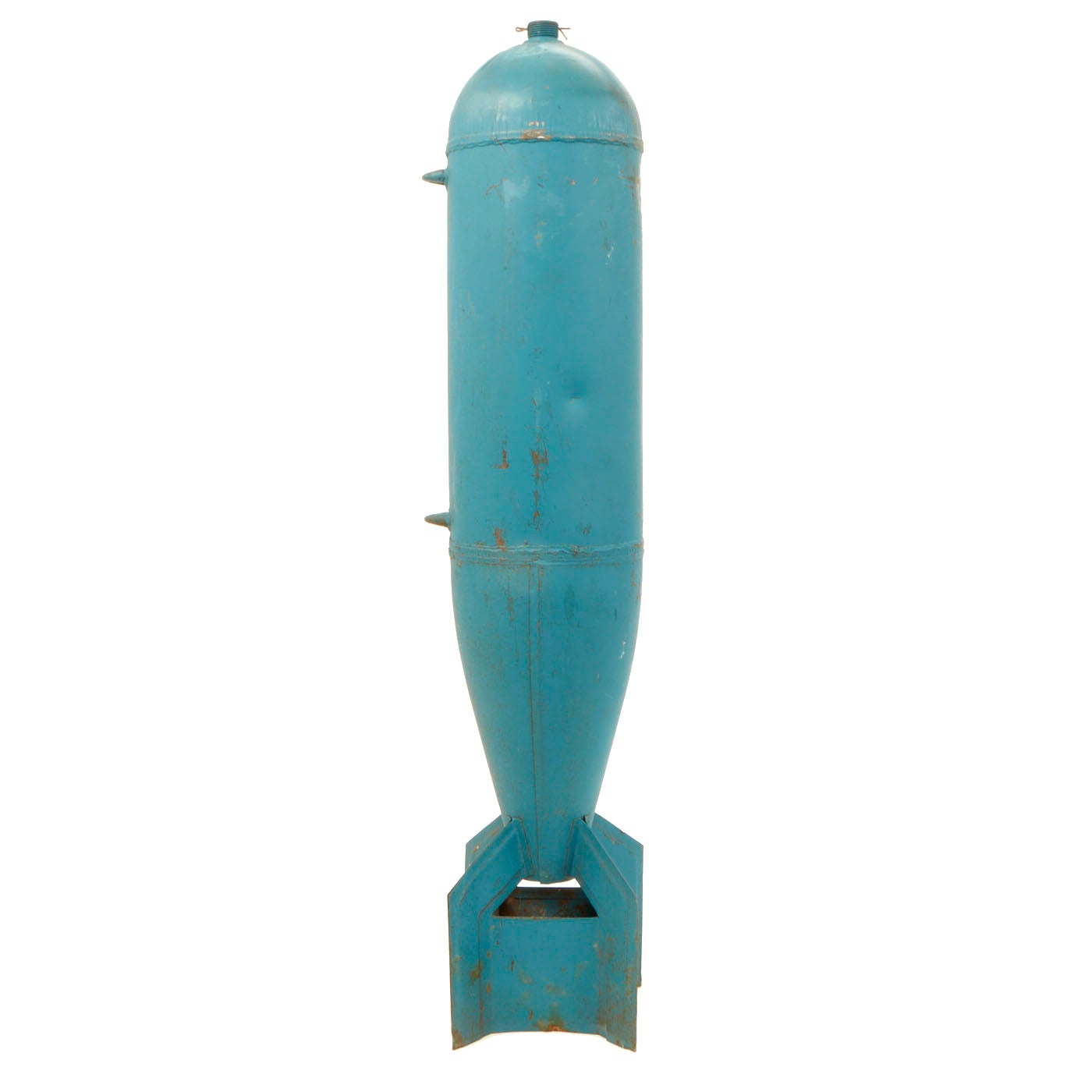 The Mk 15 is made of welded sheet metal. The empty weight is approximately 17 lbs. When filled with water (4.55 gallons) it weighs approximately 56 lbs, and 95 lbs when filled with wet sand. Under freezing conditions, a mixture of antifreeze could be used instead of water. The overall length is 41 inches with a diameter of 8 inches. It has a manufacturing date of March 1966.