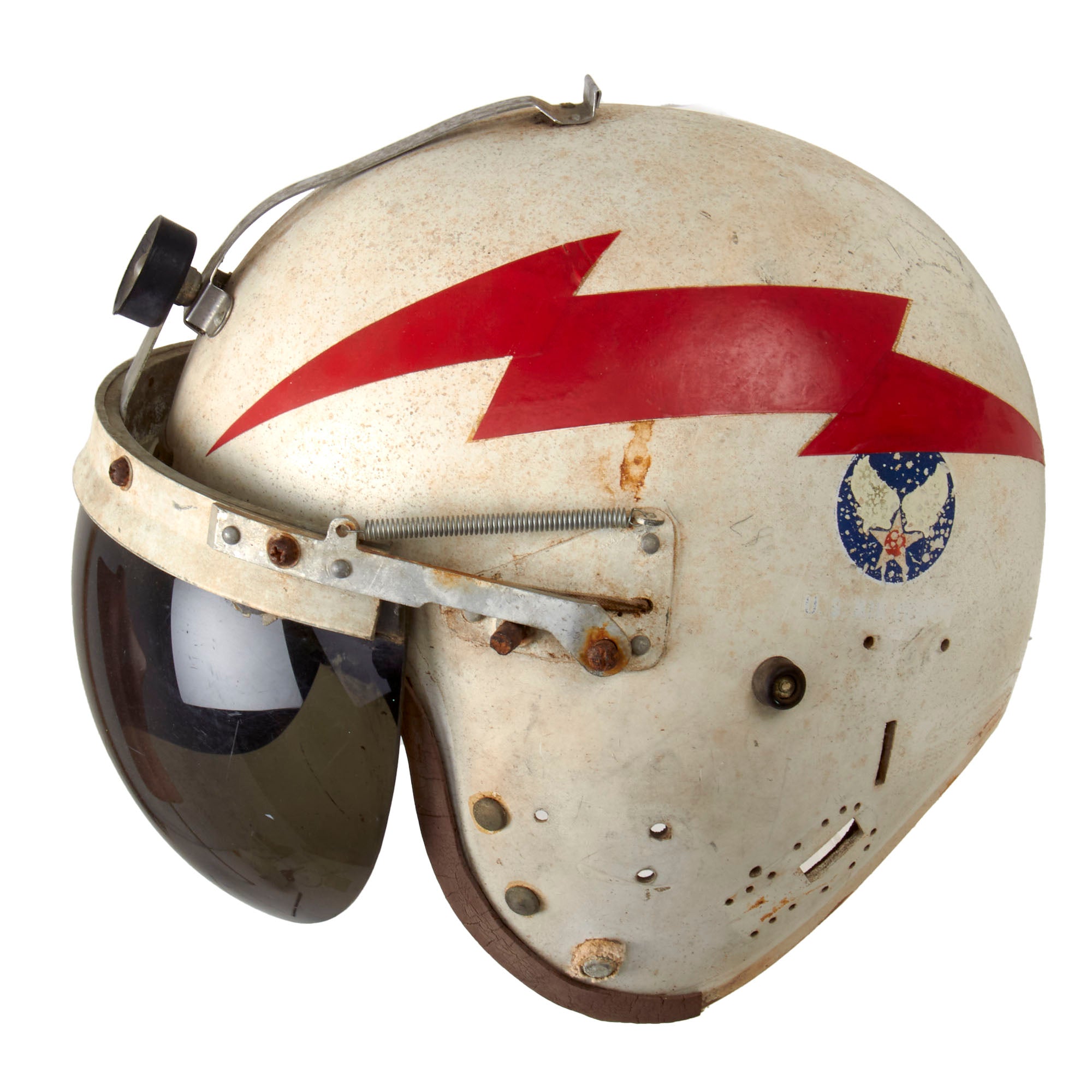 Original U.S. Cold War P-4 Flying Pilot Helmet with Tinted Visor & Thunderbolt Decals