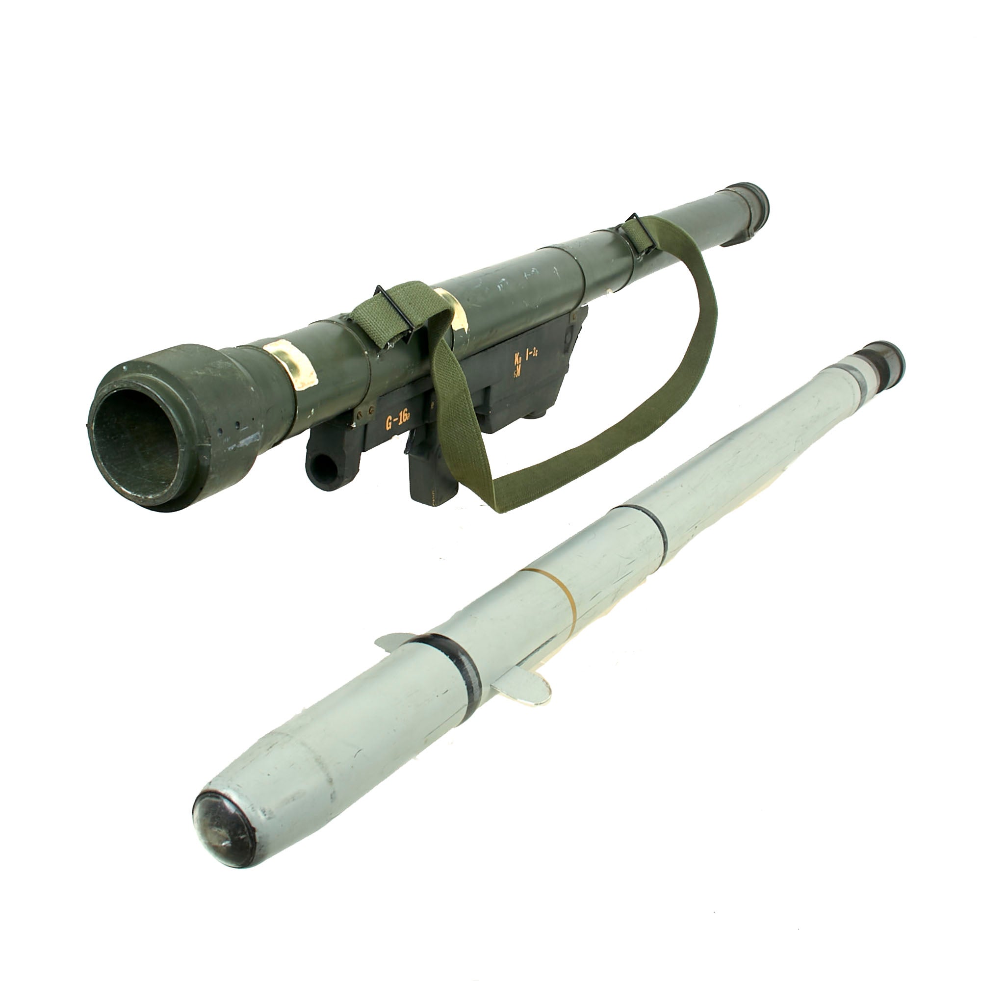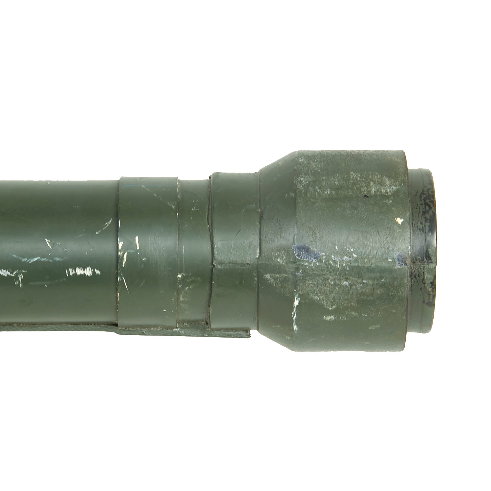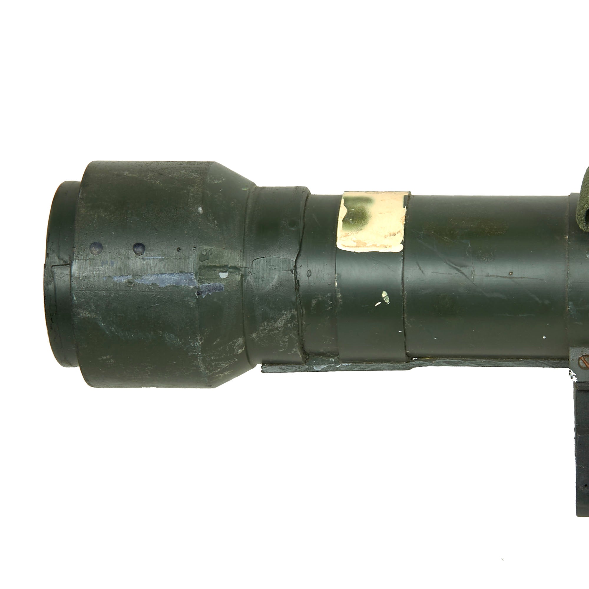 This is a tremendous example of a U.S. manufactured familiarization model of the SA-7 Grail, built for training purposes in order to teach U.S. soldiers about foreign technology. This example comes with a gorgeous dummy missile with a correct glass tip. The set appears to be made from rubber and metal, with the launcher painted entirely green.