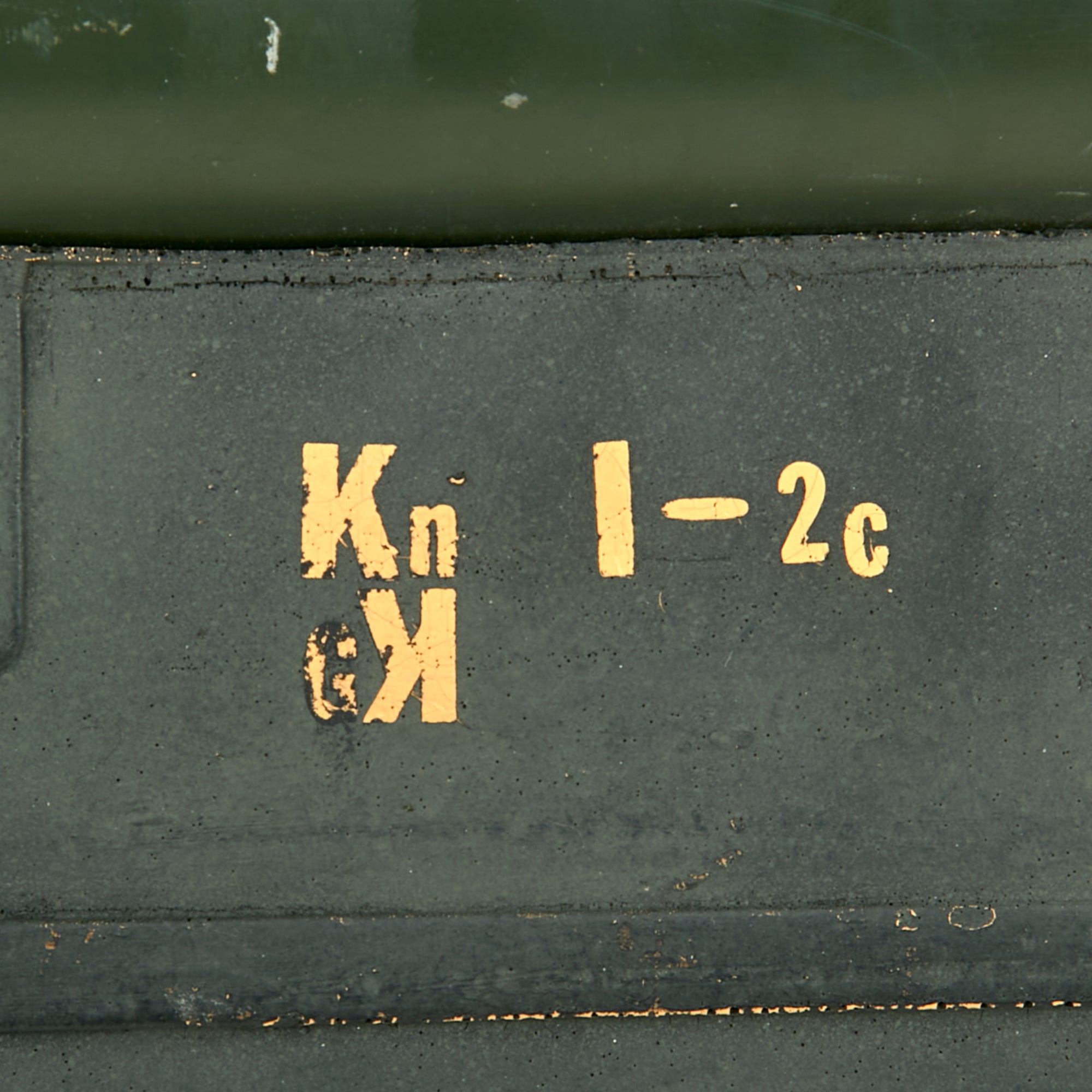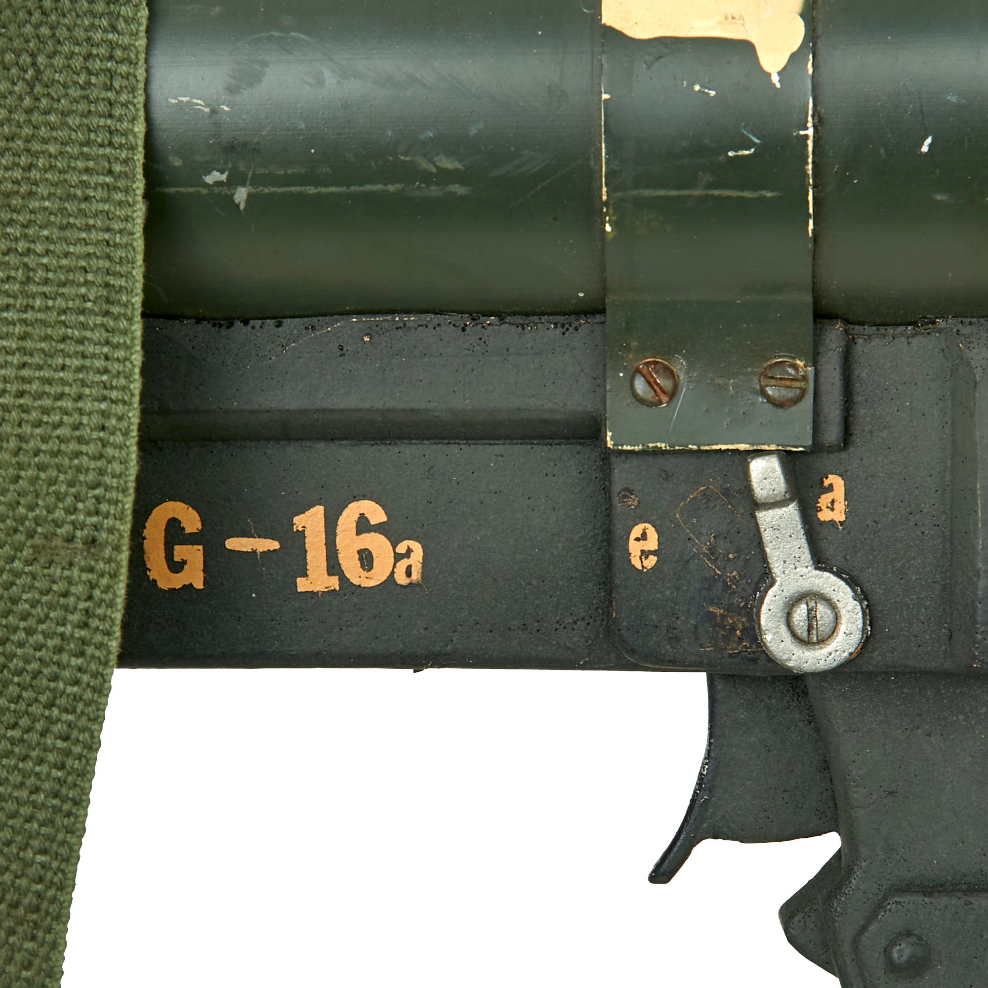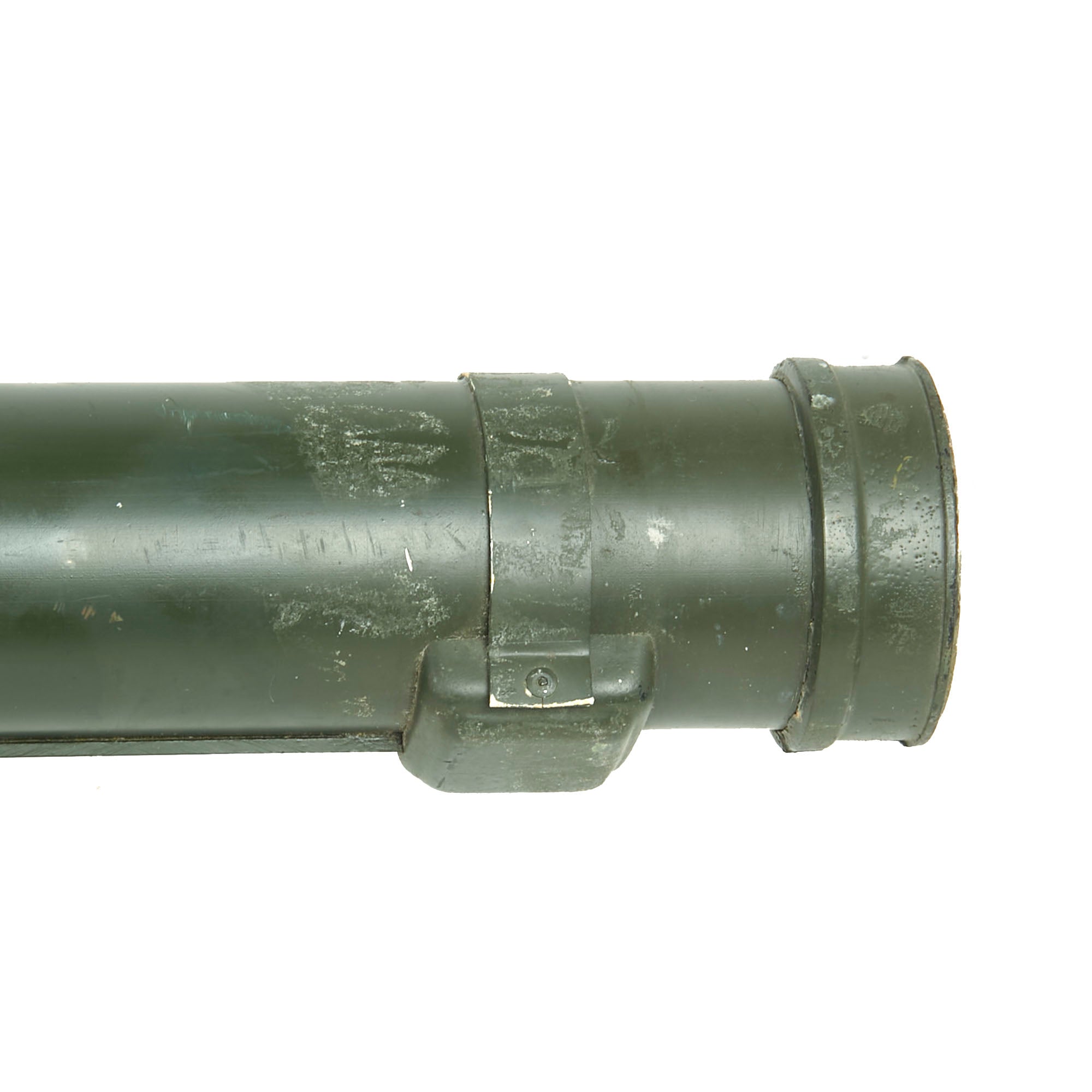 The launcher has a variety of markings including G-16a, Kn 1-2c, and C-9g. The launcher measures 57½” long and comes with an original period sling. The dummy missile has a correct rounded glass tip but is not built with a tail fin assembly, but has a piece that plugs into the bottom. The missile measures roughly 51” without the piece on the bottom.