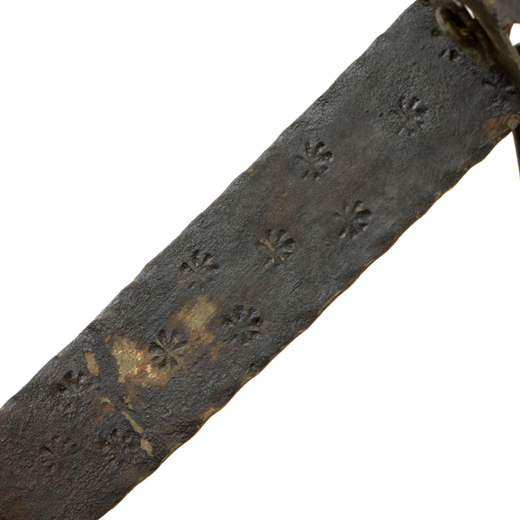 This example still retains its hanger and is in fantastic condition for its age. It is stamped several times with 8-pointed stars and is very crudely constructed, which confirms its age & period.