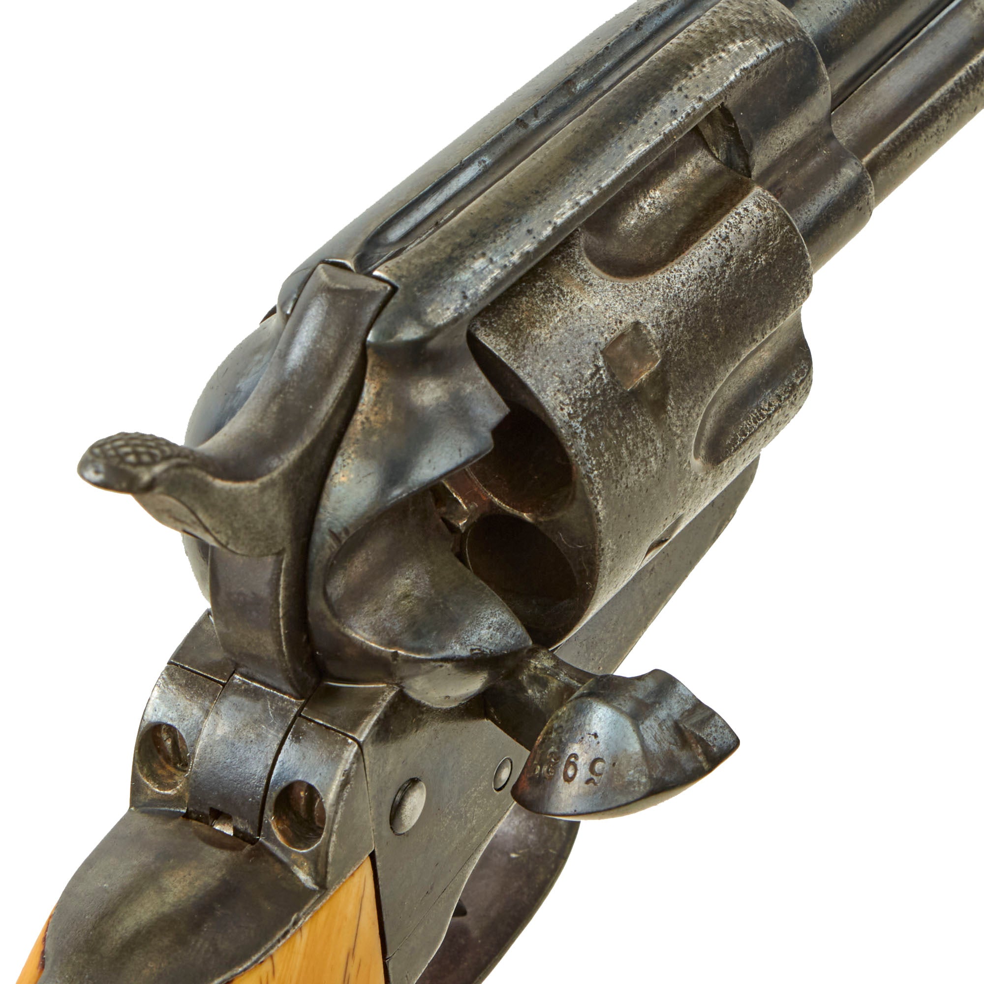 The revolver's serial number is 32625, which dates production to 1876, only a few years after the model was introduced! This is one of the earliest examples we have had, and it's a great one! It has the serial number on the frame, trigger guard, grip frame, and even shortened number 2625 on the cylinder AND underside of the barrel! In 1883, Colt would stop marking the cylinders until 1912, making this a very rare treat as a confirmed "ALL MATCHING" revolver! We have very rarely had Colt Single Action Army revolvers that were fully matching, so this is definitely a great find! There is also assembly number 5927 marked on the loading gate. It is in full working order and condition, with a great lightly patinated look, sure to delight any "Old West" Americana collector.