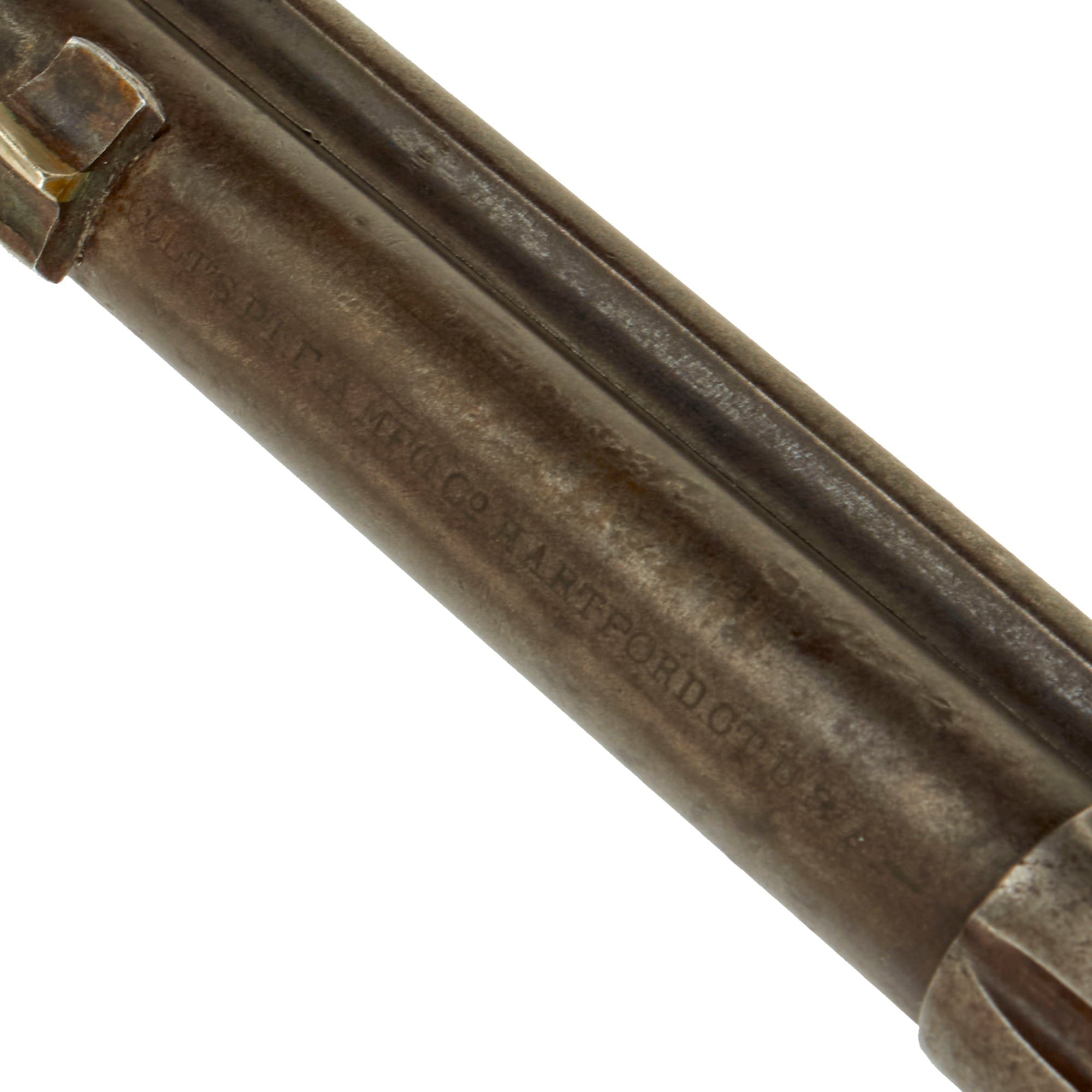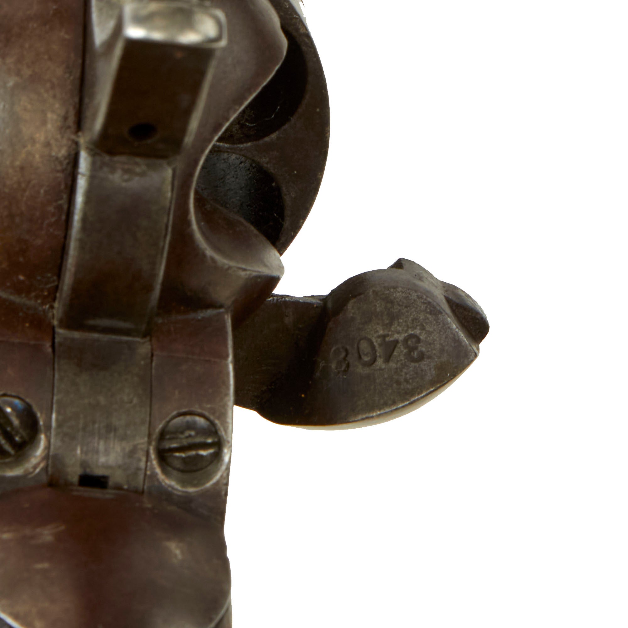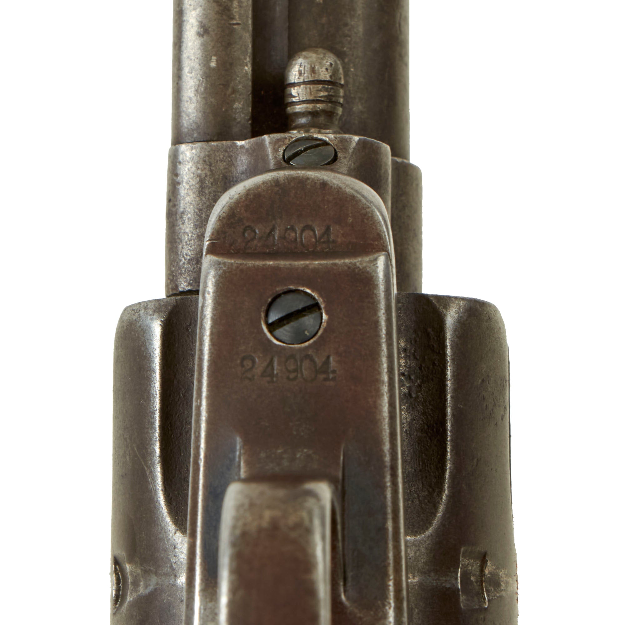The revolver's serial number is 24904, which dates production to 1876, only a few years after the model was introduced! This is one of the earliest examples we have had, and it's a great one! It has the serial number on the frame, trigger guard, grip frame, and even shortened number 4904 on the cylinder AND underside of the barrel! In 1883, Colt would stop marking the cylinders until 1912, making this a very rare treat as a confirmed "ALL MATCHING" revolver! We have very rarely had Colt Single Action Army revolvers that were fully matching, so this is definitely a great find! There is also assembly number 3408 marked on the loading gate. It is in good working order and condition, with a great patinated look, sure to delight any "Old West" Americana collector.