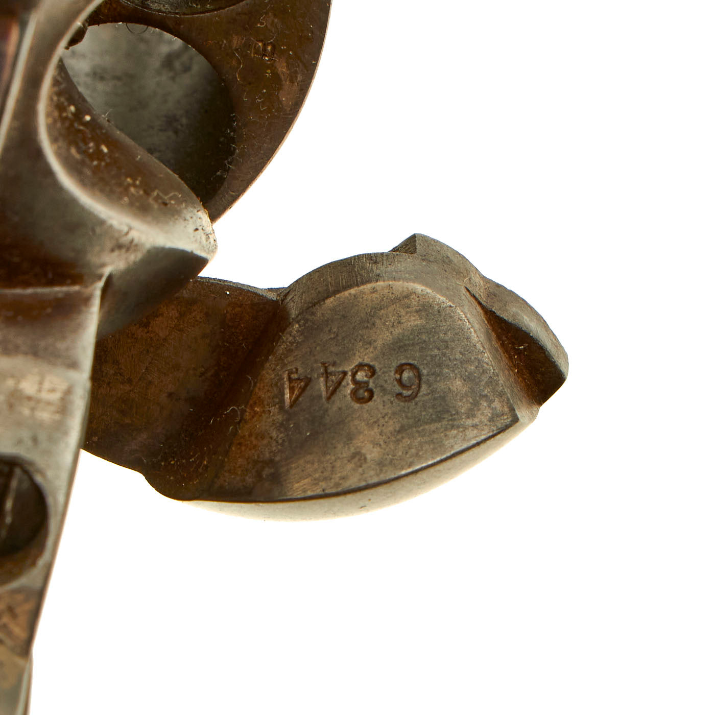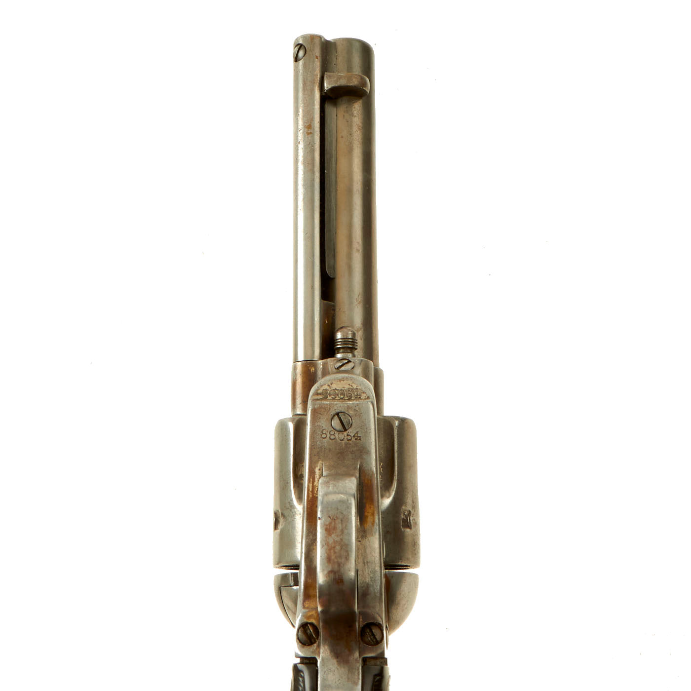 The revolver the look of a gun that was used a bit and then carefully cleaned on the exterior for years. This eventually wore the finish to its current condition. The original hard rubber grips still some of their checkering present, though the logos are definitely worn. The grips really look like they have "been there", worn by contact with the owners hand as well as a holster.