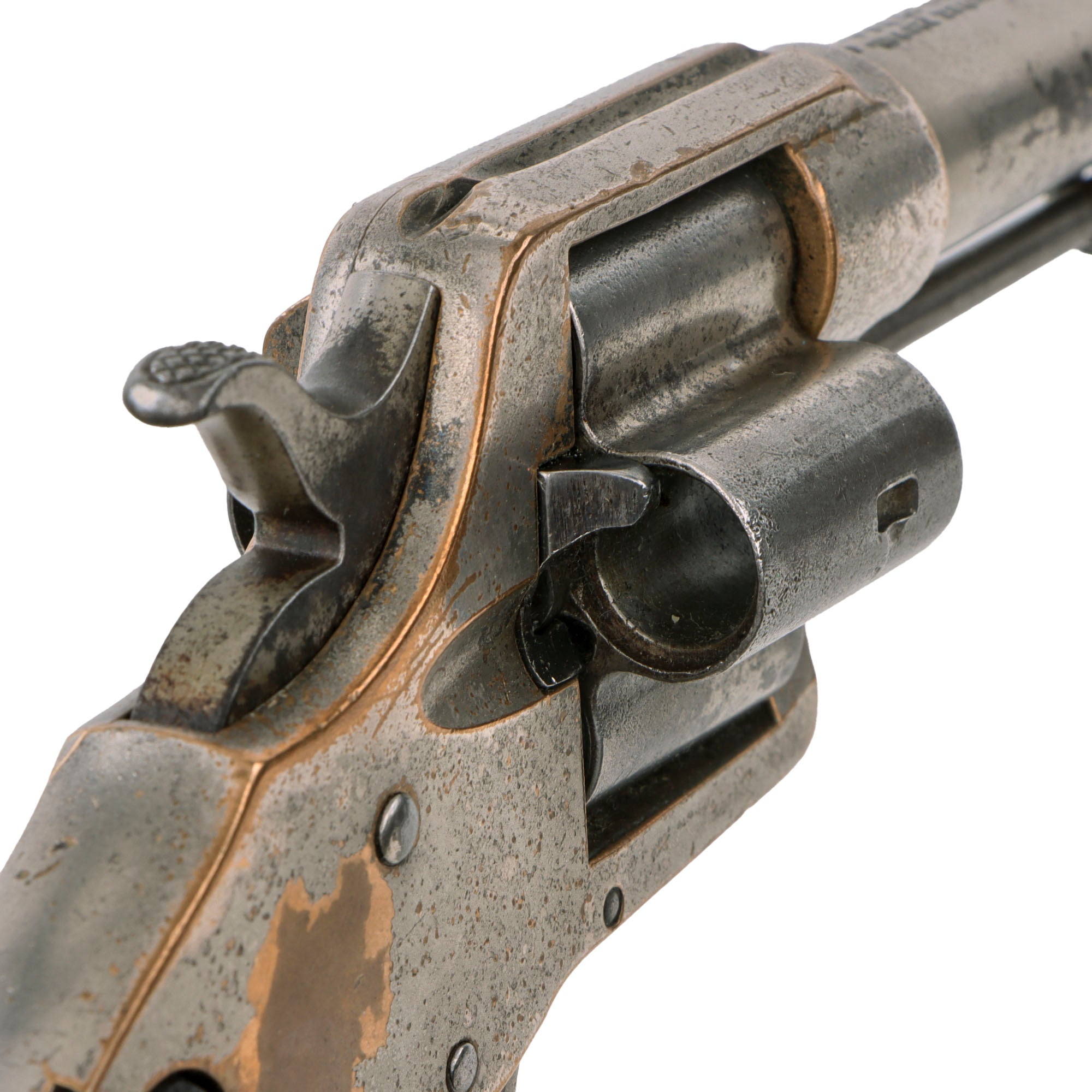 ● The Cloverleaf Model was more produced by far, and had two different variants, depending on the barrel length: 1-1/2" and 3". The 1-1/2" barrel length variant had an ejector rod contained within the center pin of the cylinder, allowing to reload while keeping the cylinder in the gun. The 3" barrel length variant of the Cloverleaf had the ejector in the same axis of the cylinder center pin and, thus, the cylinder needed to be removed from the frame when loading.