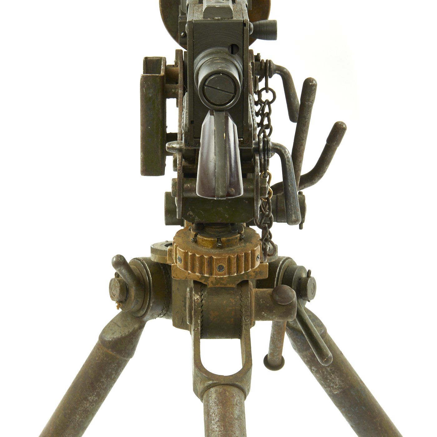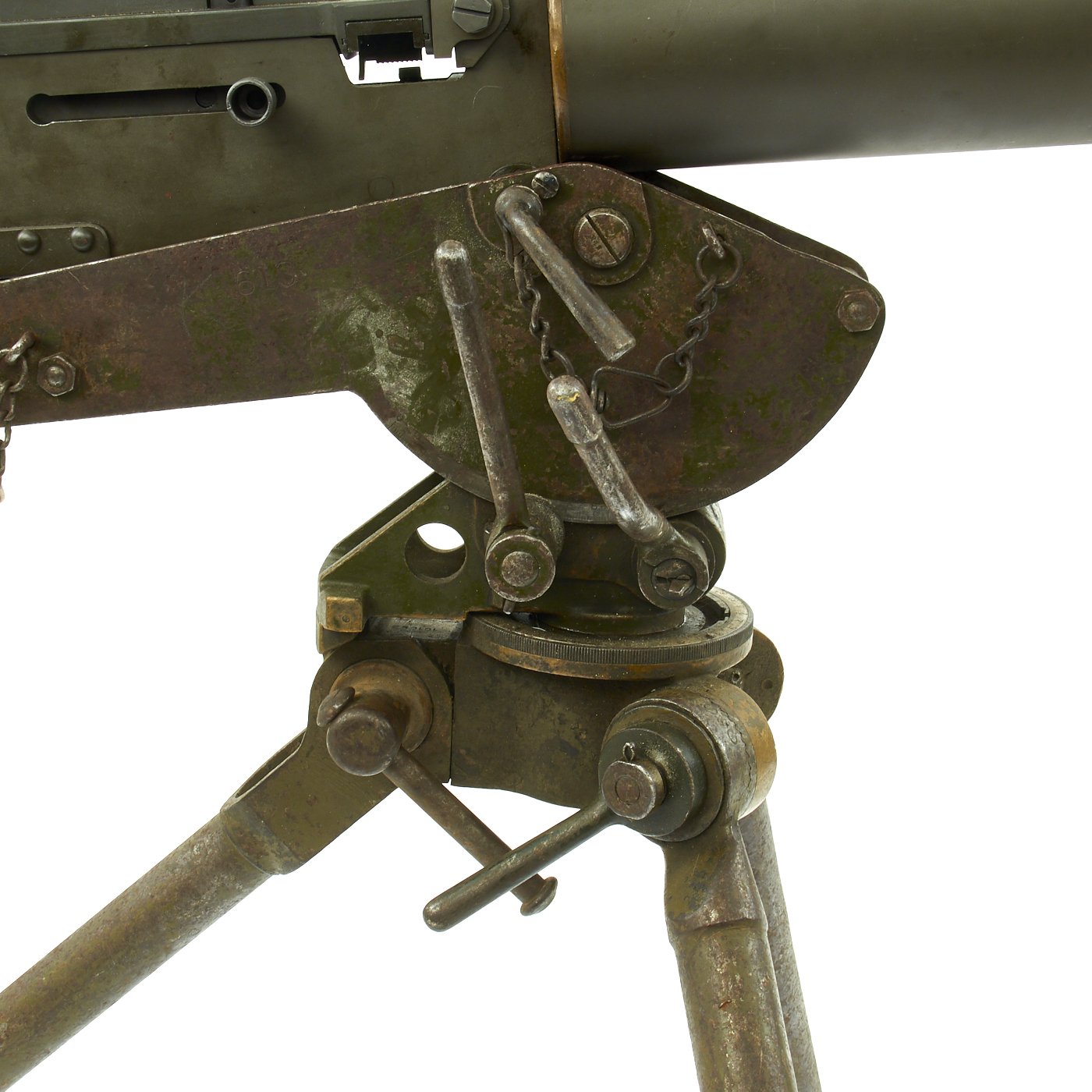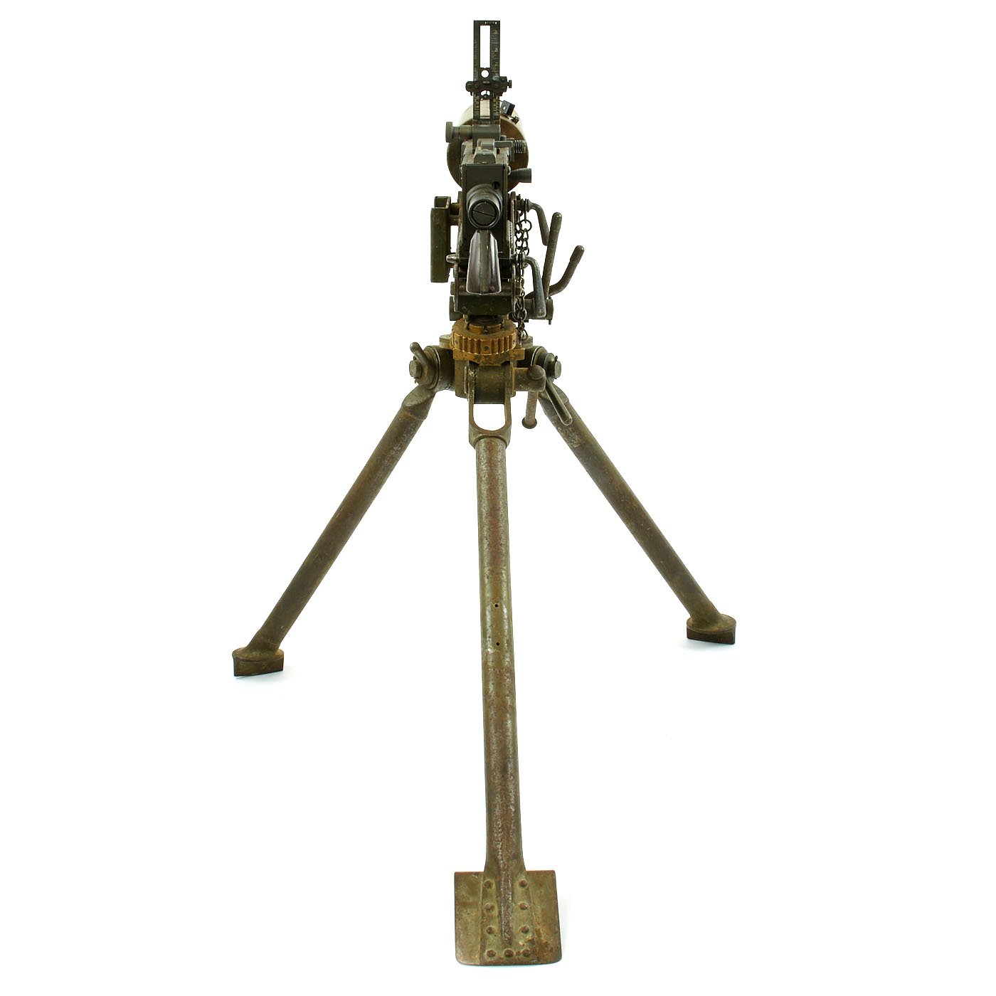 Original Items: Only One Available. Fantastic Colt Commercial Model 1928 Browning water cooled machine gun as re-manufactured on BATF approved non-firing dummy right side plate. All parts other than the right side plate and altered bolt are original issue parts. Also included is an original Colt 1928 contract tripod with fully functional locks, azimuth, legs and mounting pins. In the 40 years that IMA has been in business, this is the most complete, finest condition, original .30 caliber 1928 Browning Display Machine we have ever offered.