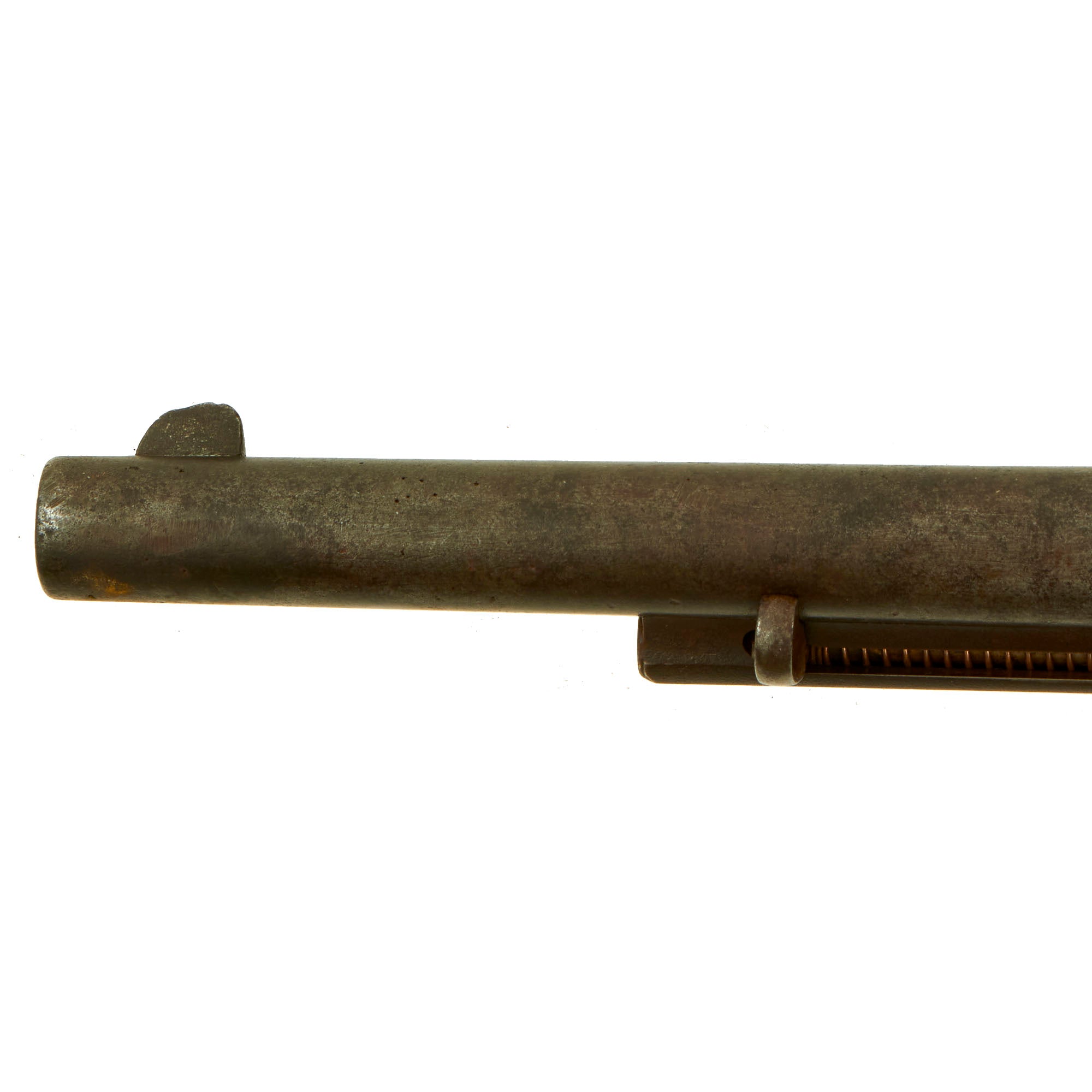 These antique guns are not sold in "live" condition, and are not tested for the the ability to feed or load any type of cartridge. They are sold as collector's items or as "wall hangers" not for use, and we make no guarantees regarding functionality aside from what is stated in the description. Any attempt at restoring an antique gun to be operational is strongly discouraged and is done so at the risk of the customer. By purchasing an antique gun from IMA you thereby release IMA, its employees and corporate officers from any and all liability associated with use of our Antique guns.