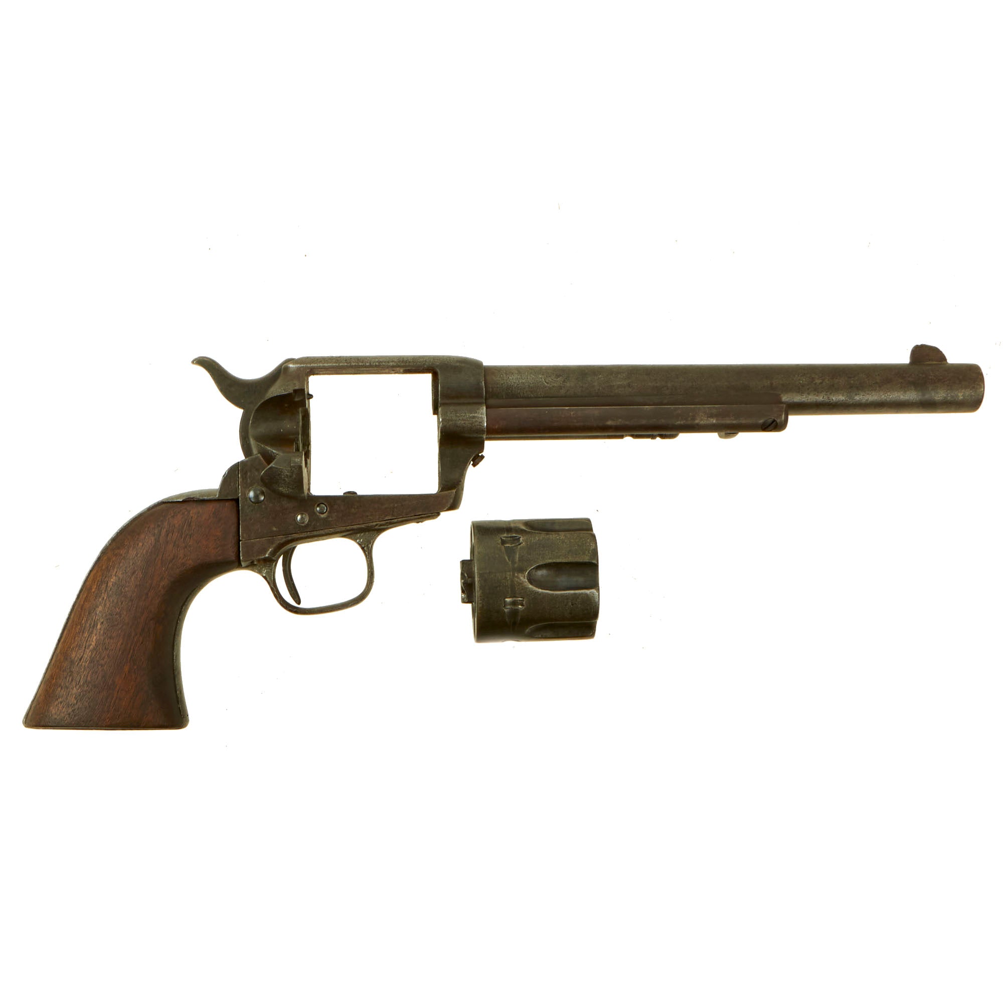 Original Items: Only One Set Available. This is it! Every young "Old West" fans dream: A real Colt Cowboy Six-shooter! This very nice Colt Frontier Six Shooter SAA (Single Action Army) Revolver has a full length 7 1/2" barrel, with a lovely worn patina on the metalwork and lovely walnut grips. This definitely looks to be an example that saw long use on the frontier, giving it an impossible to duplicate look!