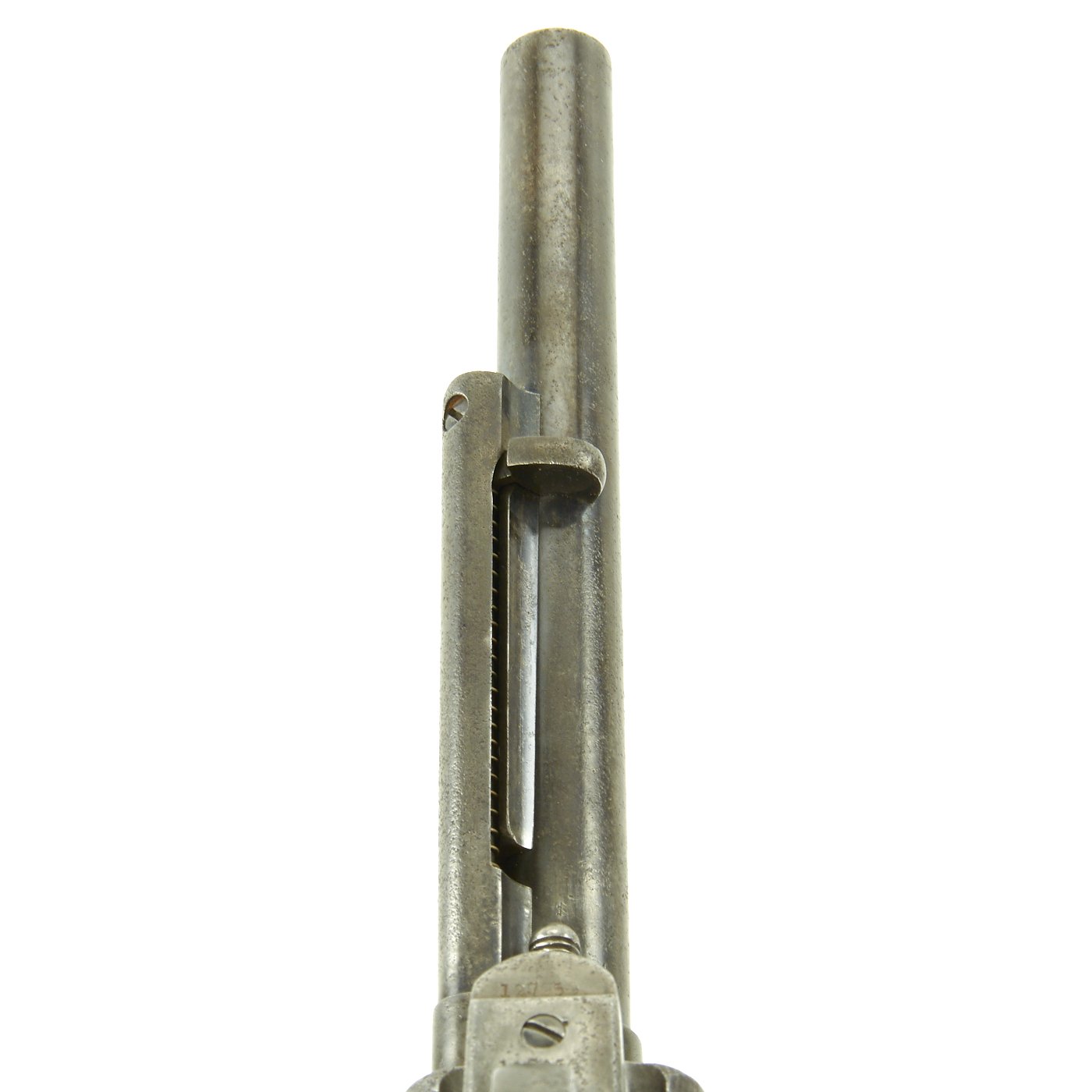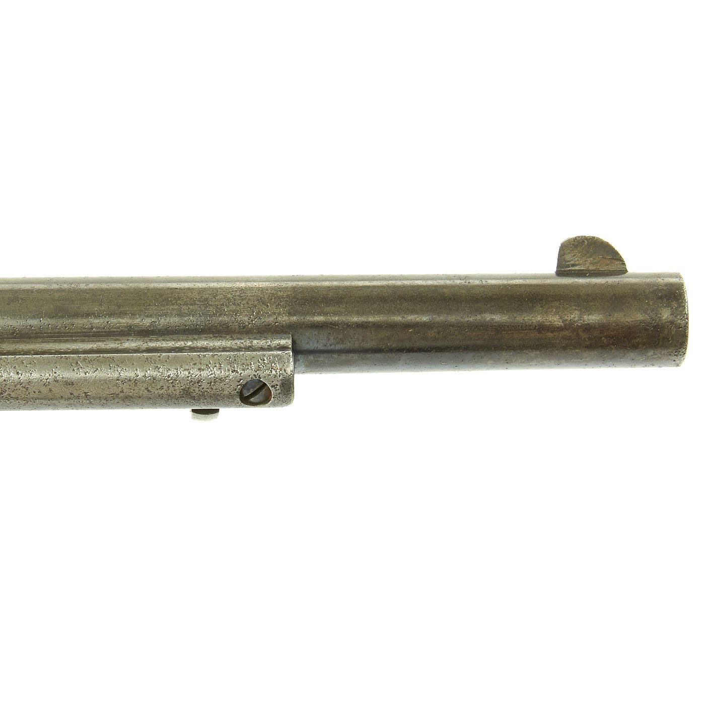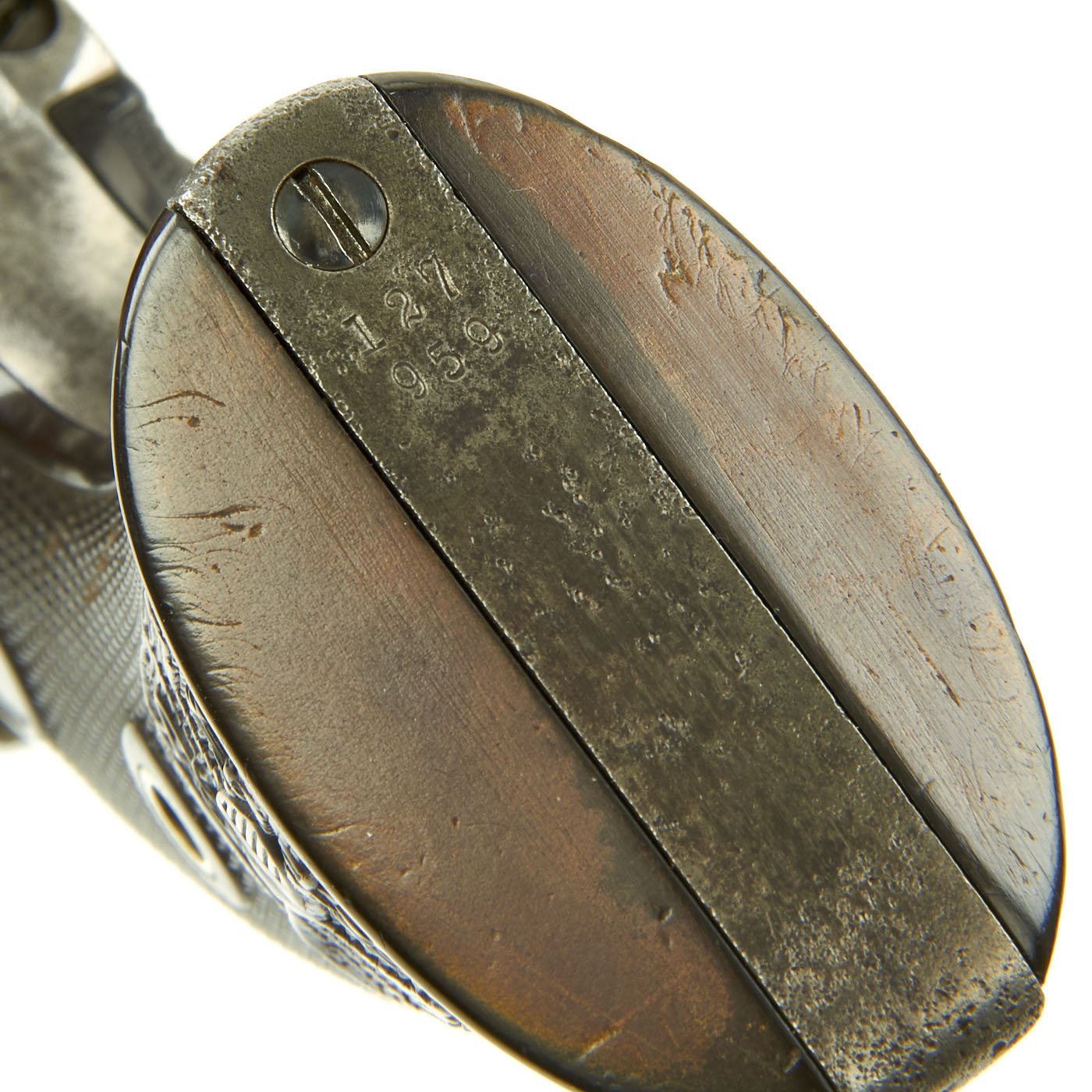 Mechanically, the action is smooth, with a good cylinder lock up, and crisp dry fire. The action has all four clicks, and we have not noticed any of the usual finicky behavior of old revolvers. Really a great action on this example. The ejector door swings open easily, and the ejector itself works flawlessly. The bore is crisp, with clear lands and grooves, and a mostly bright finish. This has the look of a well cared for gun that was on the frontier for years, but was not fired much at all.