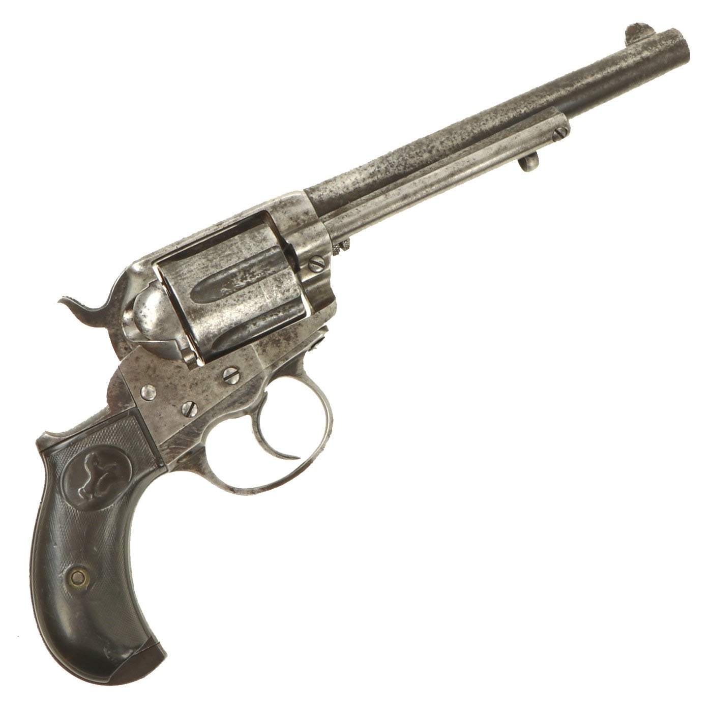 Original Item: Only One Available The romance around Colt "Cowboy" Revolvers never ceases to amaze us. This is a fine example of the Model 1877 "Thunderer" Double Action .41 Caliber Revolver. This is the same model that was carried by "Billy the Kid", though it is from a few years after his era. It is marked on the bottom of the grip, frame, and trigger guard with serial number 48374, indicating it was made in 1884. It also has assembly number 252 stamped on the loading gate, and is a nice example of this type. It has a long 6 inch barrel, complete with a spent cartridge ejector rod.