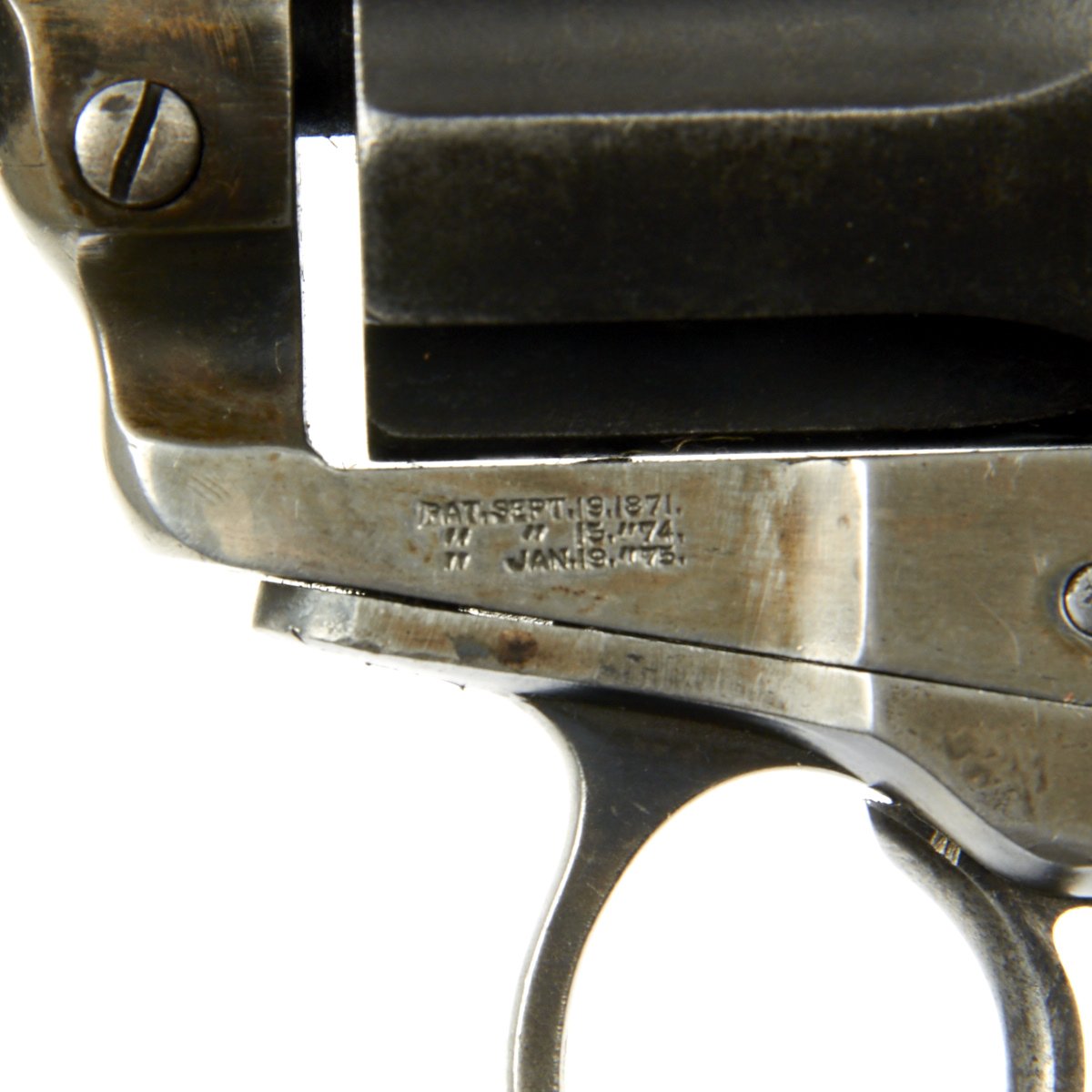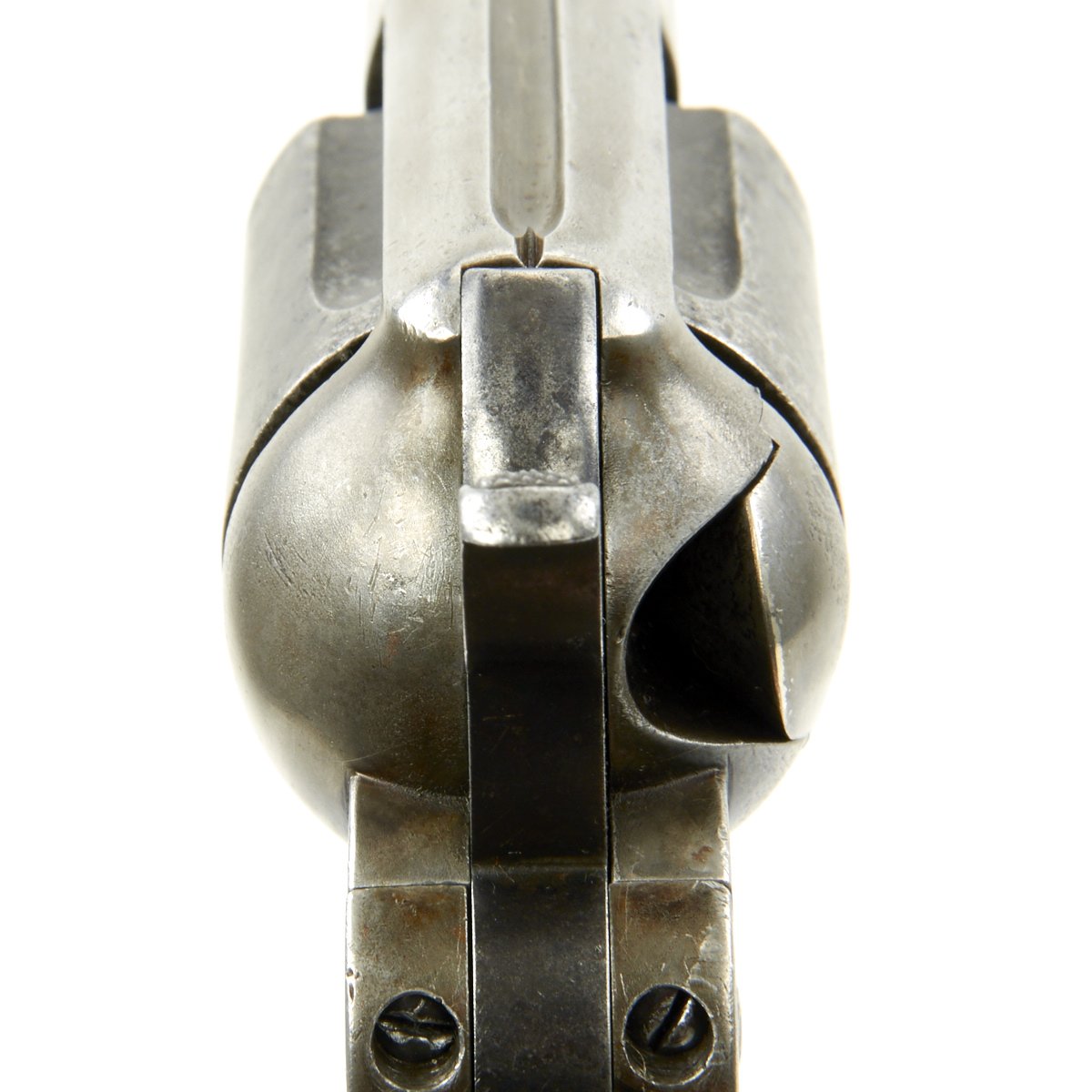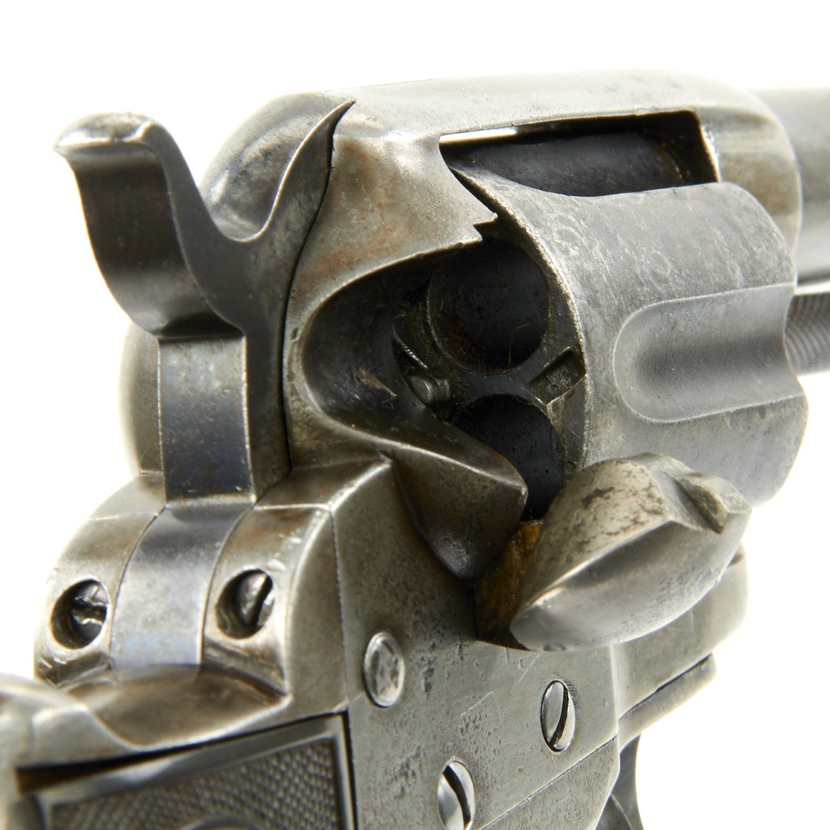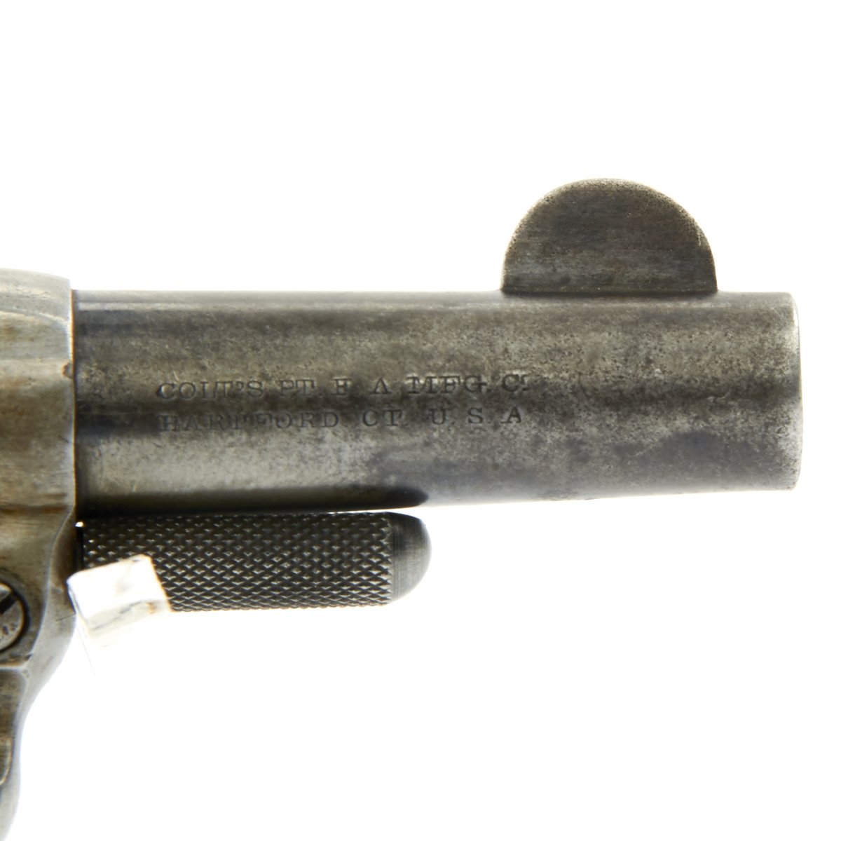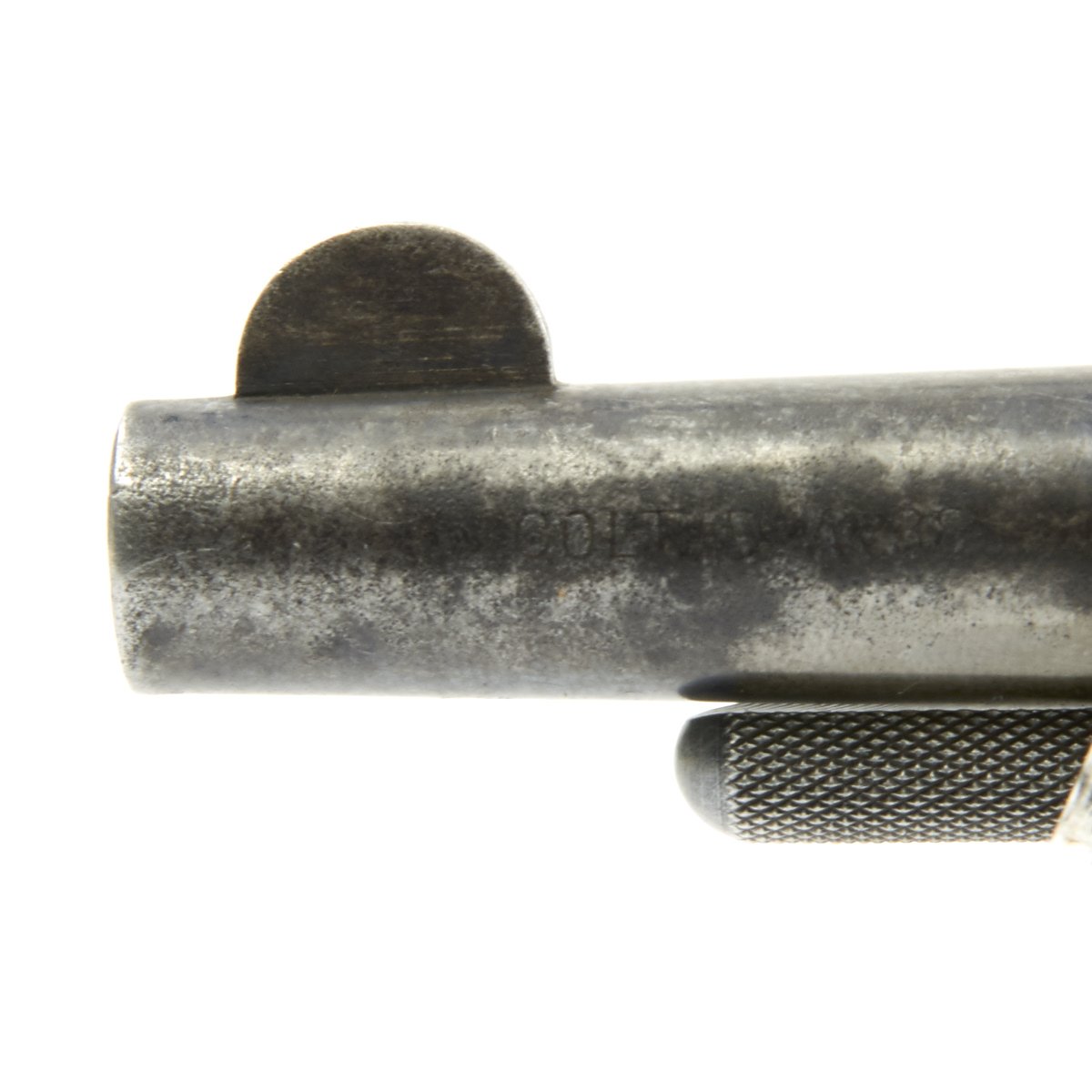 Original Item: Only One Available The romance around Colt "Cowboy" Revolvers never ceases to amaze us. This is a fine example of the Model 1877 "Lightning" Double Action .38 Caliber Revolver. It is marked on the bottom of the grip, frame, and trigger guard (faded) with serial number 35990, indicating it was made in 1882. The M1877 was offered from the factory in two basic finishes: nickel-plated or a case-hardened frame with a blue barrel and cylinder. The revolver was available in barrel lengths from 2.5" to 7.5" and was available with or without the ejector rod and housing. The shorter barreled versions without the ejector rod were marketed as "shopkeeper's specials". This version is marked on the barrel with: