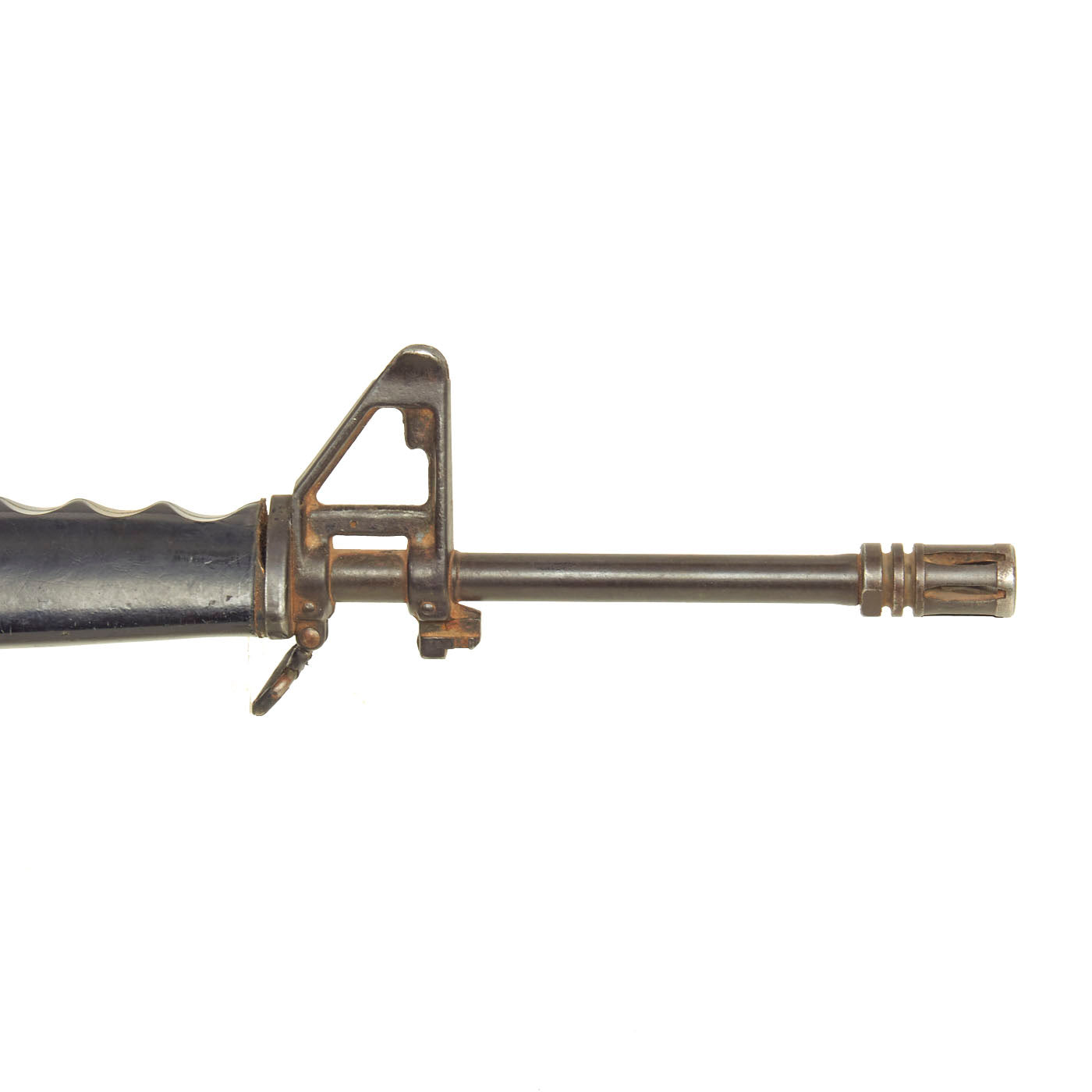 Original Item: Only One Available. Colt M16A1 Military issue non-functional RUBBER DUCK training and parade rifle. Features genuine M16 metal barrel, muzzle brake, front sight, sling swivels, and other components, all coated in rubber with resin construction.