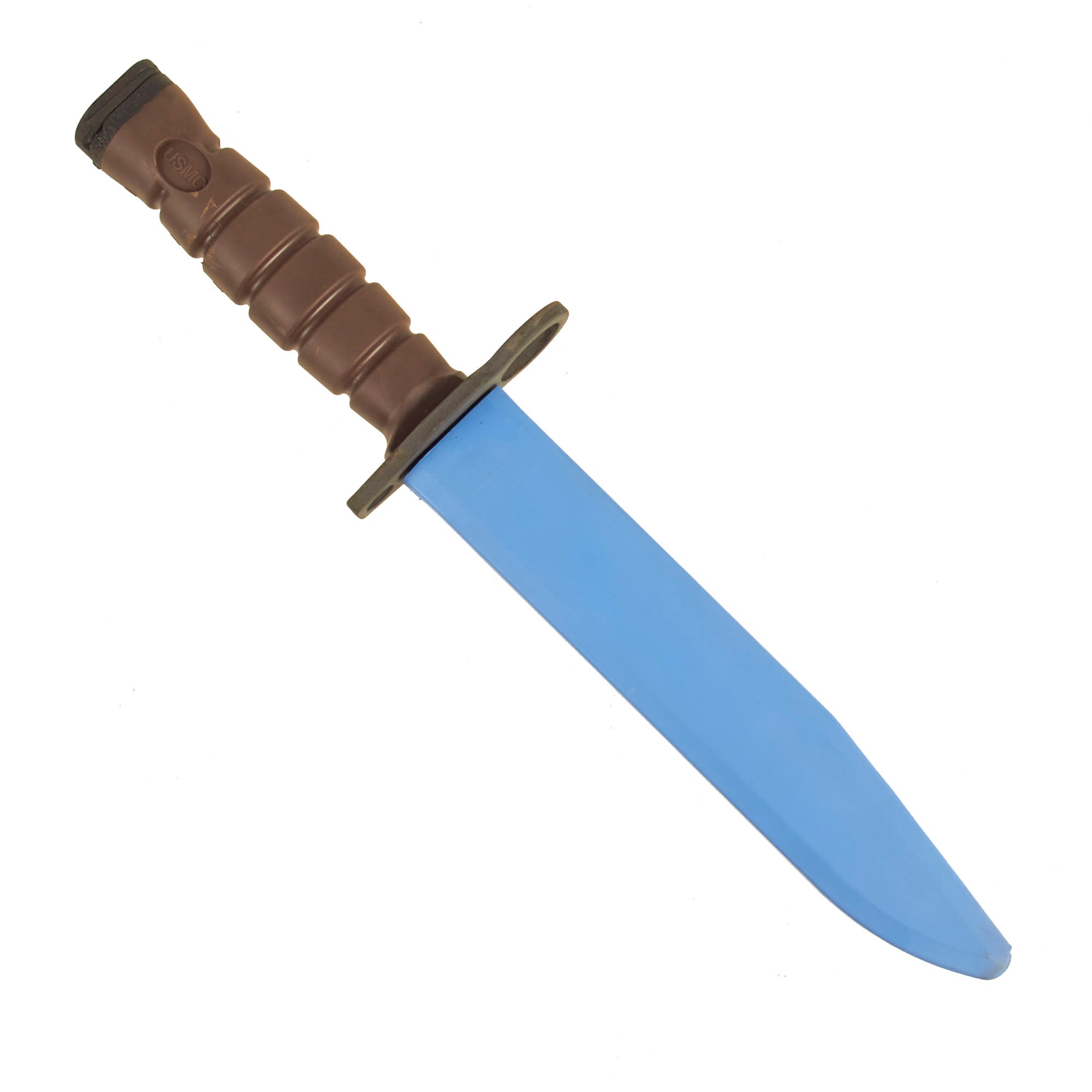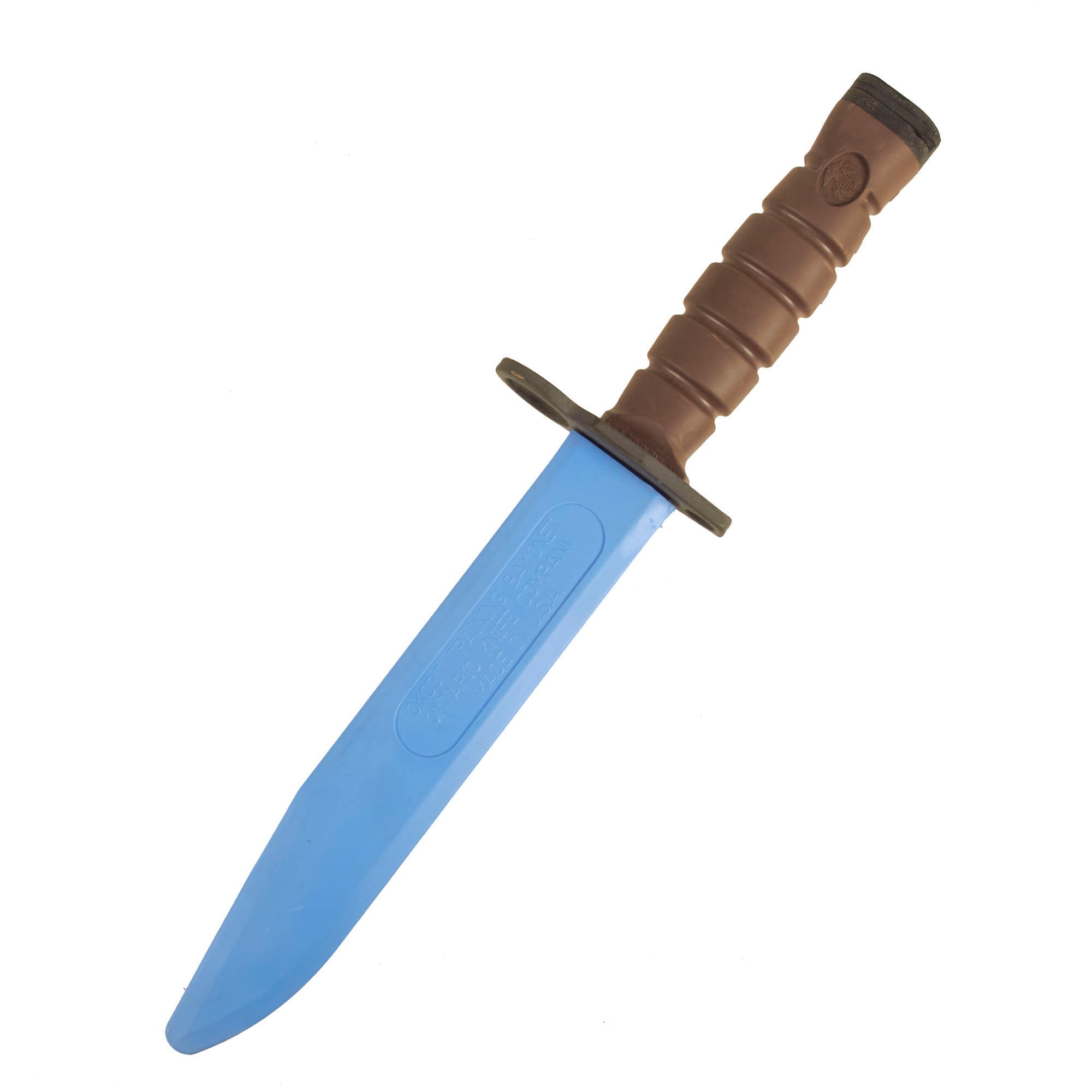 Also fixed to the rifle is actually an incorrect model for this rifle and is a modern USMC OKC3T training bayonet which does not fully attach to the bayonet lug. The OKC-3S is a bayonet developed by the United States Marine Corps to replace the M7 bayonet and M9 bayonet as its service bayonet for the M16 family of rifles and M4 series carbine. This multipurpose bayonet provides greater durability than the M7 and also functions as a fighting knife.