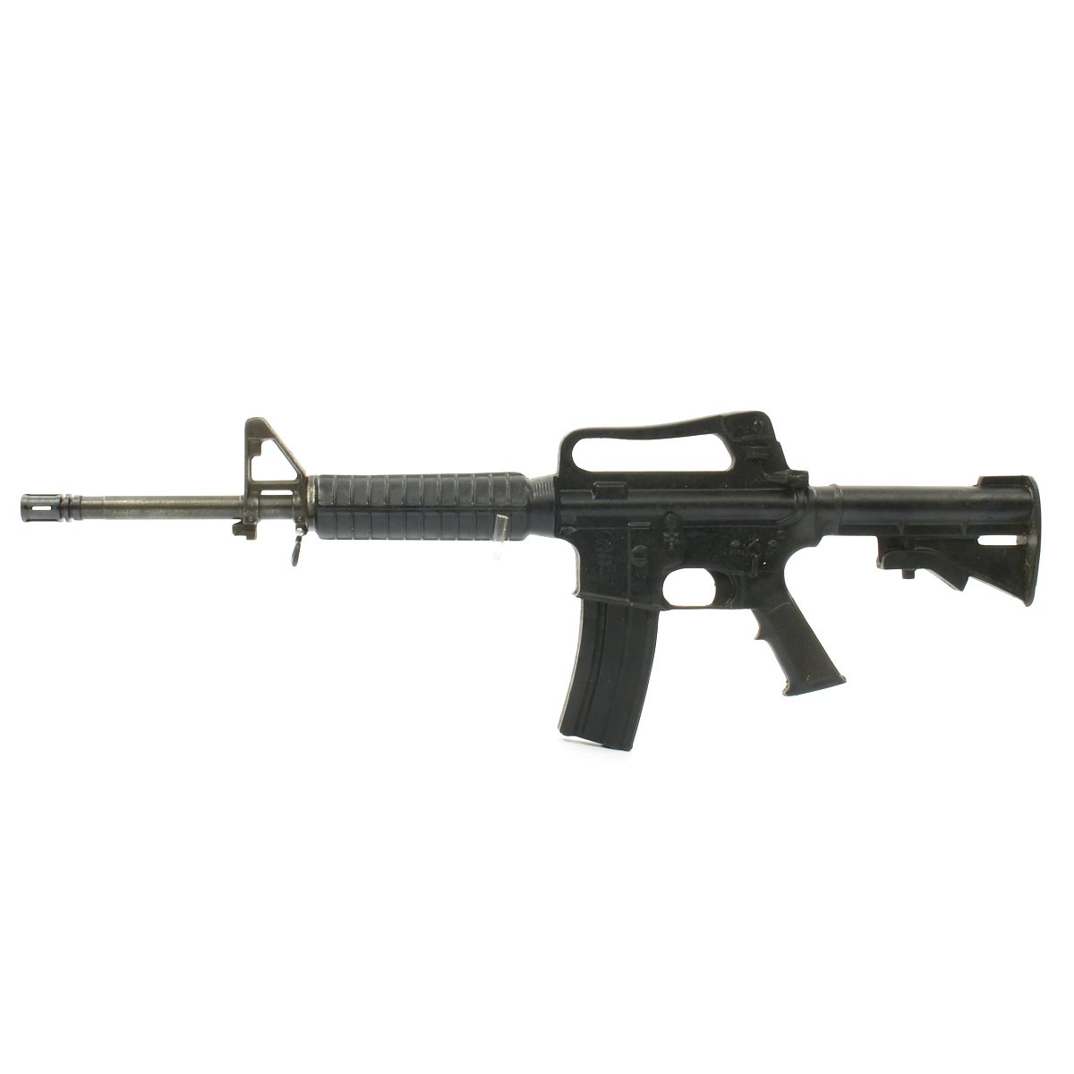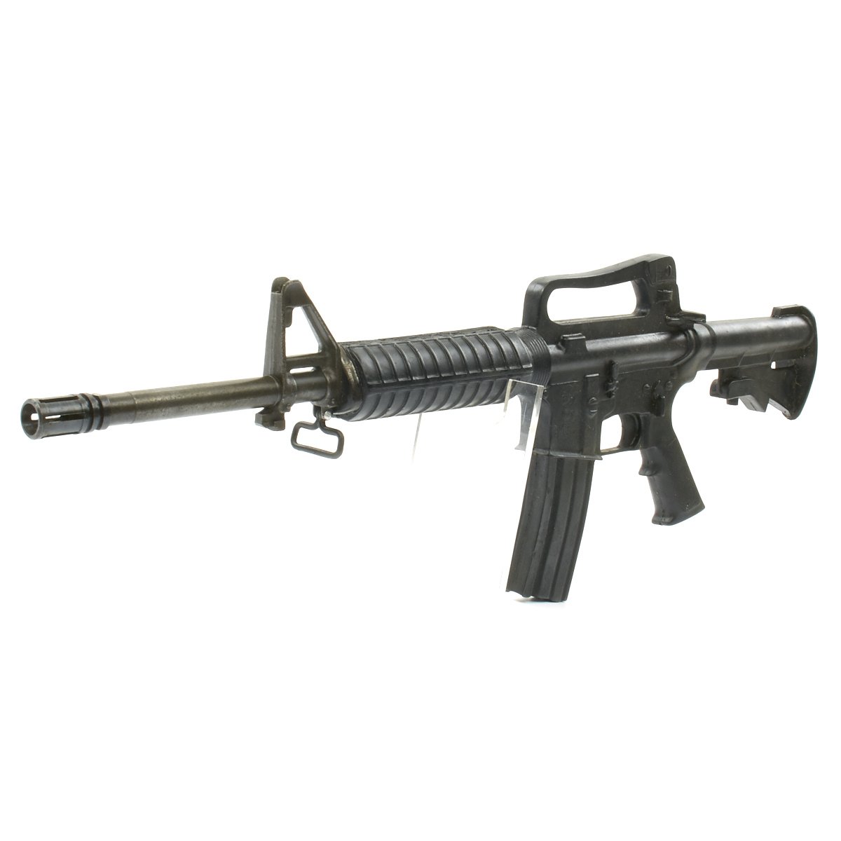 Original Item: Only One Available. Colt M16A2 Military issue non-functional RUBBER DUCK training and parade carbine. Features genuine M16A2 carbine metal barrel, front sight, sling swivels, and other components, all coated in hard rubber with resin construction. This is a carbine version that is 30 inches long, compared to the 39.5 inches of the rifle, with an M4 carbine style stock.
