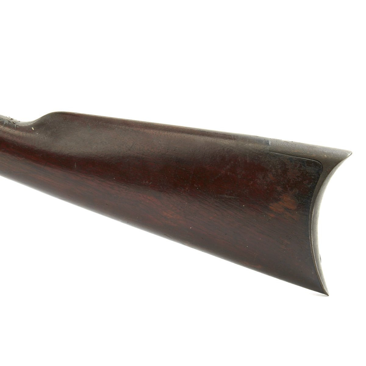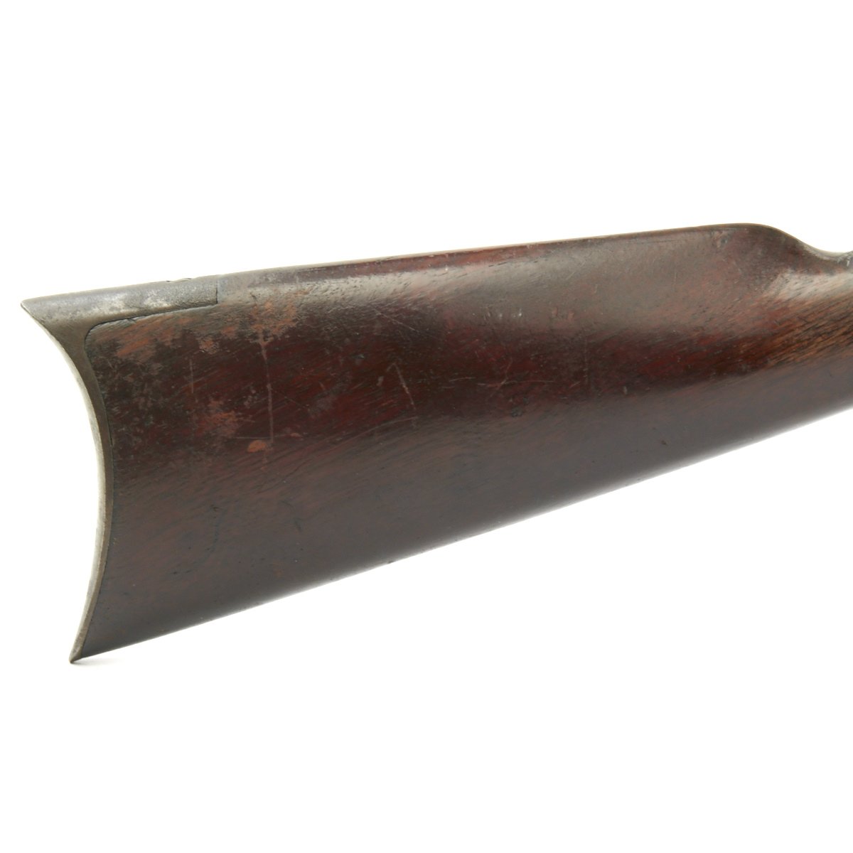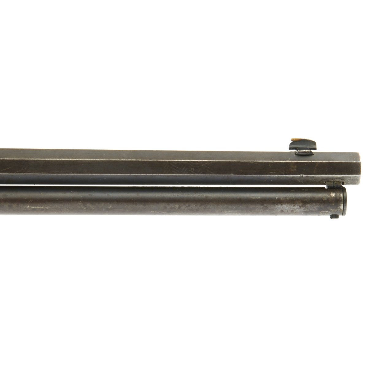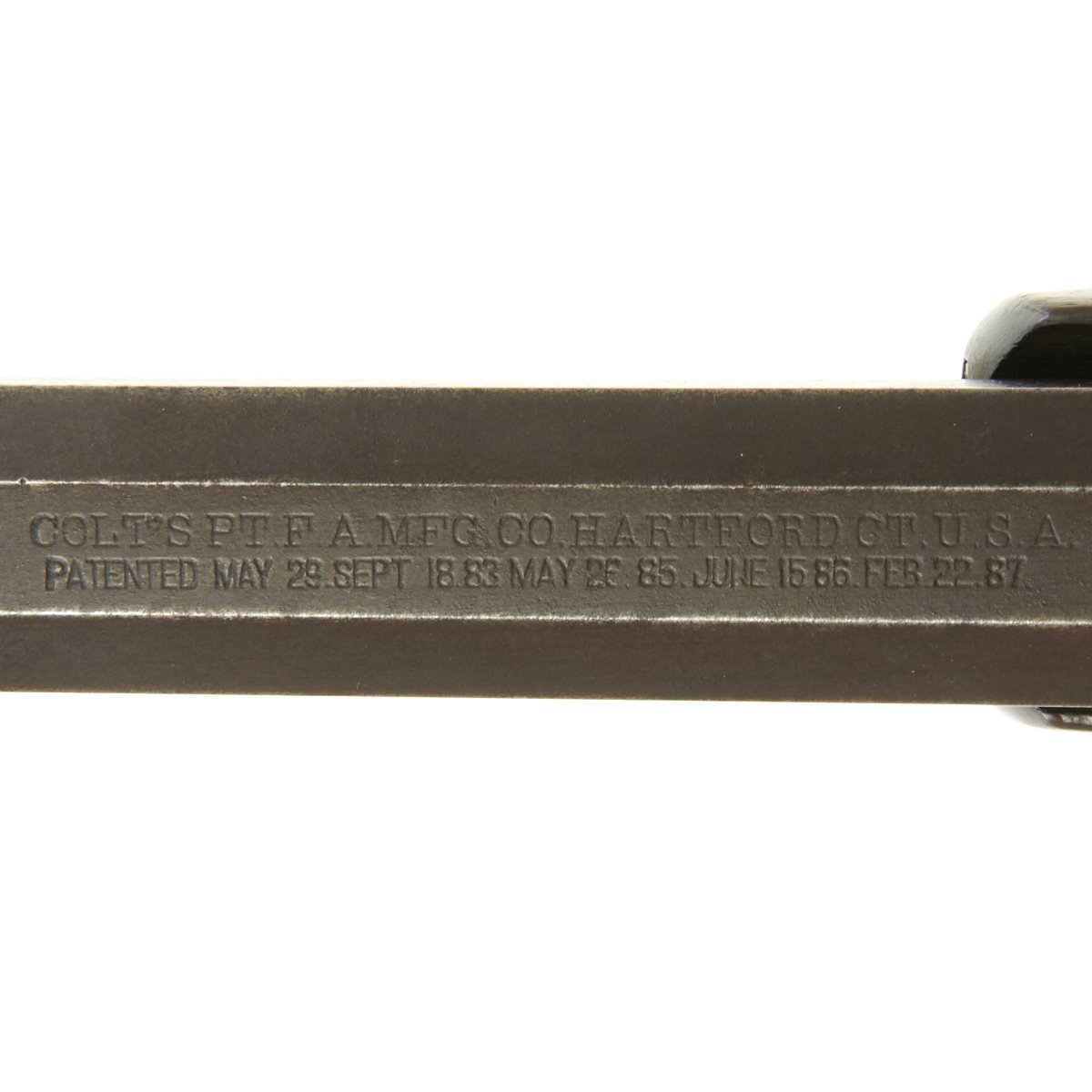 Original Item: Only One Available.This is a most attractive Colt Lightning Magazine Slide-Action Rifle, with a lovely Antique glow around it. The serial number 82813 stamped on the trigger guard indicates manufacture in 1898. The 26" Octagonal barrel is marked .38 Cal. above the chamber, indicating that this rifle is in .38-40 Winchester, a popular caliber of the time. It features a nice "Semi-Buckhorn" rear sight, with a replacement front sight by MARBLE.