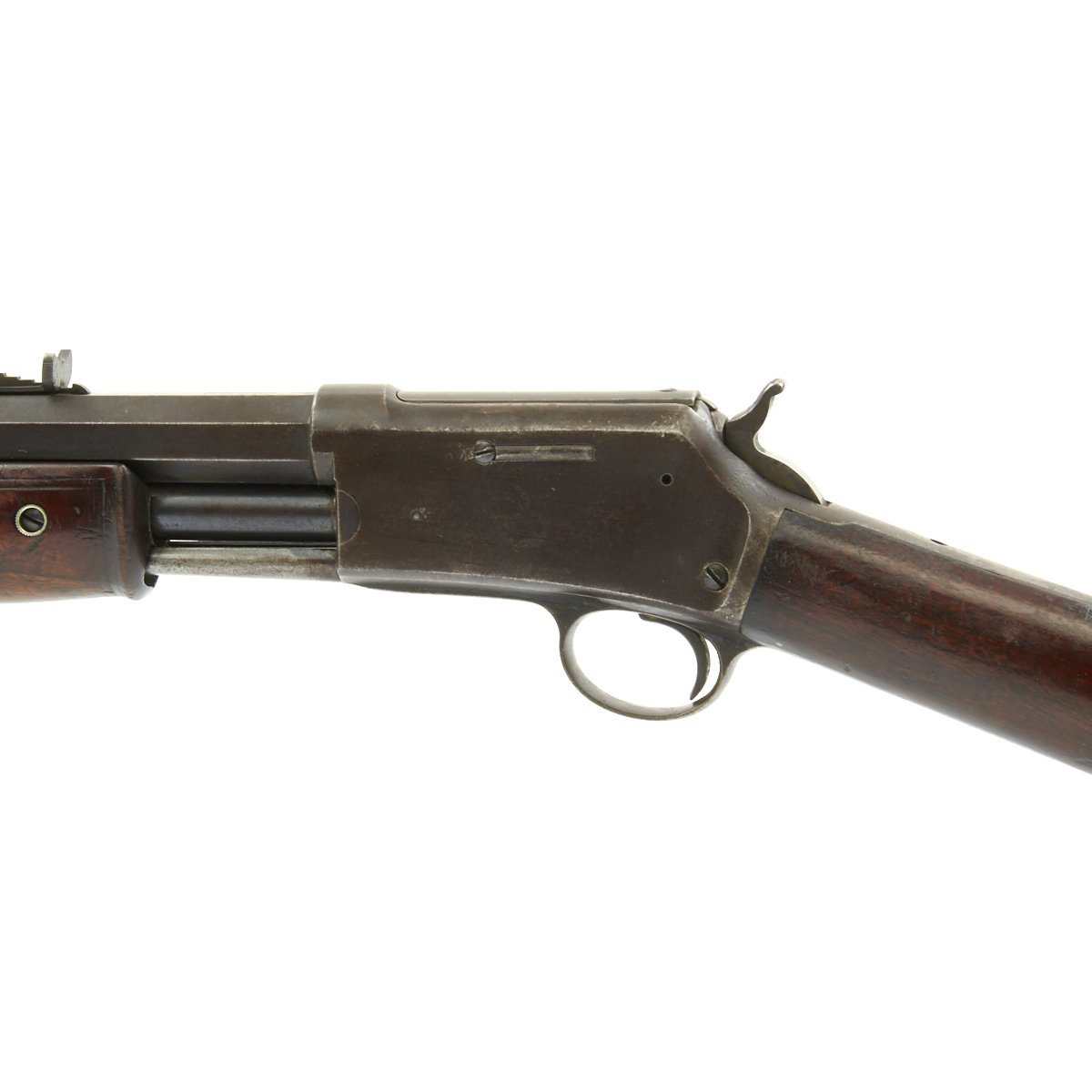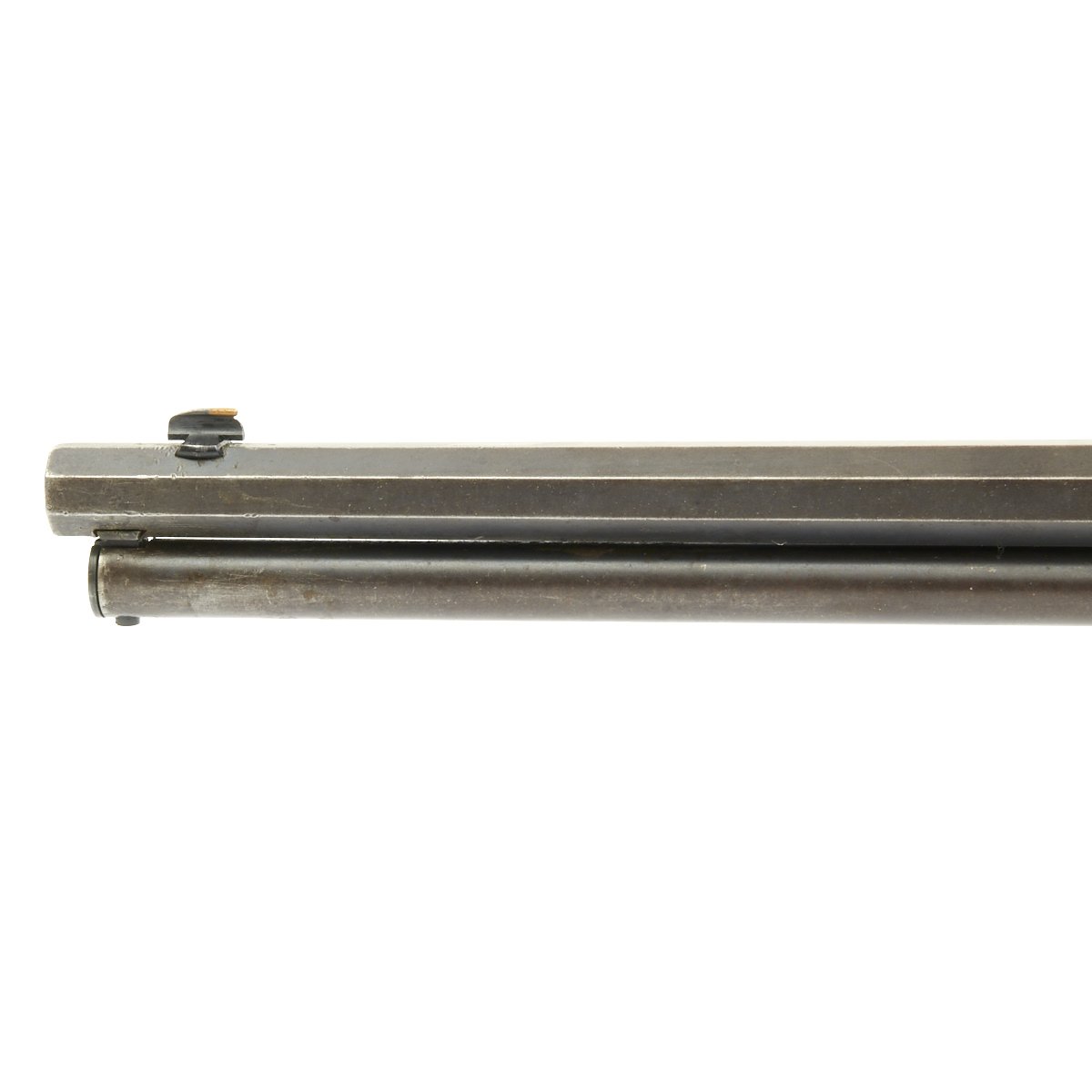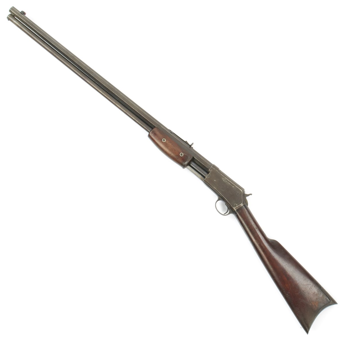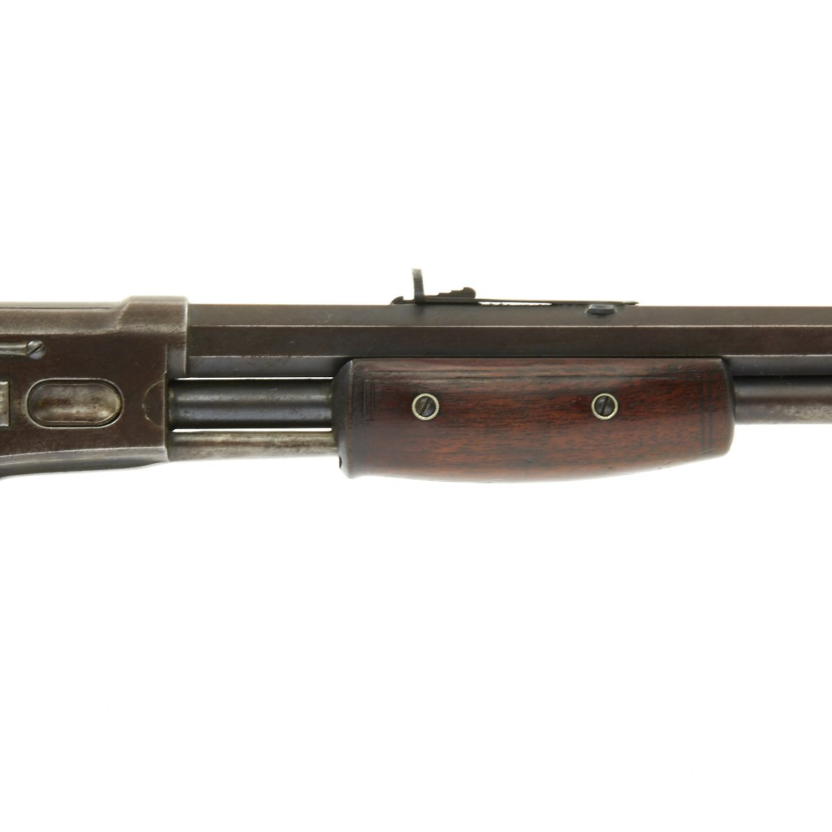 Original Item: Only One Available.This is a most attractive Colt Lightning Magazine Slide-Action Rifle, with a lovely Antique glow around it. The serial number 82813 stamped on the trigger guard indicates manufacture in 1898. The 26" Octagonal barrel is marked .38 Cal. above the chamber, indicating that this rifle is in .38-40 Winchester, a popular caliber of the time. It features a nice "Semi-Buckhorn" rear sight, with a replacement front sight by MARBLE.
