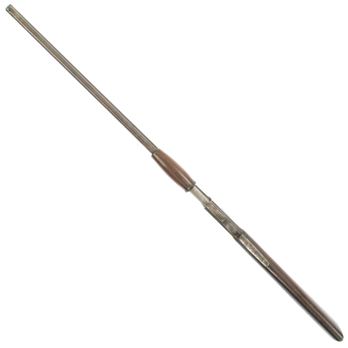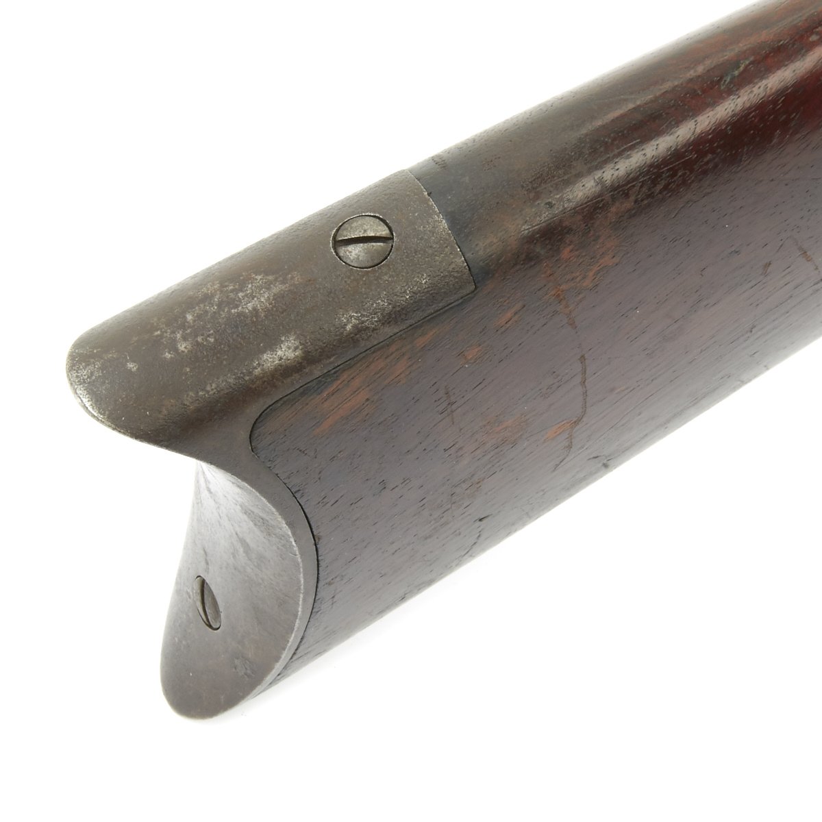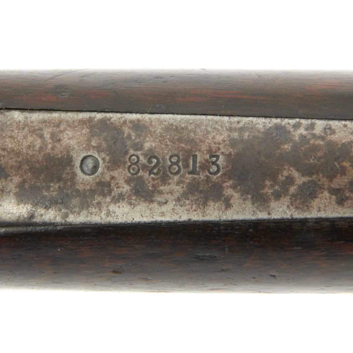 Stocks are in very good condition, with a great patina and the reddish-brown color of aged oiled walnut. Offered with a crisp tight action in fully functional condition. Metal work is good, with a lot of the finish intact, and just a bit of peppering in the lovely gray patina. Barrel markings are fully legible. Bore is mostly bright with clear lands and grooves, with just a bit of wear and oxidation.