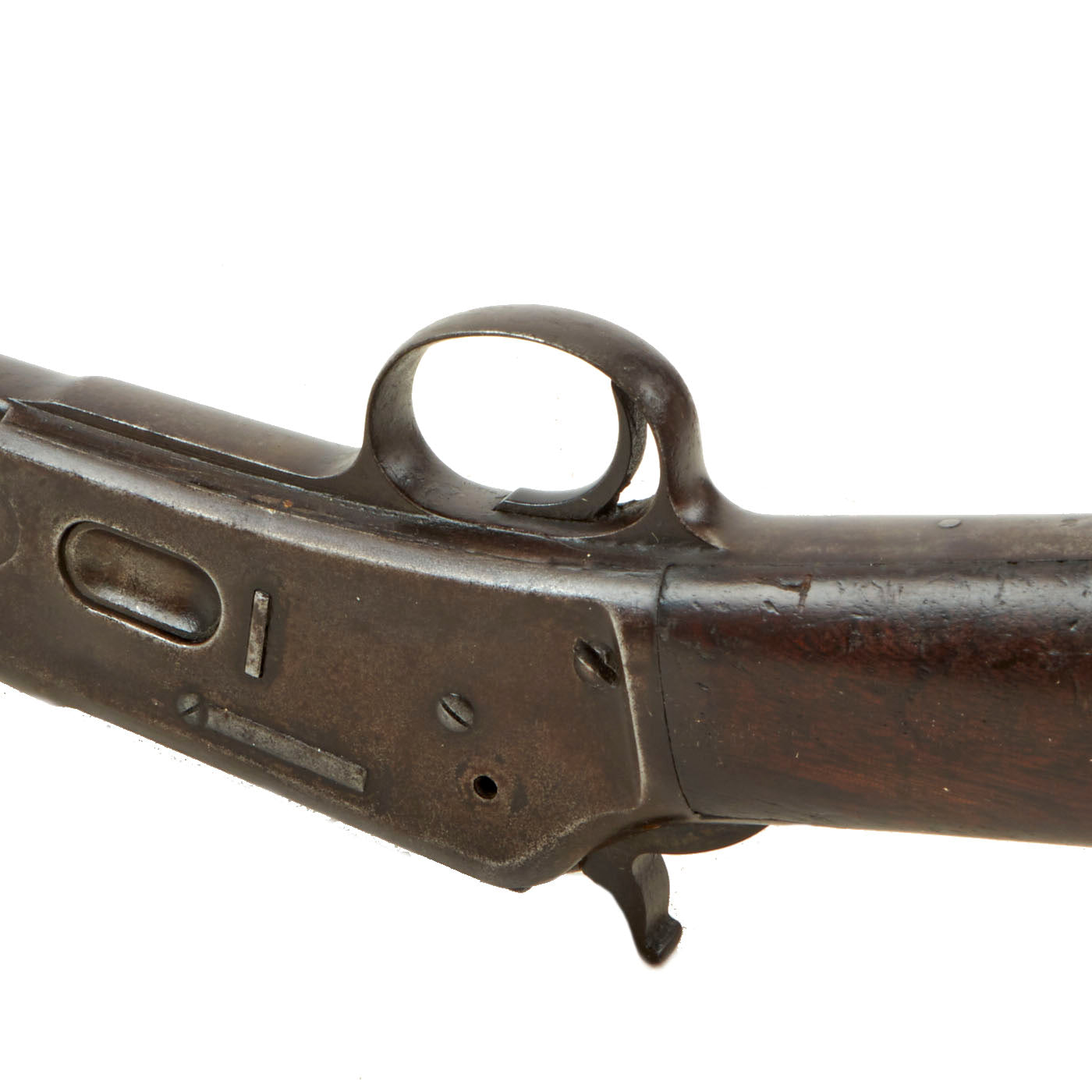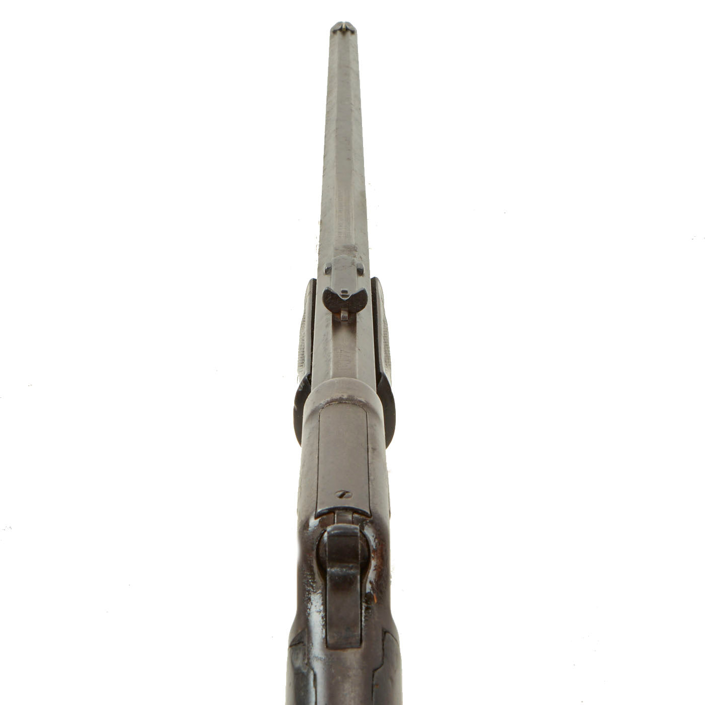 These antique guns are not sold in "live" condition, and are not tested for the the ability to feed or load any type of cartridge. They are sold as collector's items or as "wall hangers" not for use, and we make no guarantees regarding functionality aside from what is stated in the description. Any attempt at restoring an antique gun to be operational is strongly discouraged and is done so at the risk of the customer. By purchasing an antique gun from IMA you thereby release IMA, its employees and corporate officers from any and all liability associated with use of our Antique guns.