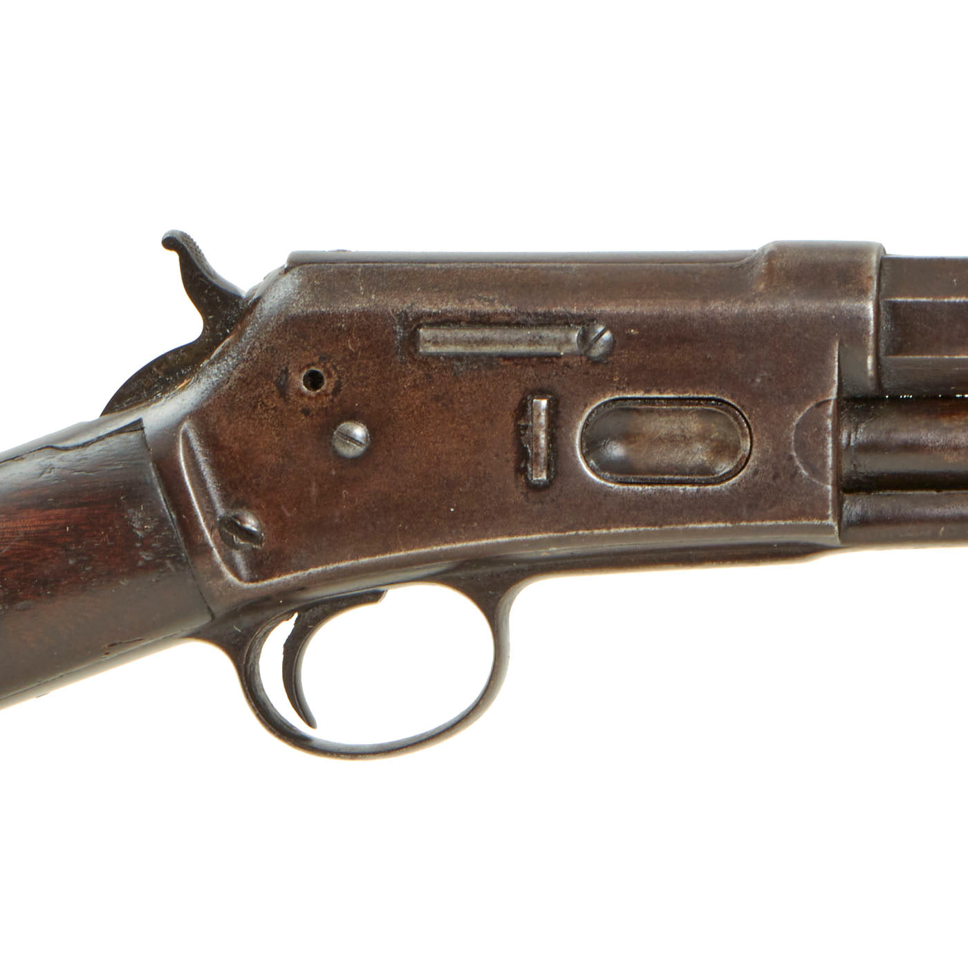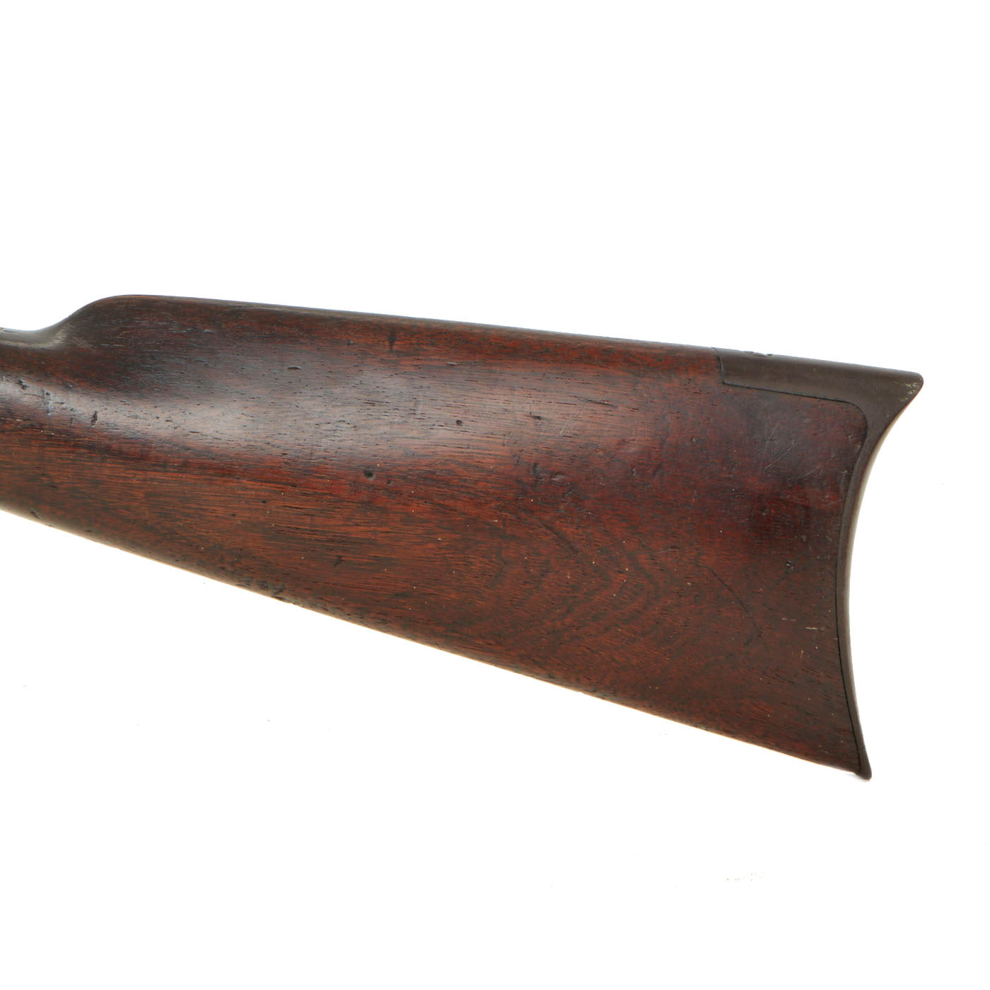 Original Item: Only One Available. This is a most attractive Colt Lightning Magazine Slide-Action Rifle, with a lovely Antique glow around it. The serial number 27396 stamped on the trigger guard indicates manufacture in 1888. The 26" Octagonal barrel is marked .44 Cal. above the chamber, indicating that this rifle is in .44-40 Winchester, a popular caliber of the time. It features a nice "Buckhorn" rear sight, with the classic front sight.