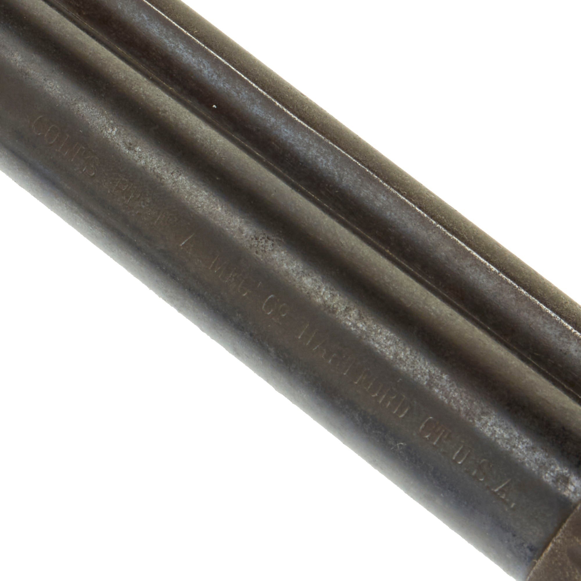 This example has a "gunfighter length" 5 ½ inch barrel, which shows no signs of alteration. The Colt single line address marking (correct for a 5 ½" barrel) on the top of the barrel is still fully legible:
