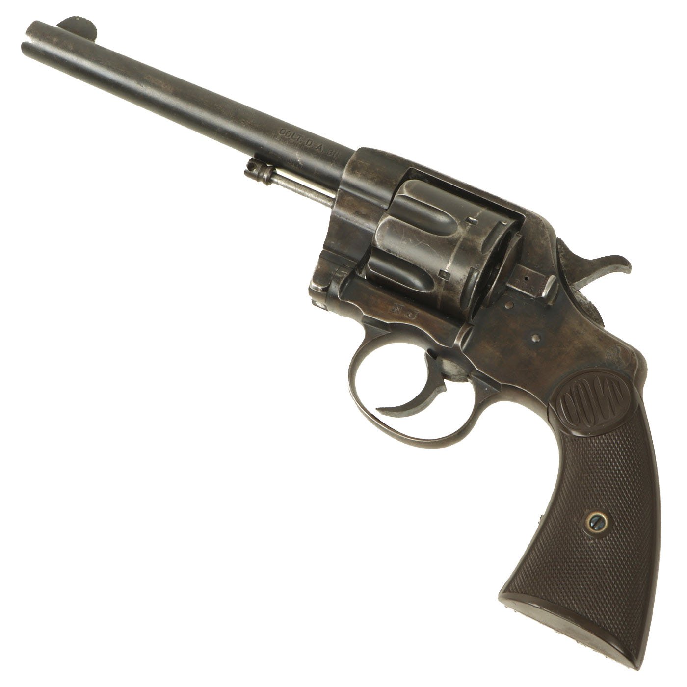 Original Item: Only One Available. The Colt Model 1895 "New Navy" revolver is an important piece of history in the evolution of the modern handgun. This revolver is sometimes called the D.A. 38 for a good reason: they are marked COLT. D.A. 38 on the side of the barrel, as they are a double action revolver chambered for the .38 Long Colt cartridge. There are many similar models of this handgun made by Colt: the Model 1892, 1894, 1895, 1896 and later the Model 1901 and 1903, which represent incremental improvements in the design. The U.S. Navy and the U.S. Army primarily used these models, though there were civilian models as well.