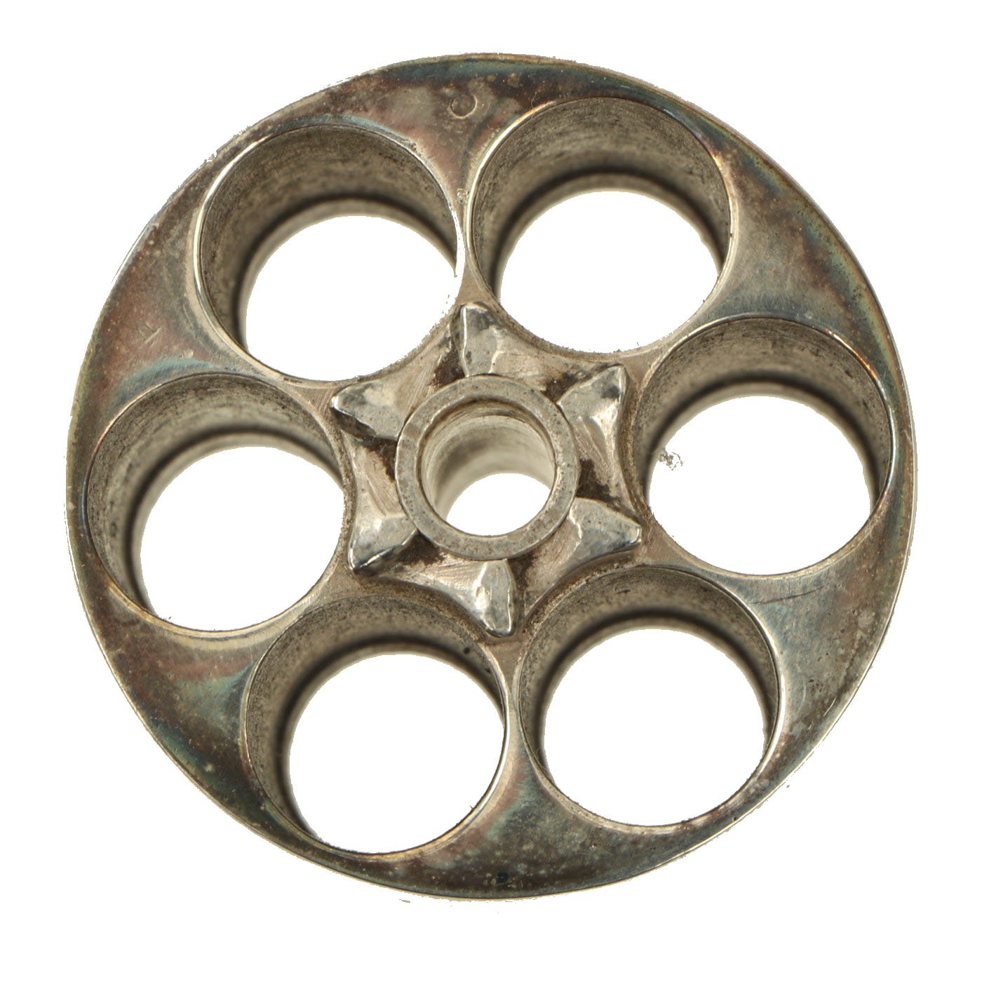Mechanically, the action is smooth, with a good cylinder lock up, and crisp dry fire. The action has all four clicks, and cycles correctly. However, as with most the hammer will not hold in the "safety" position if the trigger is pulled hard. This is one of the big reasons why these revolvers were never loaded with 6 cartridges, only 5. The bore is nice, with clear lands and grooves and a dull finish. The ejector door swings open easily, and the ejector itself works great. Overall this is a great pistol!