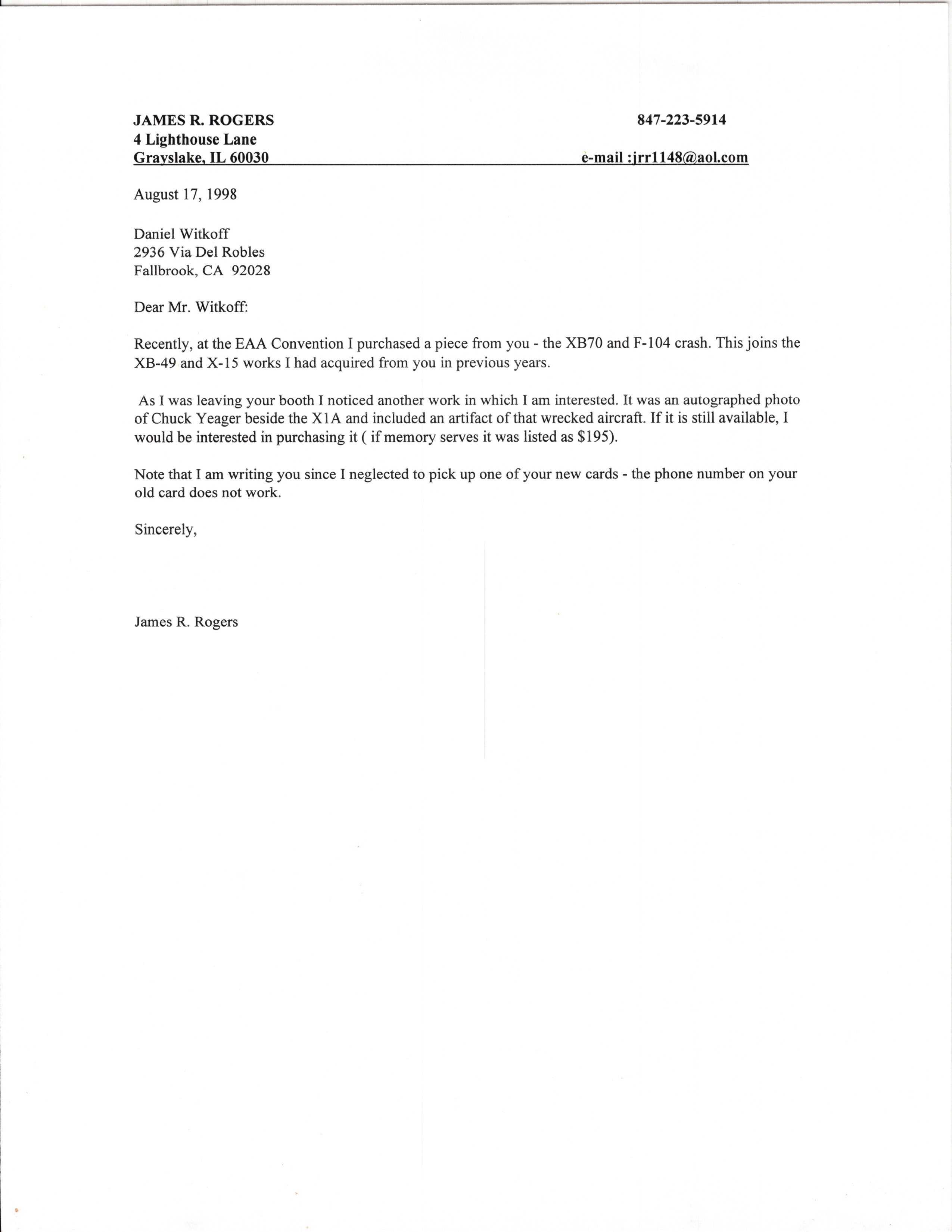 THE AUTOGRAPH OF TEST PILOT CHUCK YEAGER